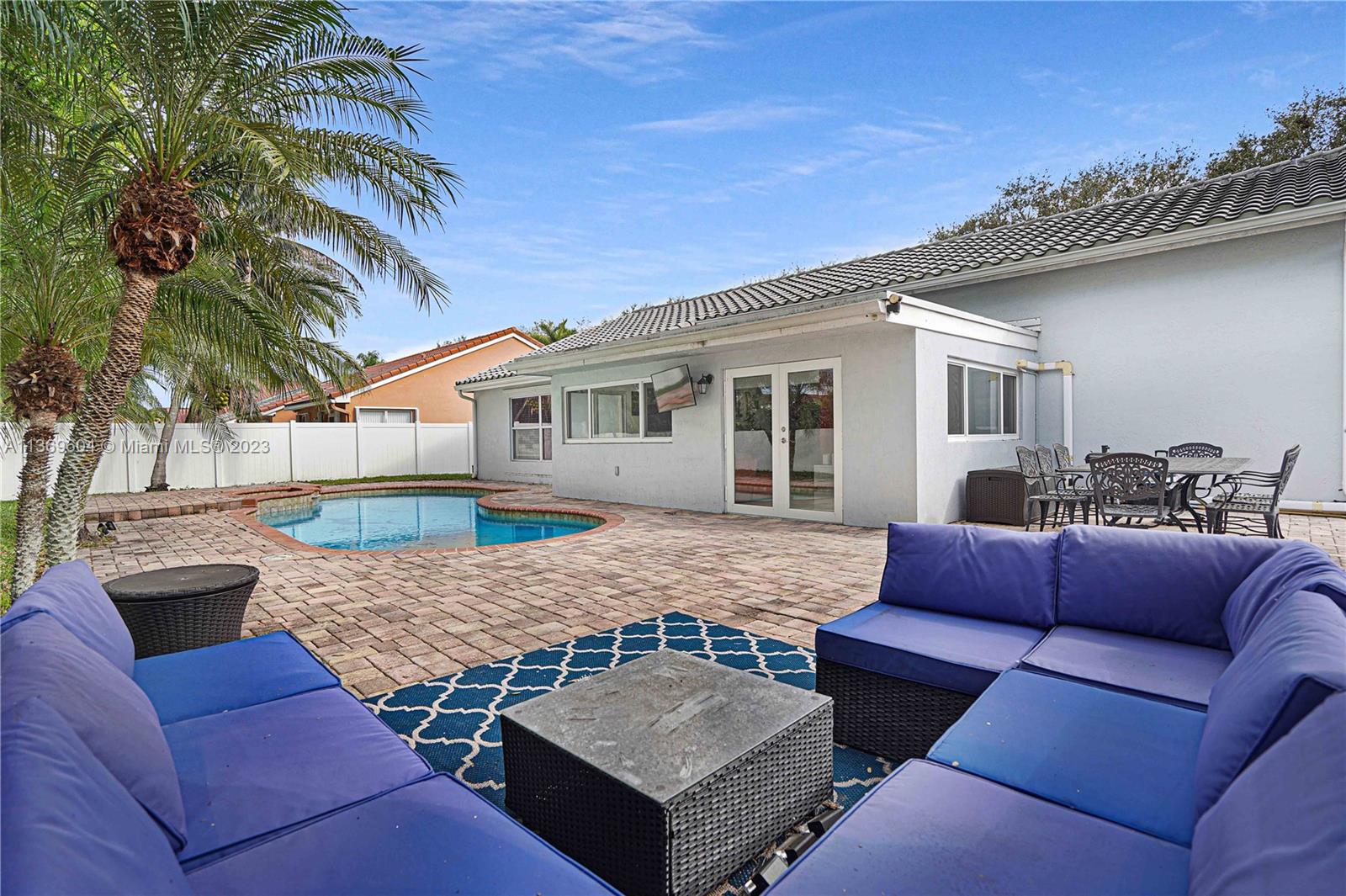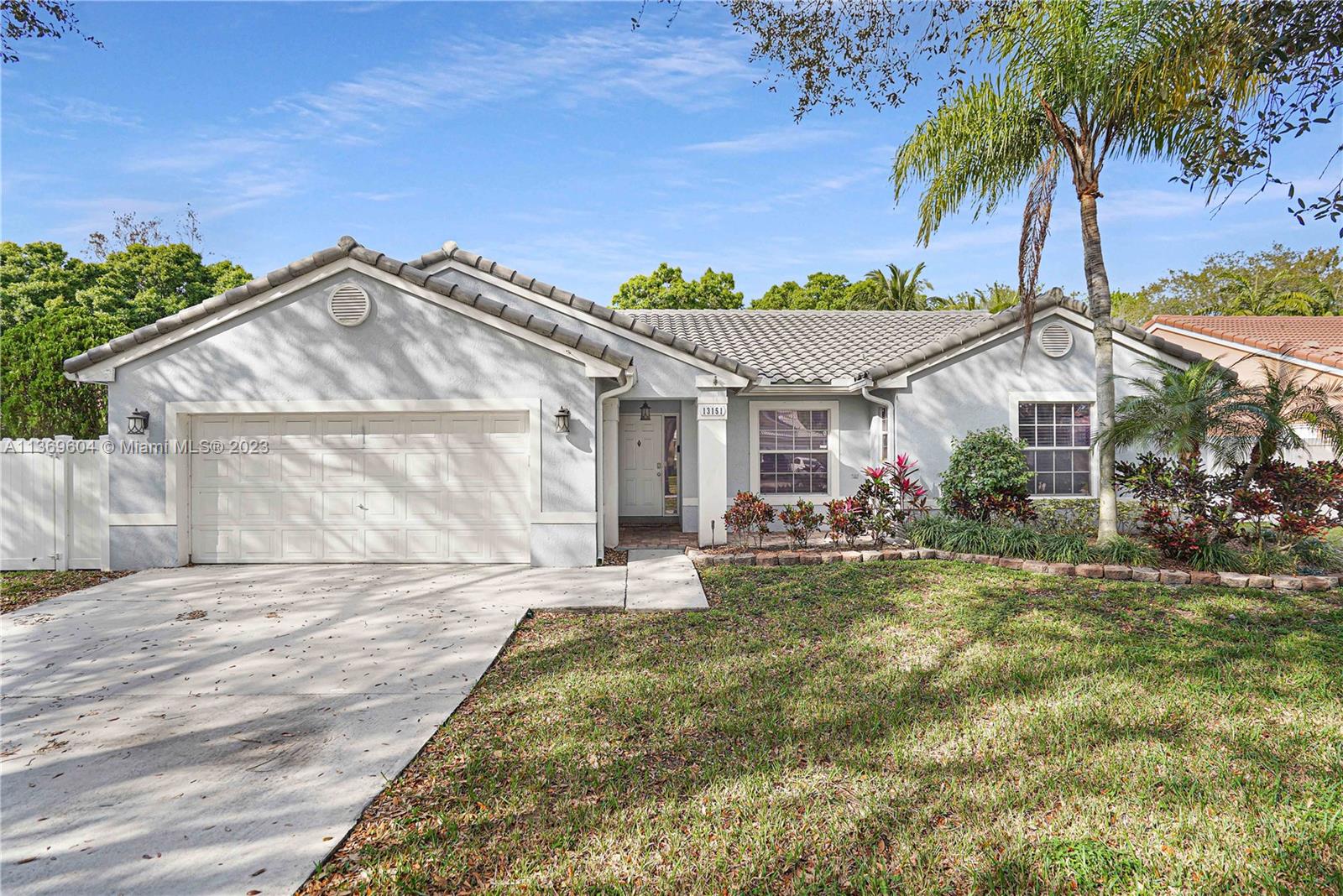 What you have been looking for, you'll love the tranquility of this area with whimsical tree lined walk-able streets. This pool home features three bedrooms and two bathrooms with a spacious split floor plan for owners privacy. Two car garage, office/den, walk-in closet & a large bath with double sink featuring tiled and laminate floor throughout. High vaulted ceilings in the main living area. Kitchen has an open feel with wooden cabinetry, granite counter tops and stainless steel appliances while facing the family room for easy entertaining. Great sized lot featuring a fenced back yard with privacy, pool, waterfall and jacuzzi. Six yr old roof. Experience the beauty of this amazing property. HOA $66 monthly. Home is minutes from Memorial Hospital Miramar and The Shops at Pembroke Gardens.