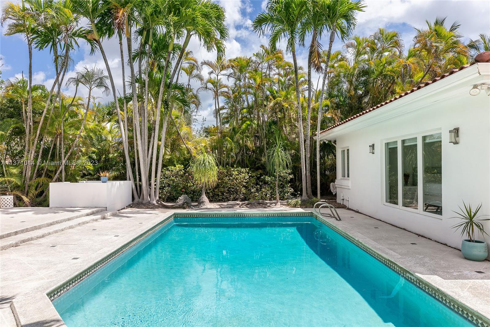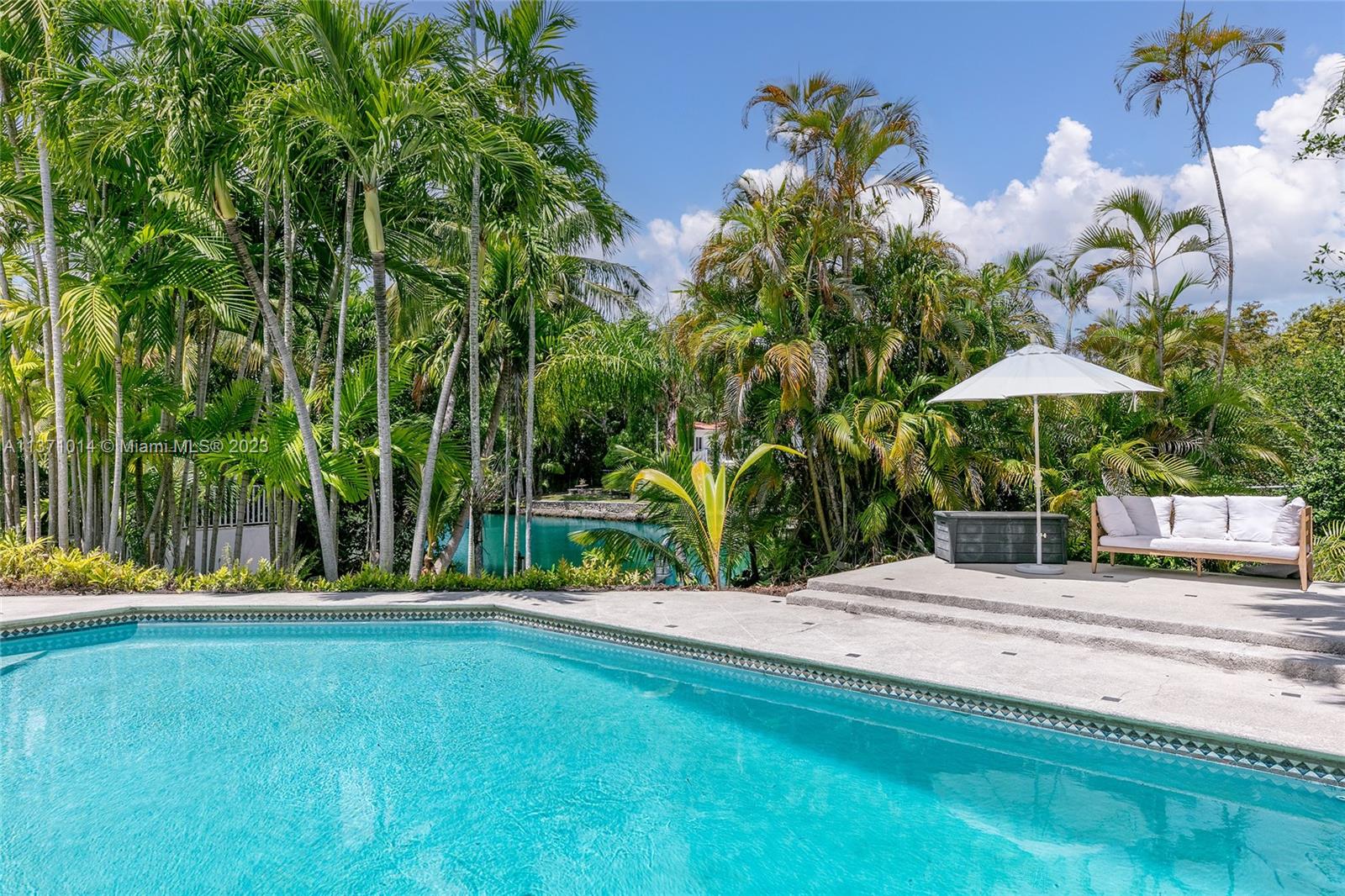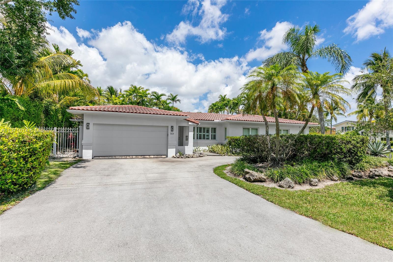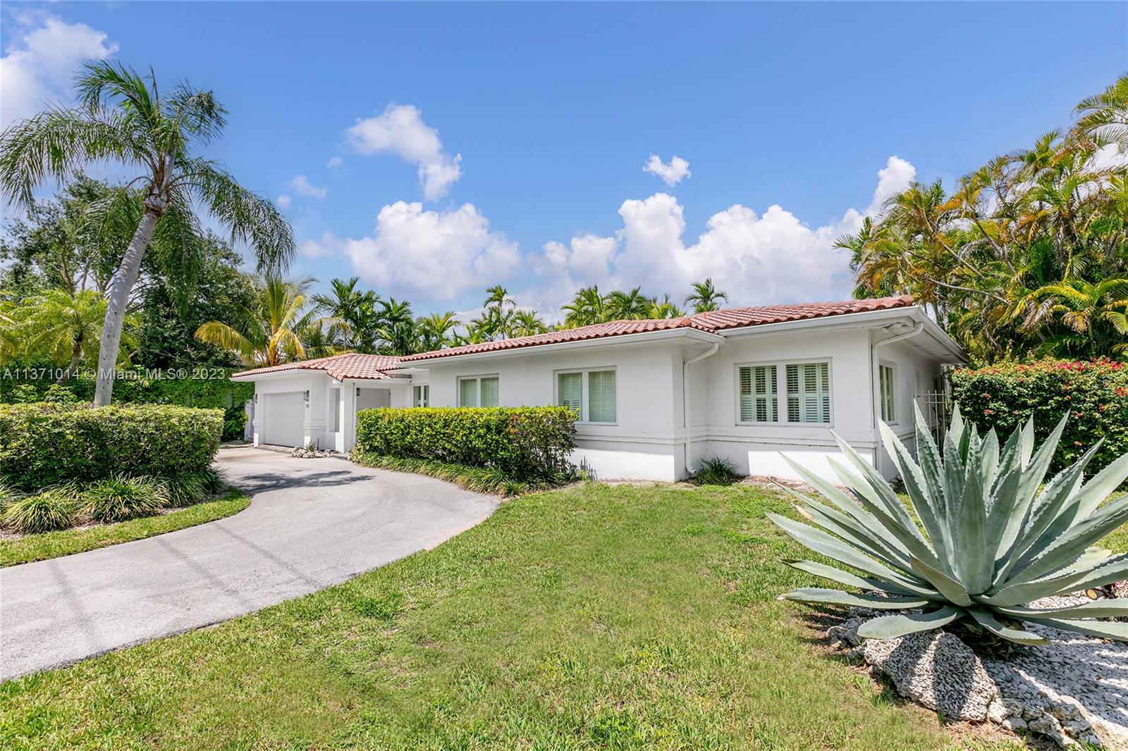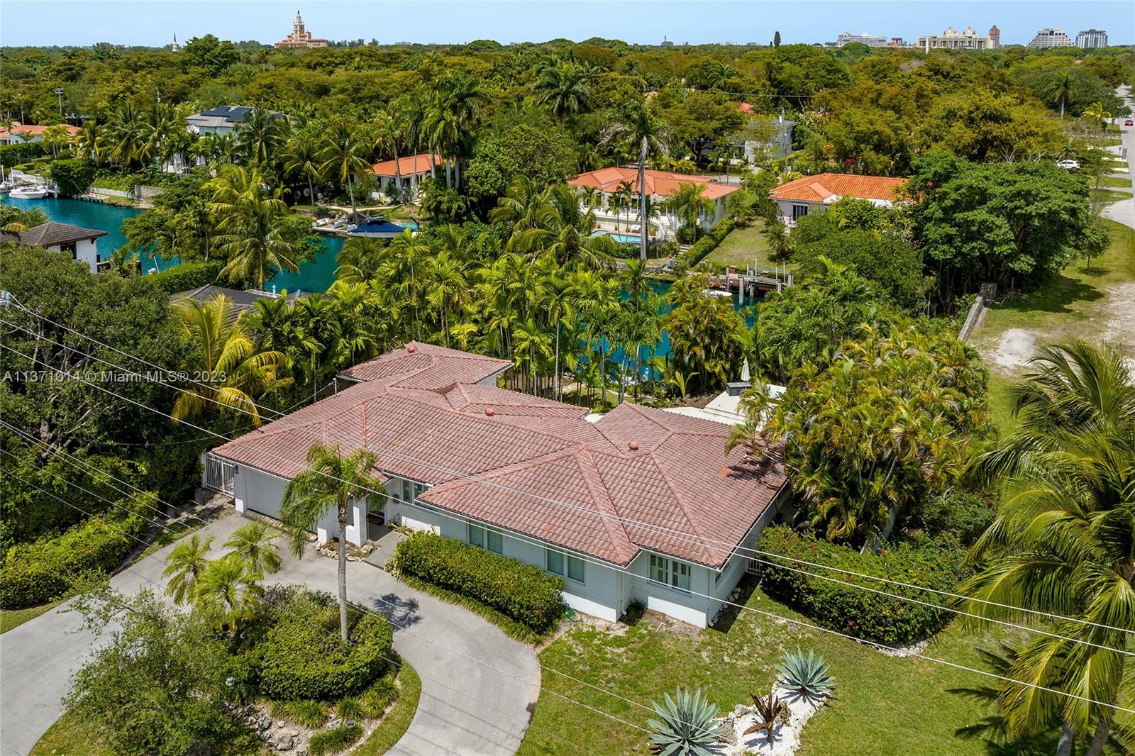 This elevated ranch style home sits on the intracoastal waterway on a 12,000 SF lot in a quiet family neighborhood in Coral Gables. The 4BR/3BA home features Statuary marble floors, high ceilings, spacious living room & private dining area w/large windows that provide direct views to the large pool deck & waterway. An open kitchen sports Kitchen Aid appliances, Quartzite counter tops plus a breakfast area. Elegant principal suite offers direct waterway views, & beautiful principal bath w/glass shower & soaking tub. The other 3 BRs are each well proportioned. Outdoor highlights incl. large pool w/cabana bath, large palms, a boat lift & private wood dock. Hurricane impact resistant windows/doors, laundry room & 2 car gar, plus amazing central location complete this offering.