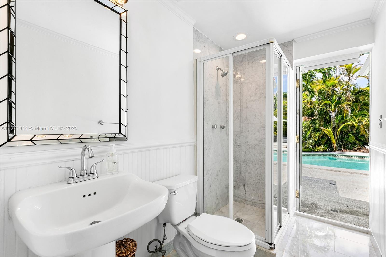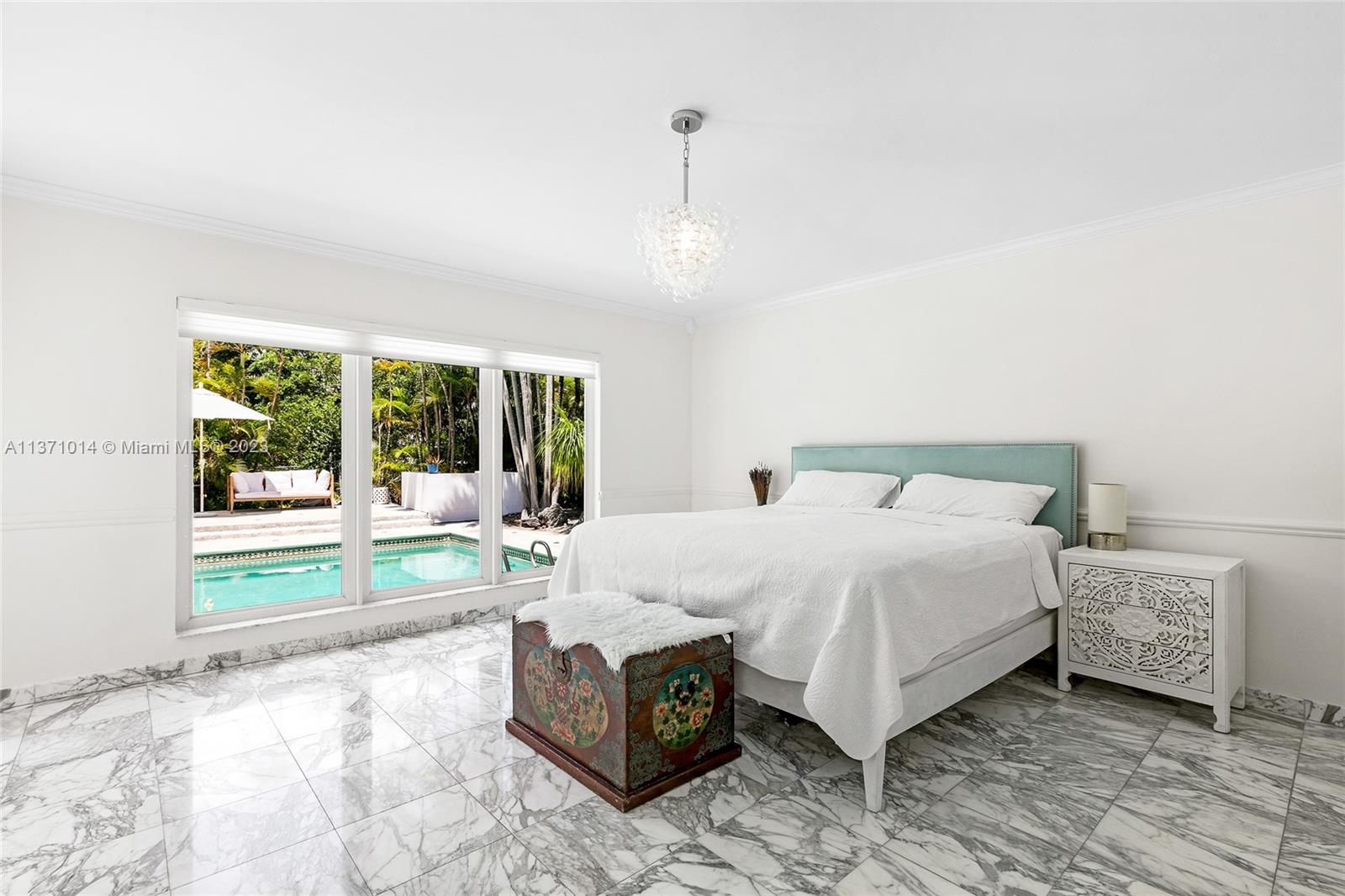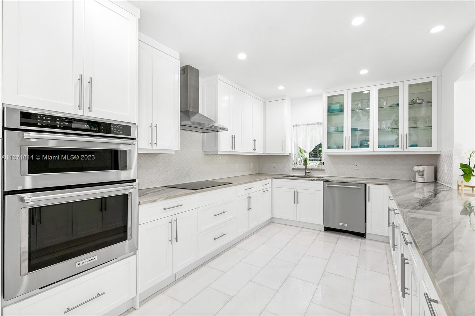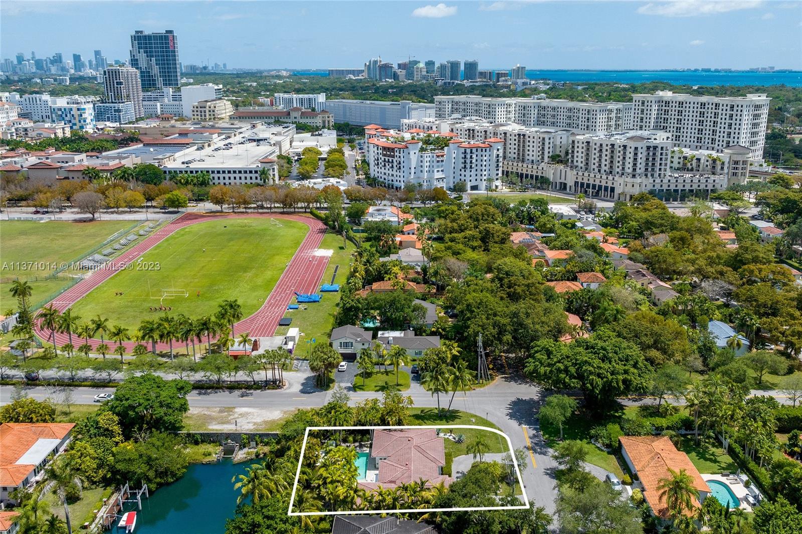 This elevated ranch style home sits on the intracoastal waterway on a 12,000 SF lot in a quiet family neighborhood in Coral Gables. The 4BR/3BA home features Statuary marble floors, high ceilings, spacious living room & private dining area w/large windows that provide direct views to the large pool deck & waterway. An open kitchen sports Kitchen Aid appliances, Quartzite counter tops plus a breakfast area. Elegant principal suite offers direct waterway views, & beautiful principal bath w/glass shower & soaking tub. The other 3 BRs are each well proportioned. Outdoor highlights incl. large pool w/cabana bath, large palms, a boat lift & private wood dock. Hurricane impact resistant windows/doors, laundry room & 2 car gar, plus amazing central location complete this offering.