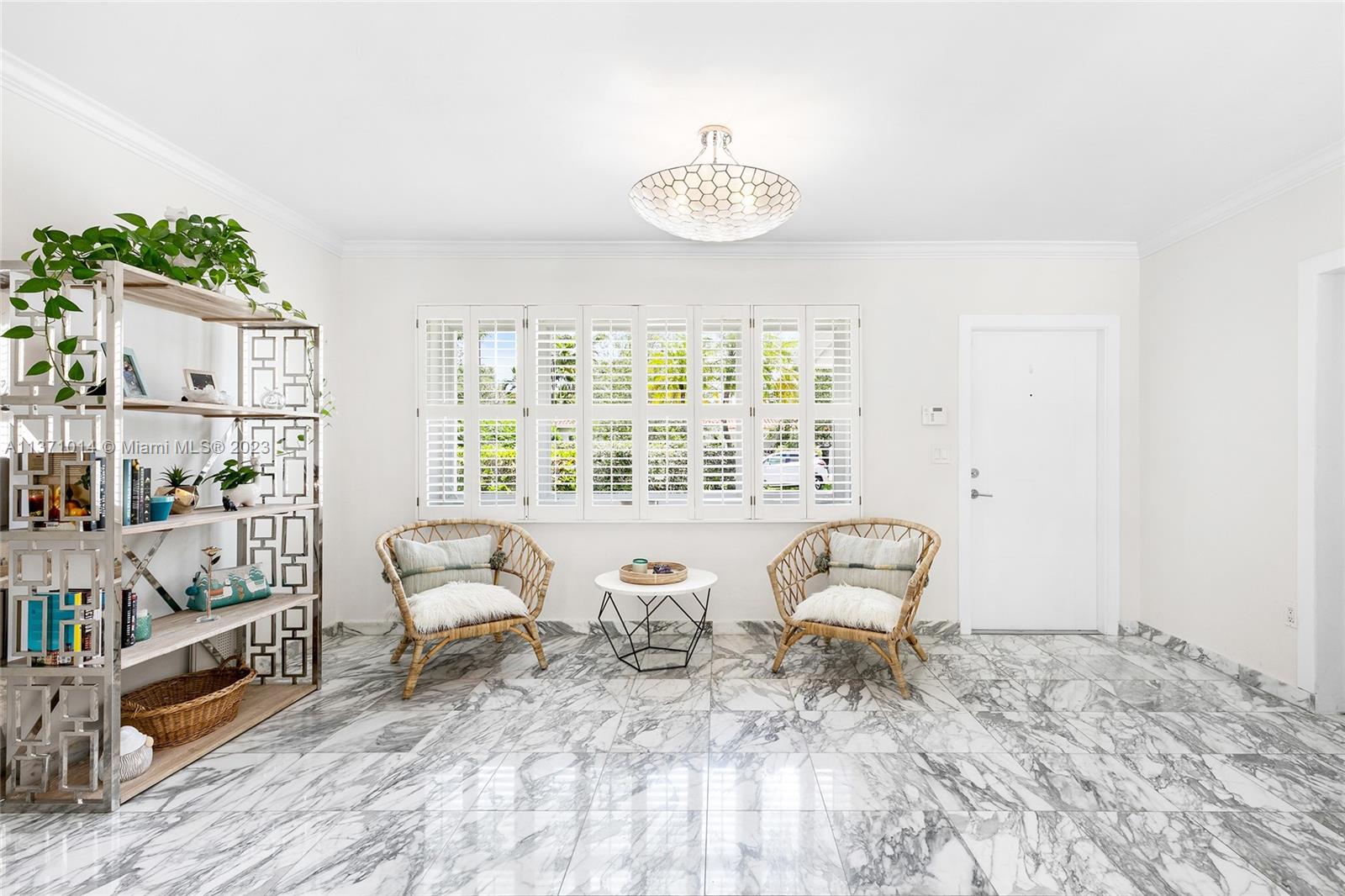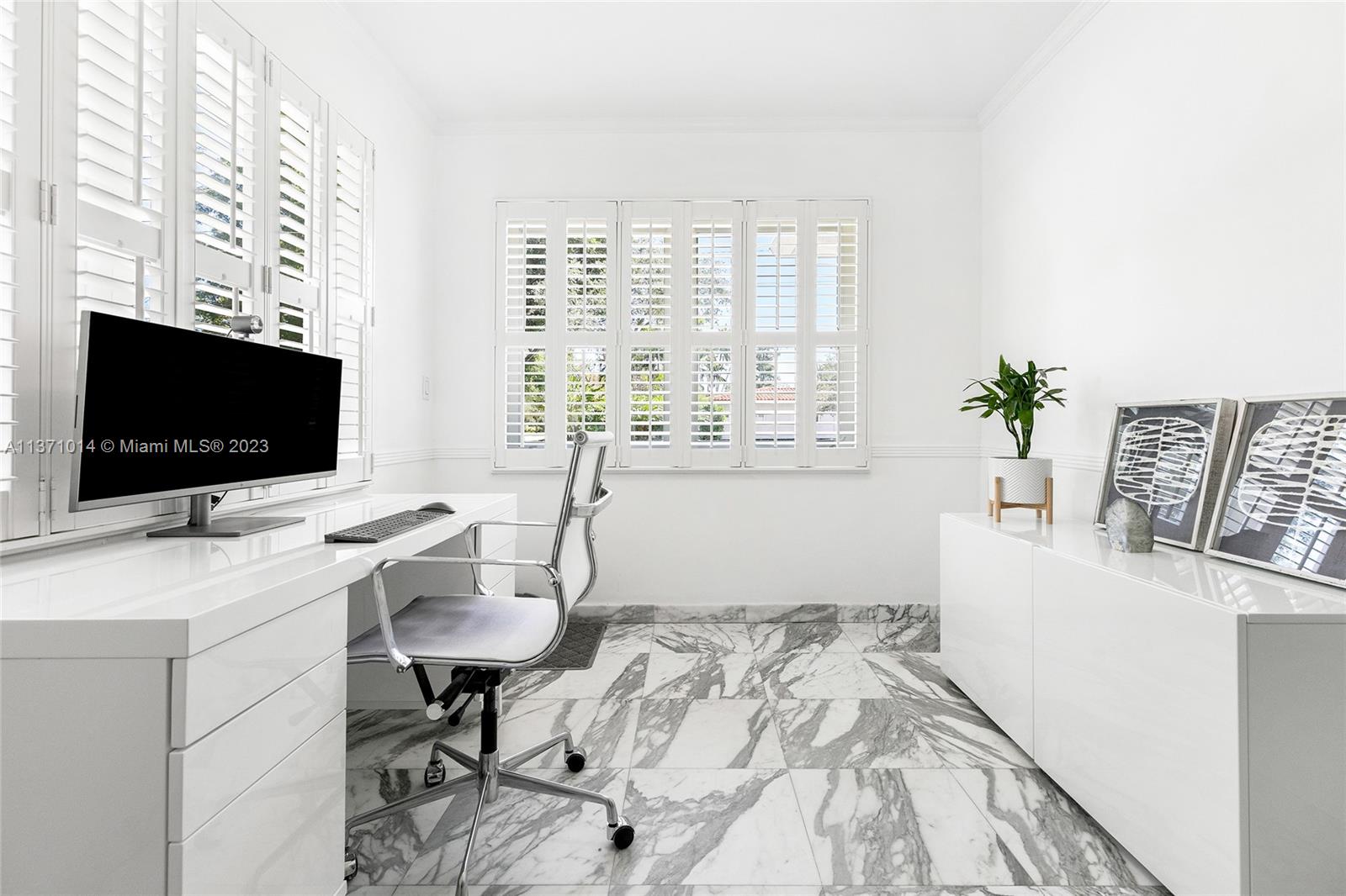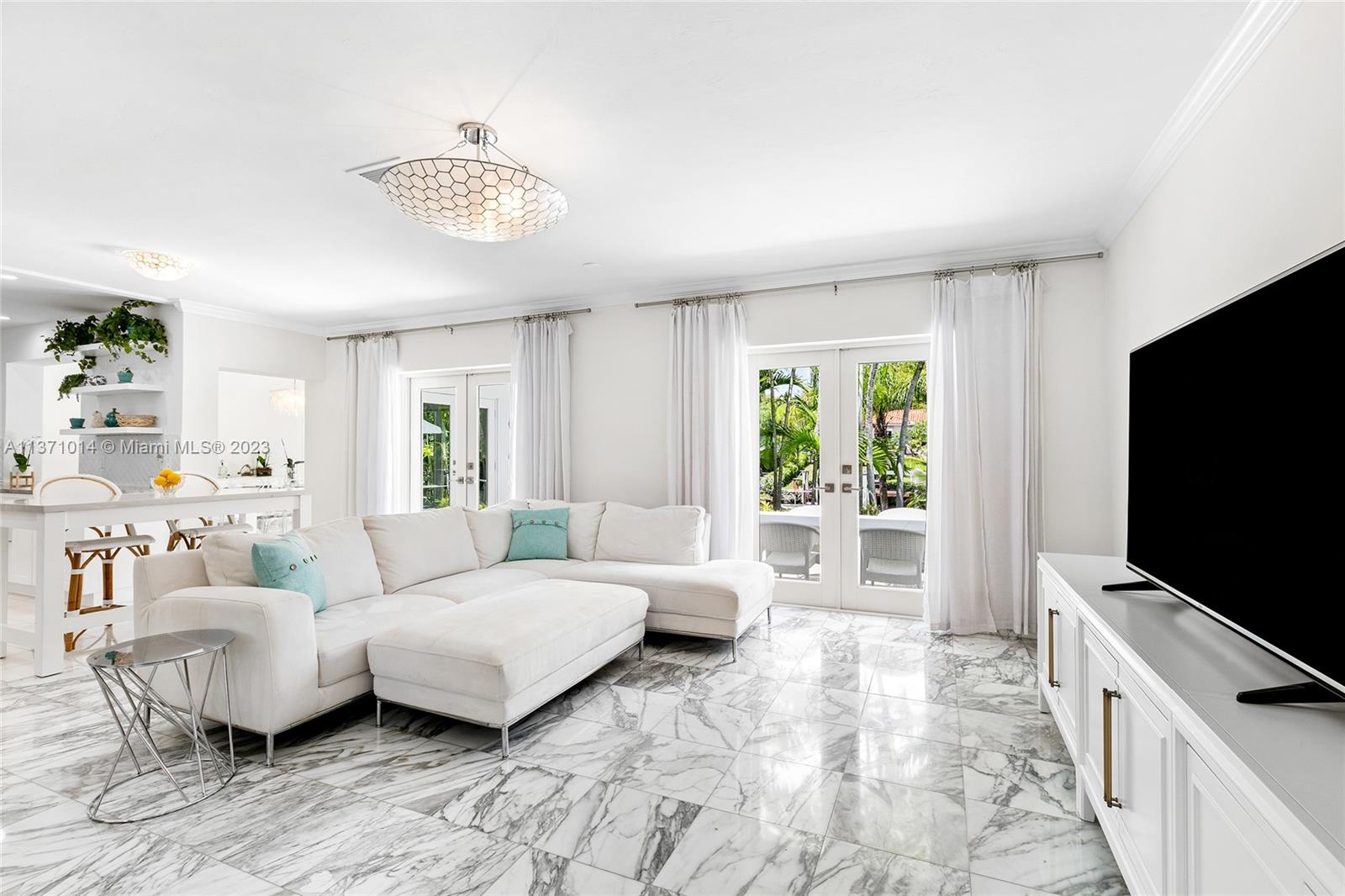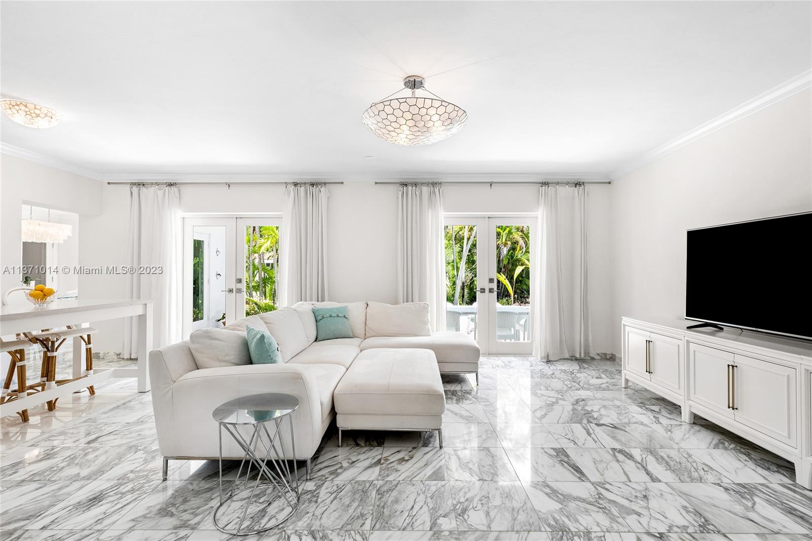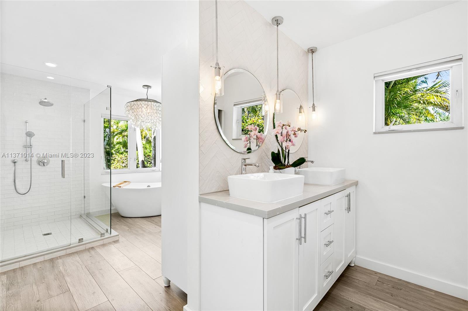 This elevated ranch style home sits on the intracoastal waterway on a 12,000 SF lot in a quiet family neighborhood in Coral Gables. The 4BR/3BA home features Statuary marble floors, high ceilings, spacious living room & private dining area w/large windows that provide direct views to the large pool deck & waterway. An open kitchen sports Kitchen Aid appliances, Quartzite counter tops plus a breakfast area. Elegant principal suite offers direct waterway views, & beautiful principal bath w/glass shower & soaking tub. The other 3 BRs are each well proportioned. Outdoor highlights incl. large pool w/cabana bath, large palms, a boat lift & private wood dock. Hurricane impact resistant windows/doors, laundry room & 2 car gar, plus amazing central location complete this offering.