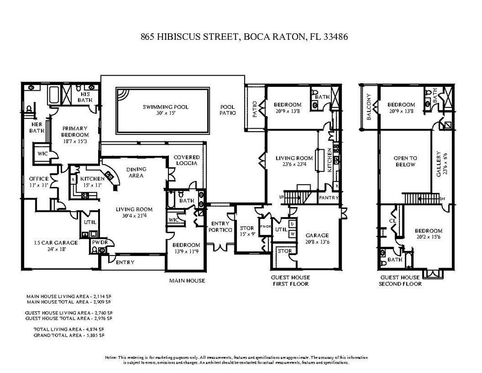 Reimagined Old Floresta Estate Compound with charming main house and separate 2-story guest house. A hedged circular brick motor court leads to a renovated Spanish Colonial-inspired residence perfect for an extended family or guests with five bedrooms suites. Resort-like pool with loggia and verdant oasis of landscaping. Other amenities include a recently painted exterior and interior, newer roof, partial impact windows and doors, two utility rooms and 2.5 bay garages.