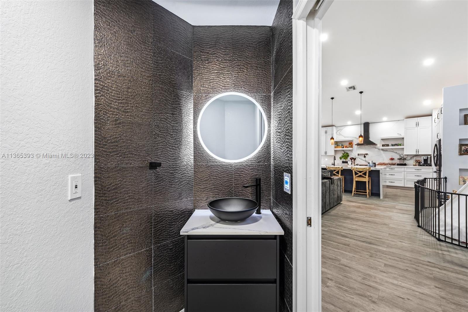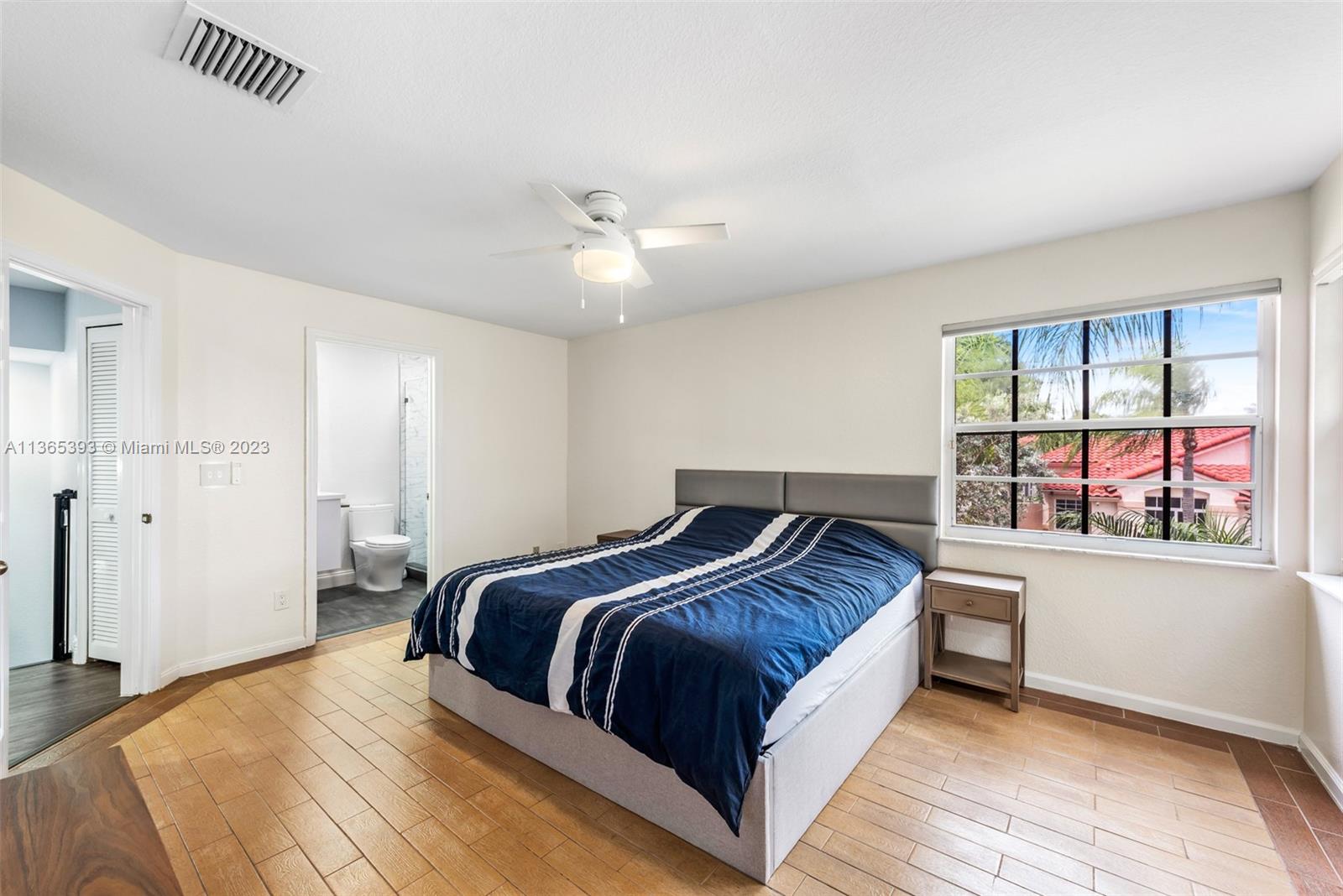 Stunning 2-story fully renovated smart home boasts 4 beds, 3.5 baths, a spacious floor plan with an open and airy living space, a modern kitchen that is both spacious and stylish with sleek cabinetry, stainless steel appliances and a large island, soaring ceilings, fully automated smart home system, washer/dryer and more. A chic interior design with teal-blue accents throughout add a touch of warmth and elegance. An outdoor covered patio overlooking the golf course with a pool provides a refreshing escape and ideal space for hosting gatherings. The master bathroom is a true oasis with a luxurious tub and shower combo, and double sinks. Located in a desirable gated community of Grand Palms in Pembroke Pines FL, this home is conveniently situated near shops, restaurants, and entertainment.
