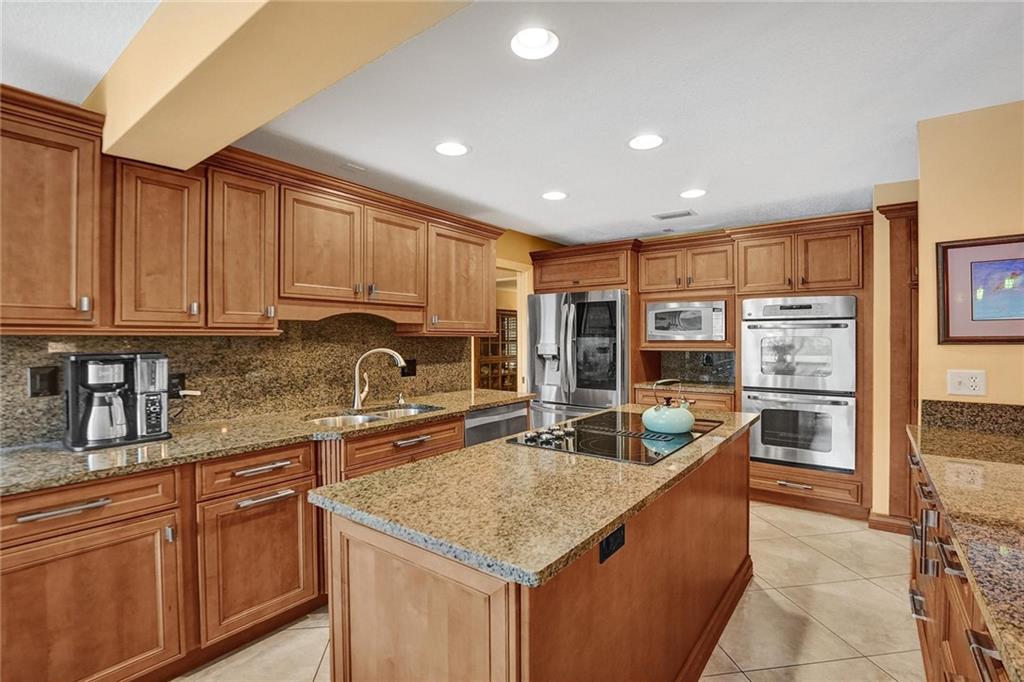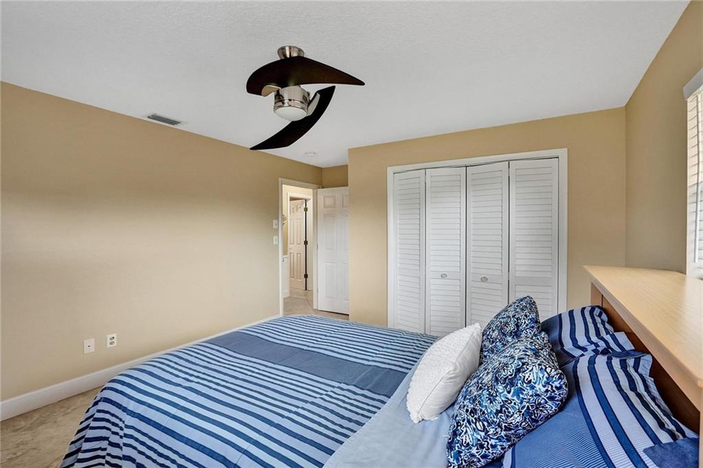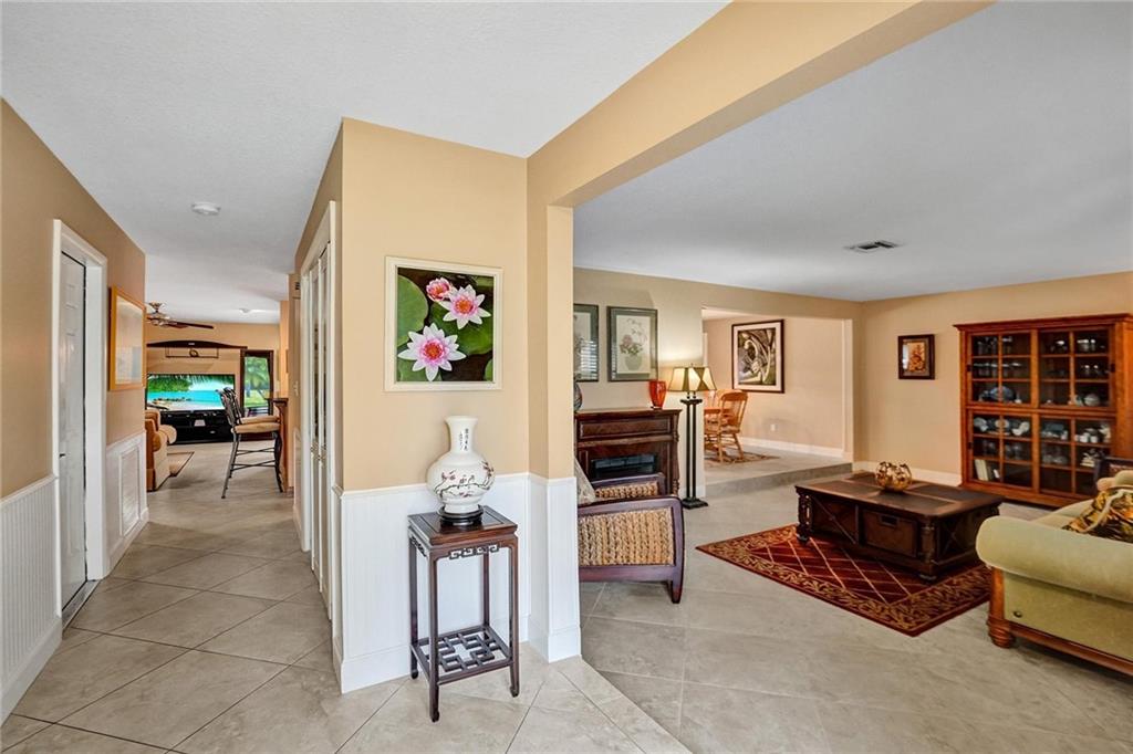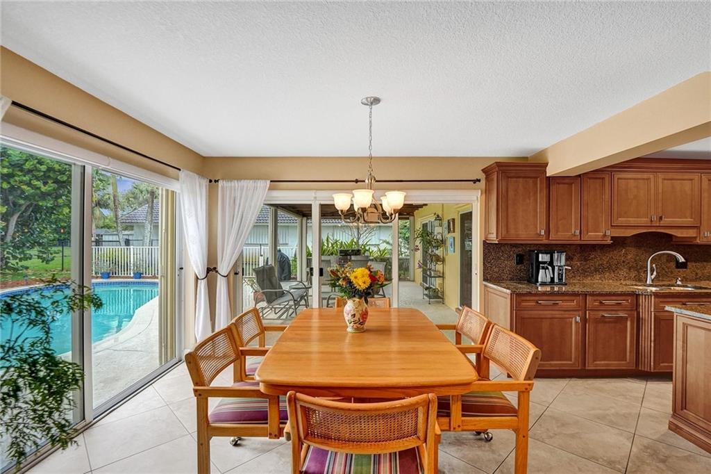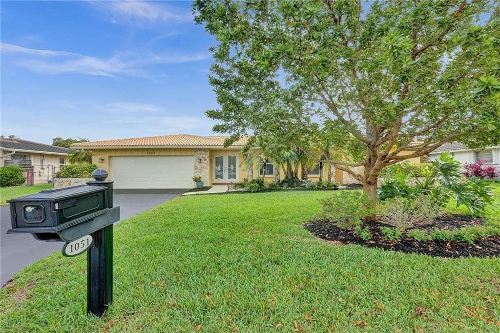 Oversized .28 acre waterfront lot in highly desirable Ramblewood neighborhood - NO HOA! 5 true bedrooms - tons of closets! Glass inlay double doors welcome you w/ tons of natural light. Split bedroom plan for added privacy. Beautifully updated kitchen w/ granite counters, island, and stainless steel appliances opens up to the large family room & eat-in kitchen area. Master bedroom has views of the pool & features XL walk-in closet w/ 2 sinks & built in extra storage. Updated master bathroom has an oversized shower w/ frameless glass door & waterfall shower head. 3 bedrooms towards the back have a pocket door for added privacy. 2nd bathroom is also updated & leads out to the pool. Extra deep lot is great for pets or kids. Flat roof - 2018, Barrel Tile Roof 2000, AC 2021, Water heater 2011.