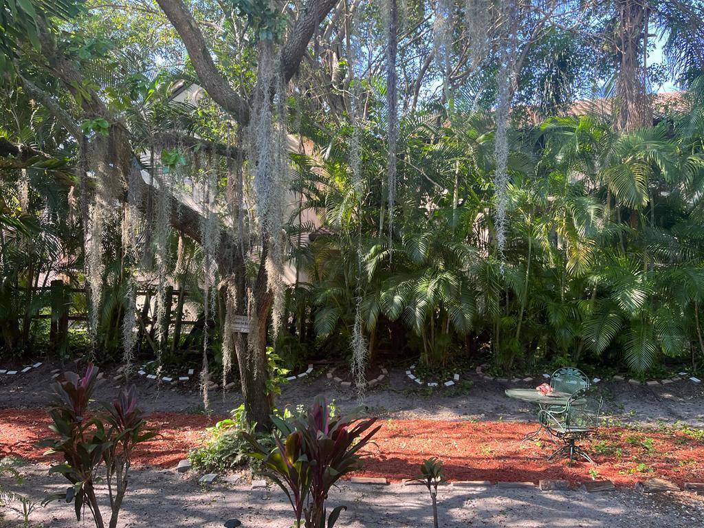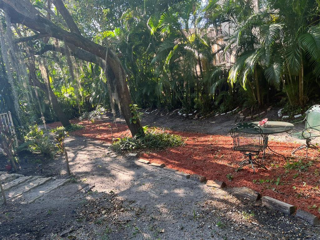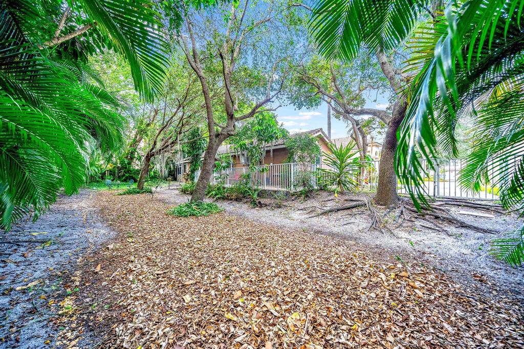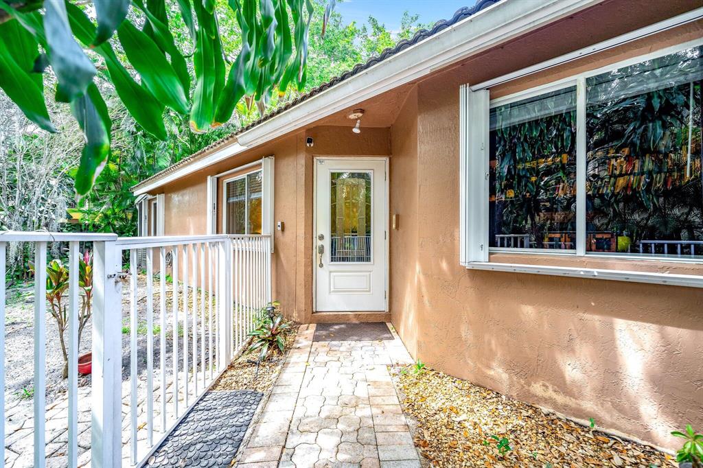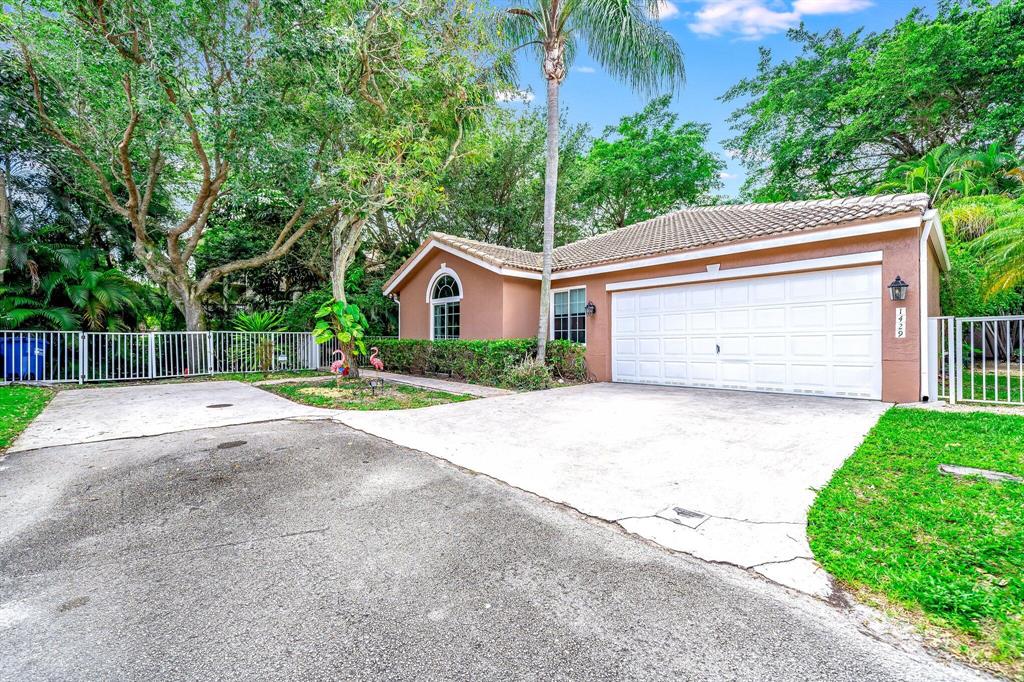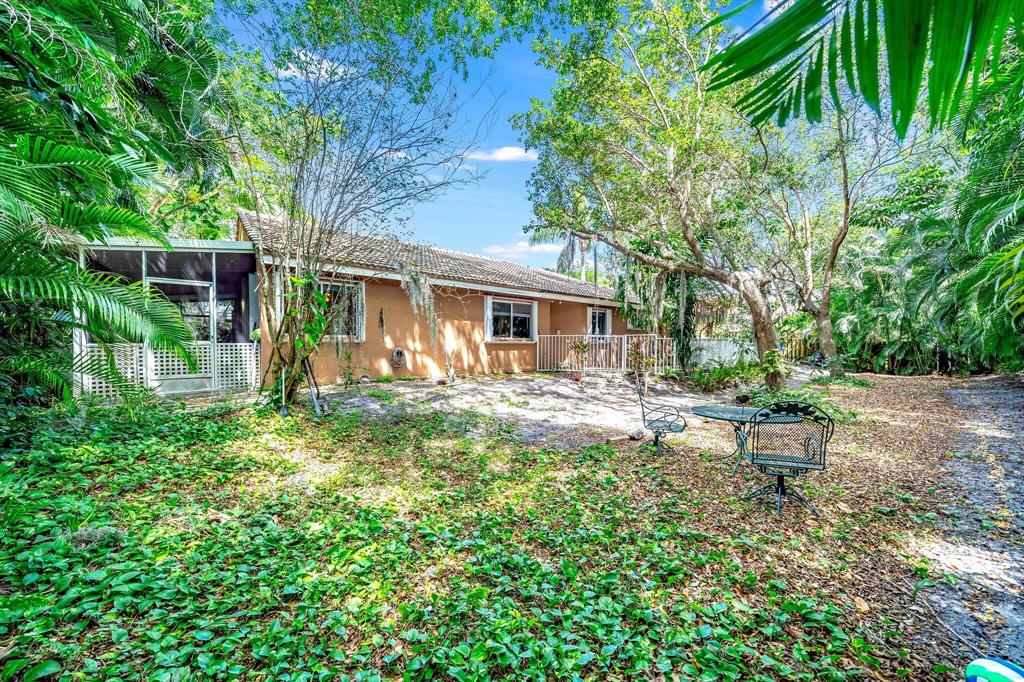 This cozy, peaceful, private feel corner home offers 4 bdrms (4th bdrm is being used as a studio...just paint & put closet doors back) 2 bath, 2 car garage w/ extra driveway space & large fenced yard is awaiting you. Impact front windows & have accordion. Stainless steel appliances, granite counters, wood floors (living areas) laminate (bdrms) & open floorplan are ready for you to make it your own. Cov'd screened patio is width of home, great for entertaining & relaxing. The yard has so much potential and shaded by many trees. Garage has portable a/c, owner does crafts in it. One way in/out this secluded, quaint neighborhood has 28 homes & a community pool. Close by is a park with pickleball, basketball, volleyball, tennis & more. Location is minutes to beach, airport, turnpike, I95 & more