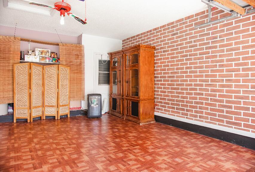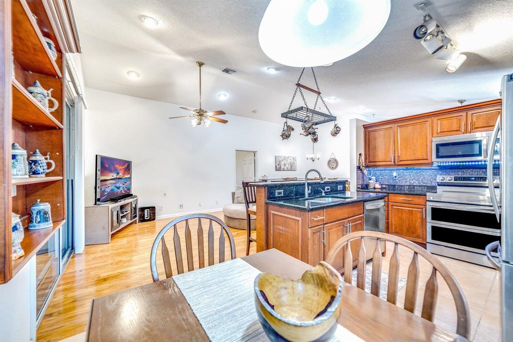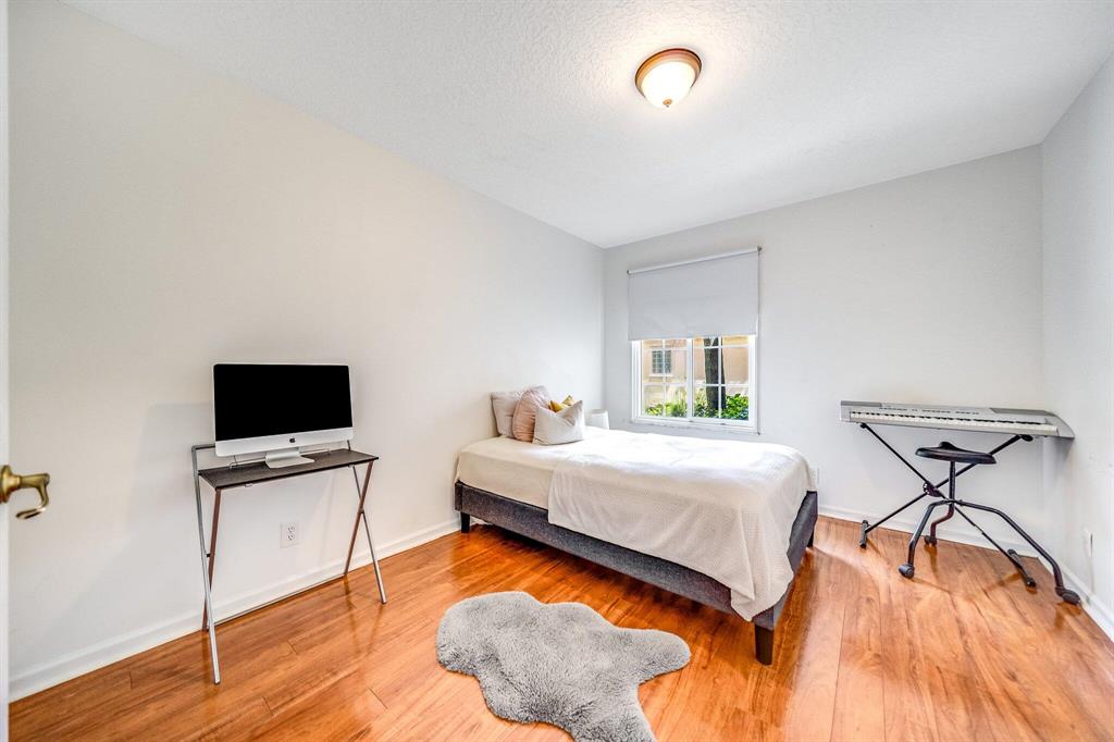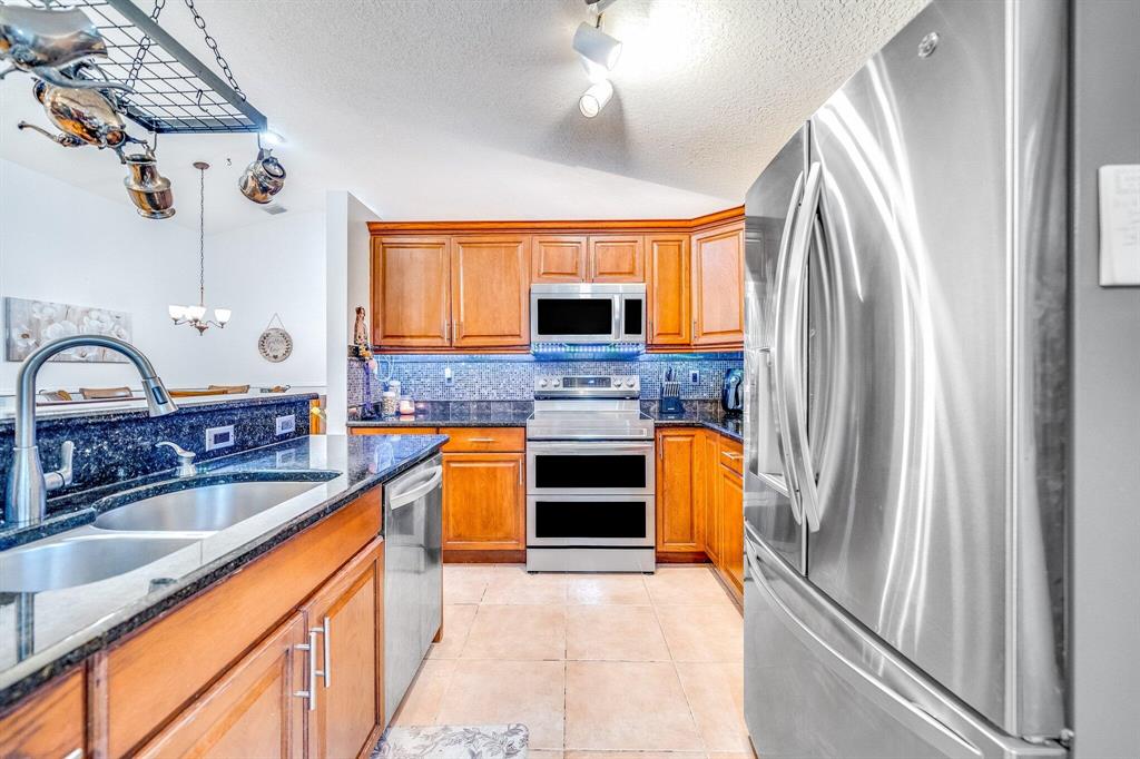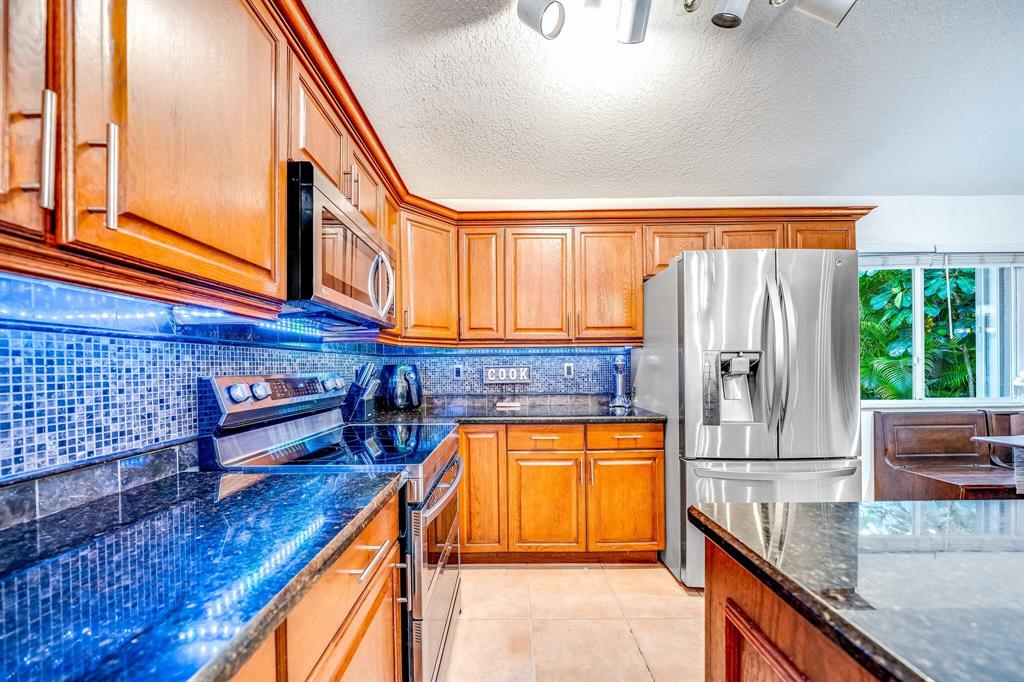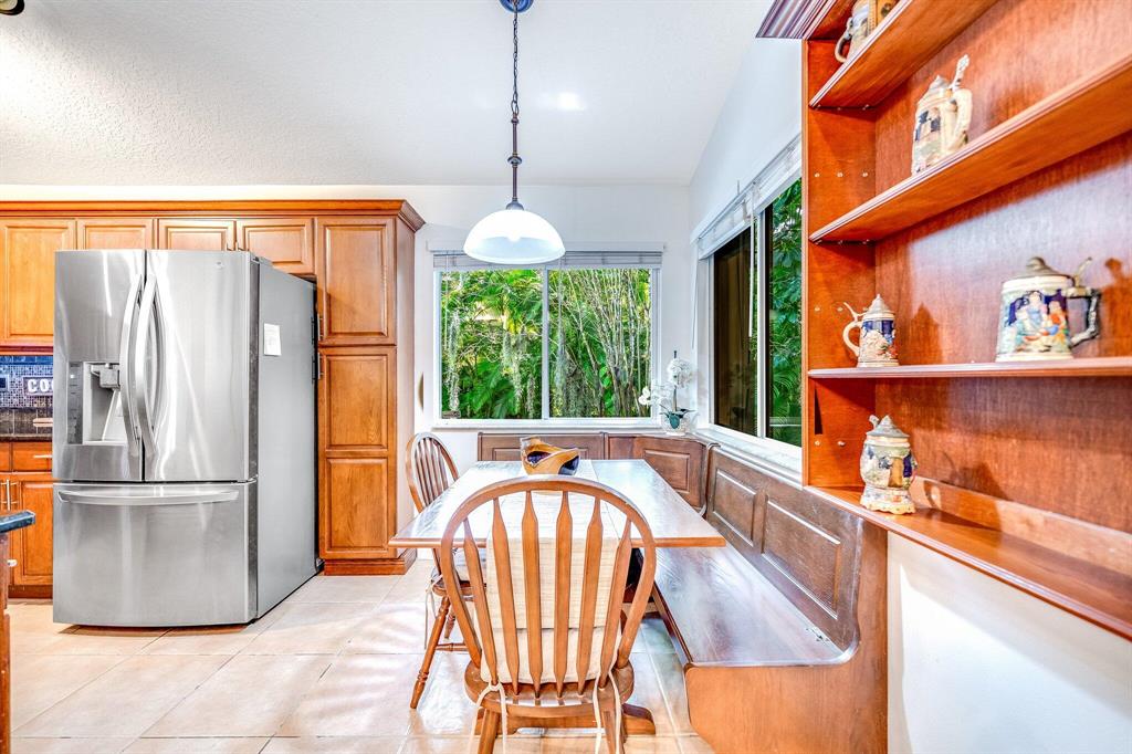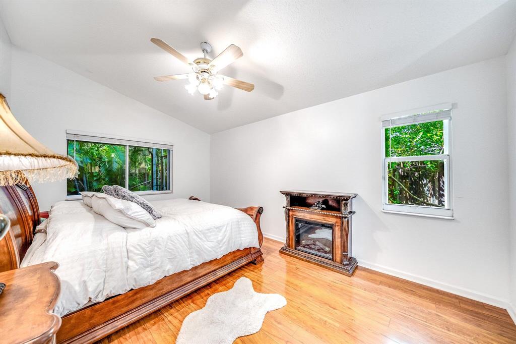 This cozy, peaceful, private feel corner home offers 4 bdrms (4th bdrm is being used as a studio...just paint & put closet doors back) 2 bath, 2 car garage w/ extra driveway space & large fenced yard is awaiting you. Impact front windows & have accordion. Stainless steel appliances, granite counters, wood floors (living areas) laminate (bdrms) & open floorplan are ready for you to make it your own. Cov'd screened patio is width of home, great for entertaining & relaxing. The yard has so much potential and shaded by many trees. Garage has portable a/c, owner does crafts in it. One way in/out this secluded, quaint neighborhood has 28 homes & a community pool. Close by is a park with pickleball, basketball, volleyball, tennis & more. Location is minutes to beach, airport, turnpike, I95 & more