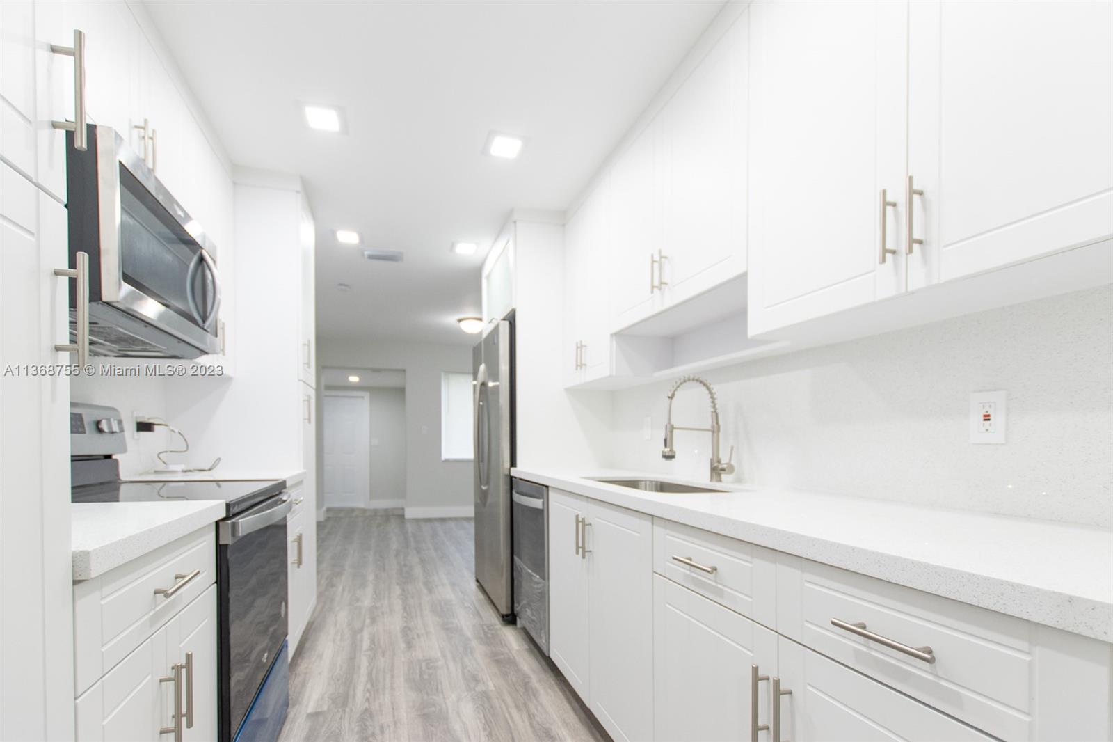 Beautifully upgraded 3 bedroom 2 bath, den/office (or small 4th bedroom since it has a closet), large family room, and great yard. Upgrades include new three dimensions shingle roof, updated modern kitchen with quartz countertops, stainless steel appliances appliances,. updated bathrooms, new modern laminated wood flooring and baseboards, new interior doors, re-plastered modern finish on exterior/interior walls, repainted interior/exterior, recessed lighting, tankless water heater, high impact windows, hurricane approved doors, new landscaping, etc. Living area confirmed by Appraiser and Surveyor 1226sf. Won't last!