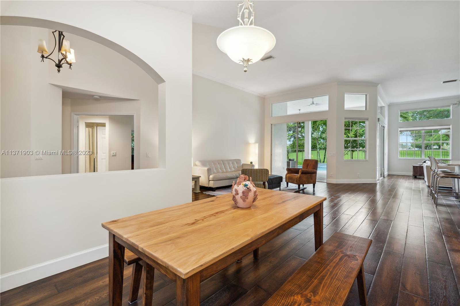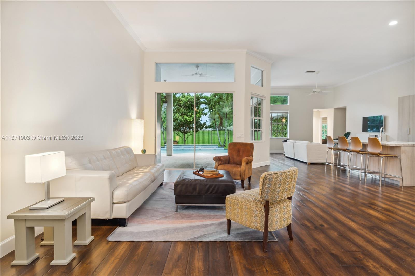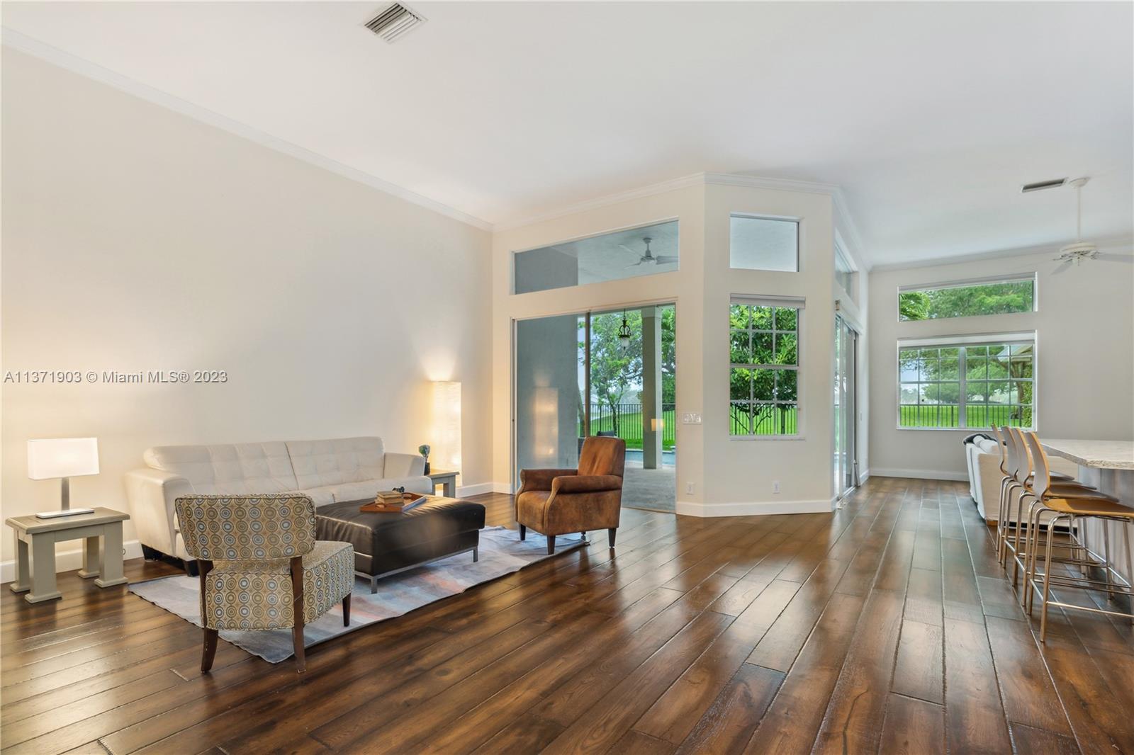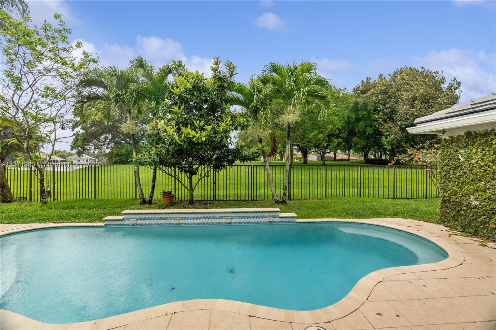 WESTON HILLS COUNTRY CLUB living at its finest. Located on a very unique lot with an expansive and private green space covering several acres directly in your backyard. This beautiful home is bright and fresh with lots of natural light. Open concept flows throughout living areas w/crown molding and 11' ceilings. Spacious Master w/attached sitting area opens to the patio and freeform pool. Triple-split floor plan offers private space for everyone. Kitchen has sleek, modern cabinetry and large island for casual dining. Beautiful wood floors create a warm feel. The Oakbrook neighborhood features a playground, volleyball court, basketball court, sidewalks, and stately oak trees. All schools are consistently "A-rated," helping make Weston an award-winning city. Come live the Weston lifestyle!
