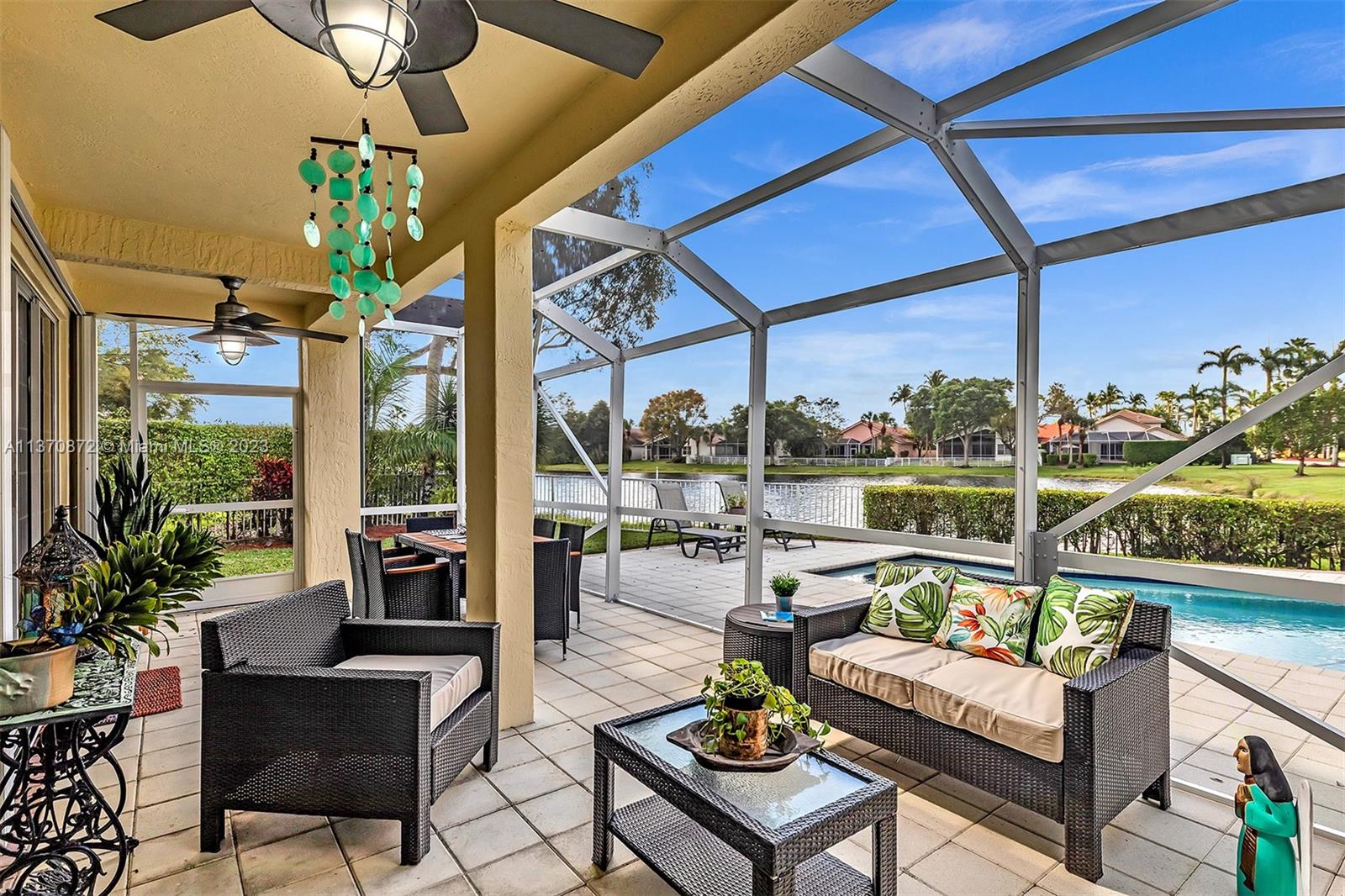 Truly Unique! This two-story contemporary home is located in the prestigious gated community of Grand Palms. This residence features an open floor plan with high-volume ceilings. 5 spacious bedrooms, 4 bathrooms, plus a Den, and a 2-car garage. Oversized master bedroom suite on the second floor with two walk-in closets and a separate private bonus room that can be used as a gym, nursery or office overlooking the lake and golf course. Accordion hurricane shutters throughout. Fully fenced private backyard w/covered screened patio and large pool perfect for entertaining. HOA includes 24 hr manned gate and security patrol, landscaping maintenance, exterior house painting, pressure cleaning of roof and sidewalks, cable, internet and alarm monitoring. Adjacent to Grand Palms Spa and Golf Resort.