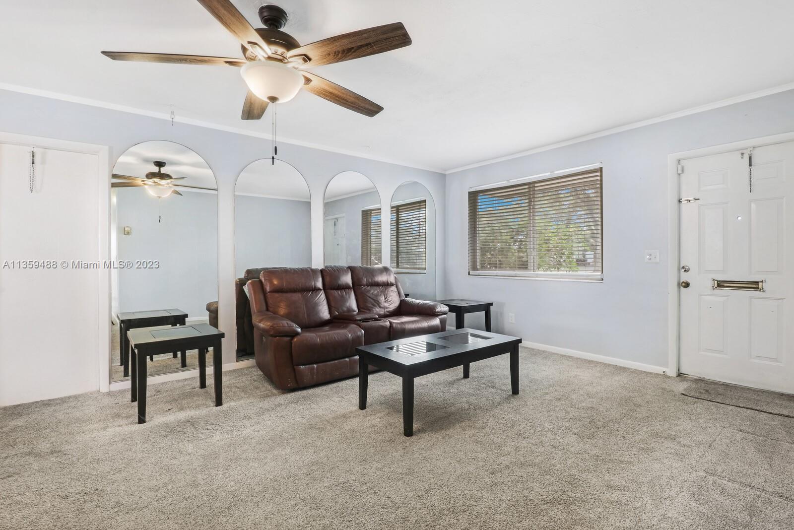 A wonderful Single Family home with 3 bedrooms, 2 baths, plus large bonus room that can be used as a 4th bedroom and a Spacious 2-car garage with circular driveway. This 7,626 sq. ft lot home, features impact windows, terrazzo floors underneath newer carpeting, and a backyard with pool perfect for outdoor entertaining. Other features are kitchen with new stainless steel appliances, lots of storage, generator hook-up and large backyard with shed. Flood Zone X. Move-in condition with endless opportunities to transform into your dream home. No HOA!