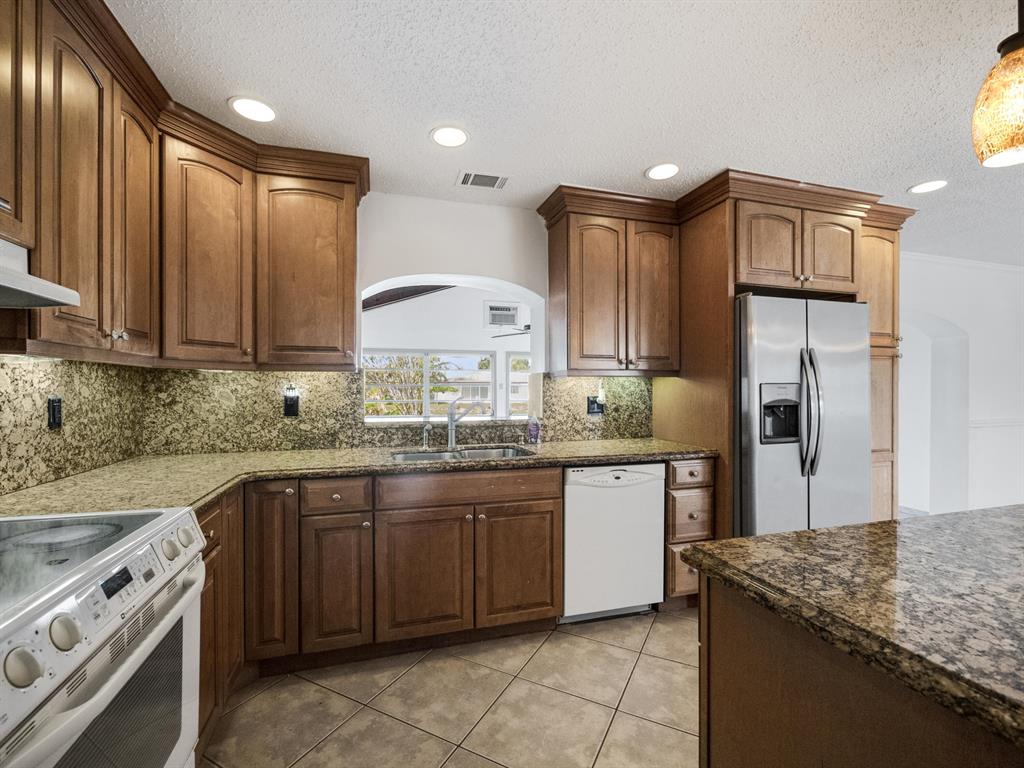 Popular BRISTOL MODEL with a PROFESSIONAL FAMILY ROOM ADDITION (20X23) with vaulted ceiling. PRIVATE CANAL LOT, LARGE YARD AND PRIVATE POOL!!! FENCED!!! Asphalt/fiberglass shingle ROOF 2021 with 15 year transferrable warranty. Remodeled kitchen with granite counters. Tile throughout! Water Heater 2 years! Refrigerator, Washer and Dryer 1 year! Close to schools, shopping and Florida Turnpike! Say ''Yes'' to this beautiful loved home.