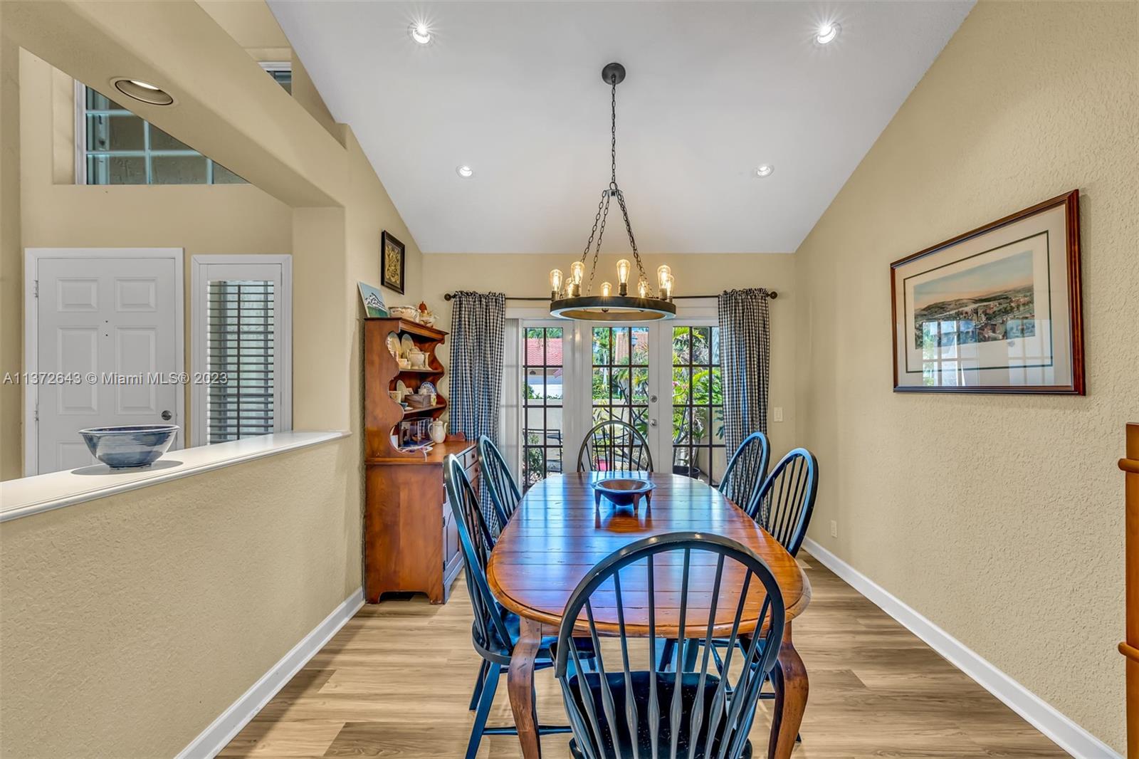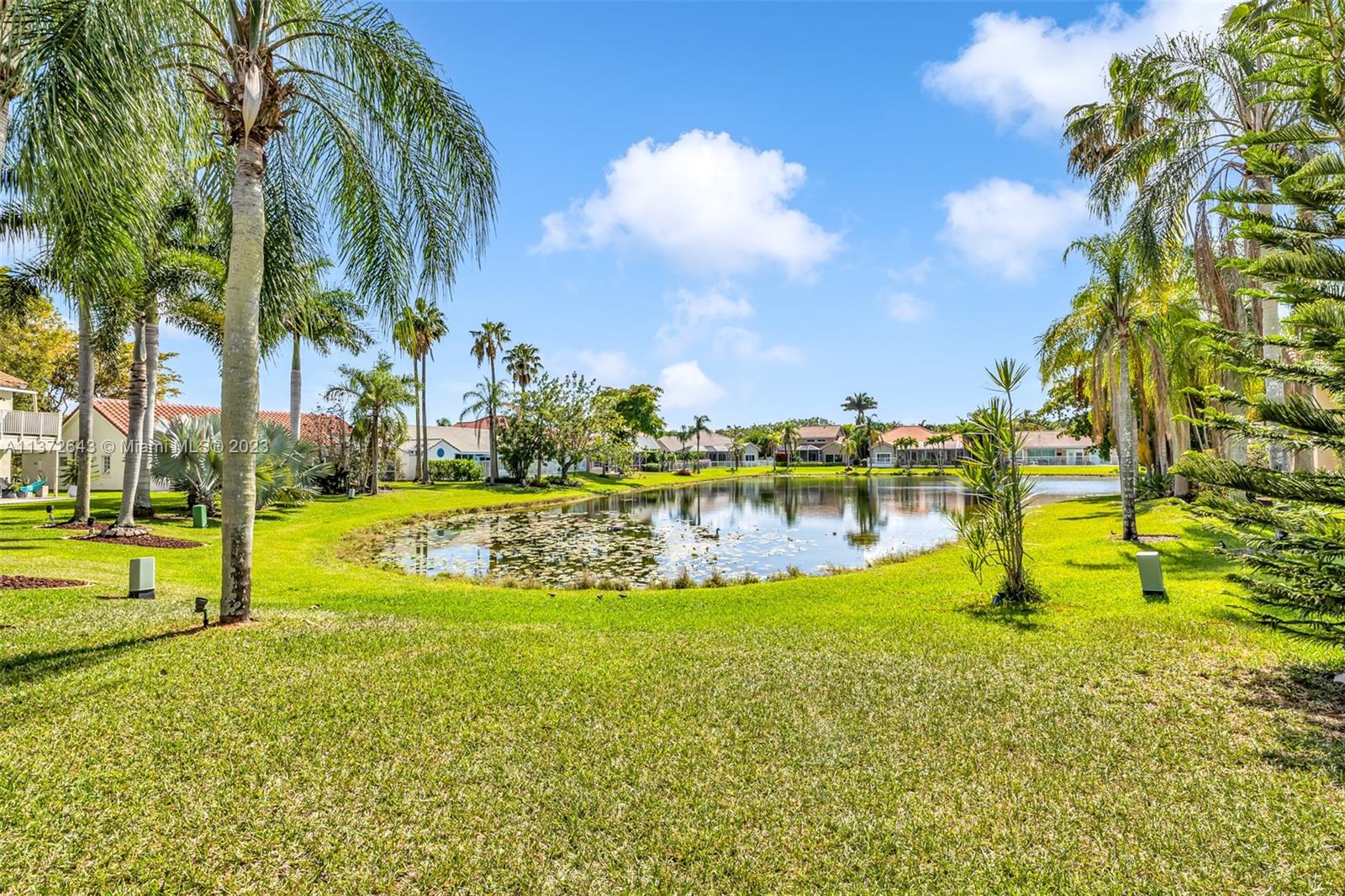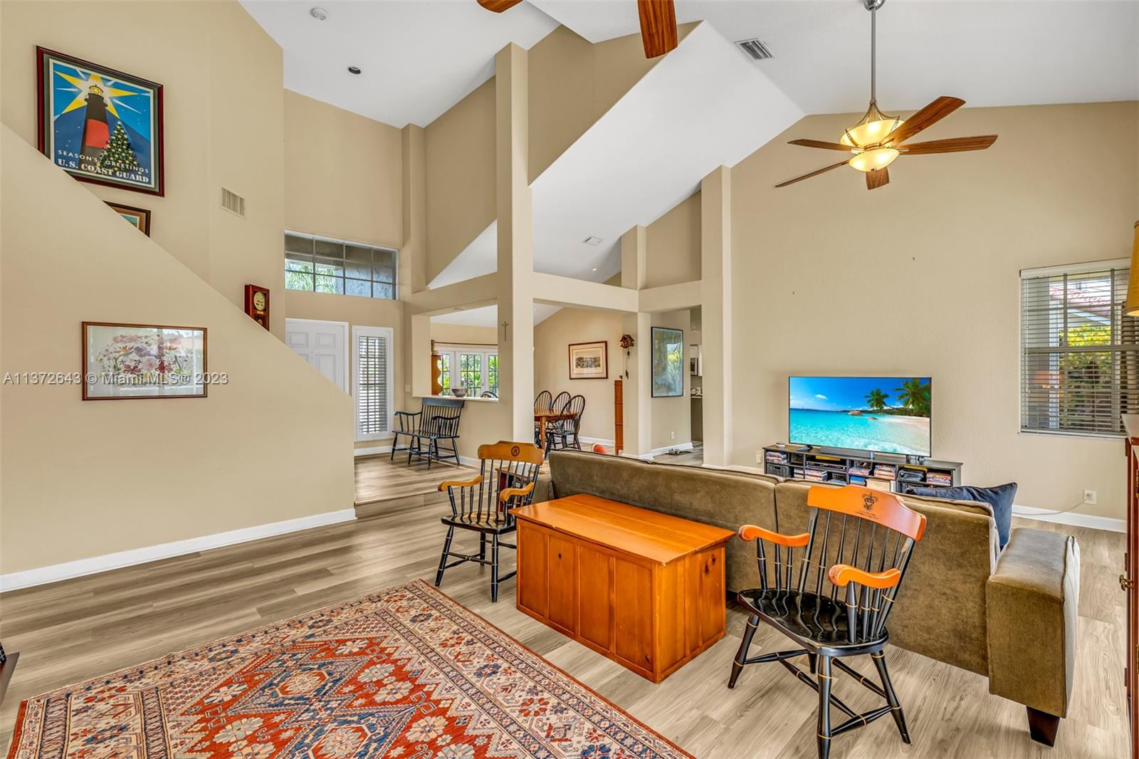 This distinctly cozy home welcomes you with a sizable & homey environment in a beautiful setting. Offering an excellent layout with high ceilings & wrap-around sliding patio doors in the lower level, incorporating light & the outdoors. New lower level flooring, formal dining with access to courtyard, comfortable kitchen w/ beautiful cabinetry, quartz counters & plenty of storage options. Primary suite w/ ample closet space. The large en-suite bathroom also serves as cabana bath. Upstairs features real hardwood flooring, 3 Br's + bath. Updated A/C & electric panel, garage door & accordion shutters. Relax in the privacy of your screened lanai & heated pool/spa w gorgeous views. Laguna Springs is a hidden gem of just 106 homes, ideally situated, steps from schools, parks & places of worship.