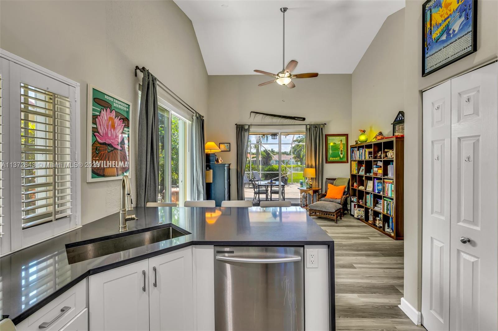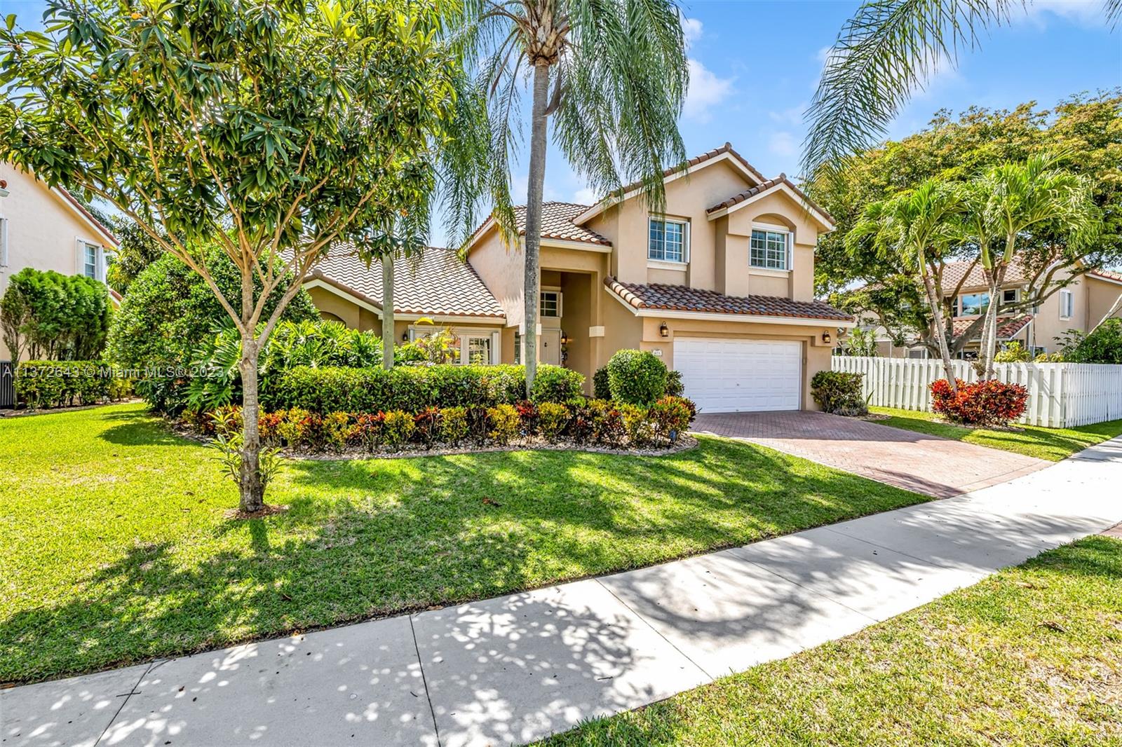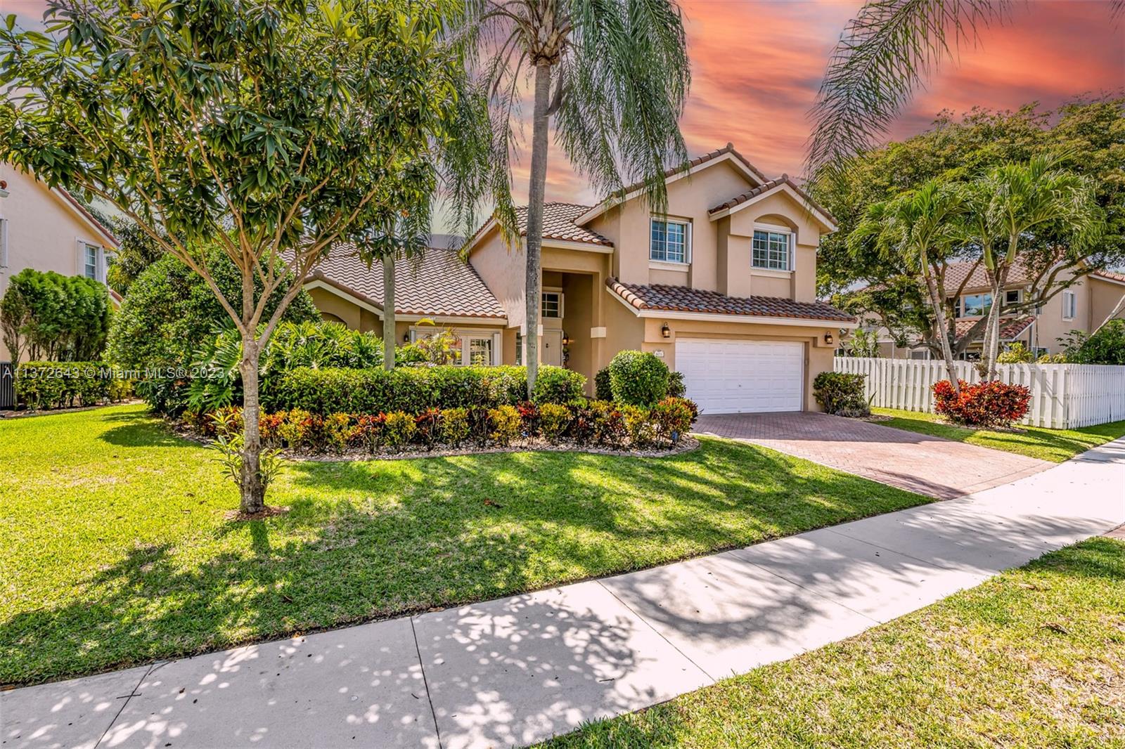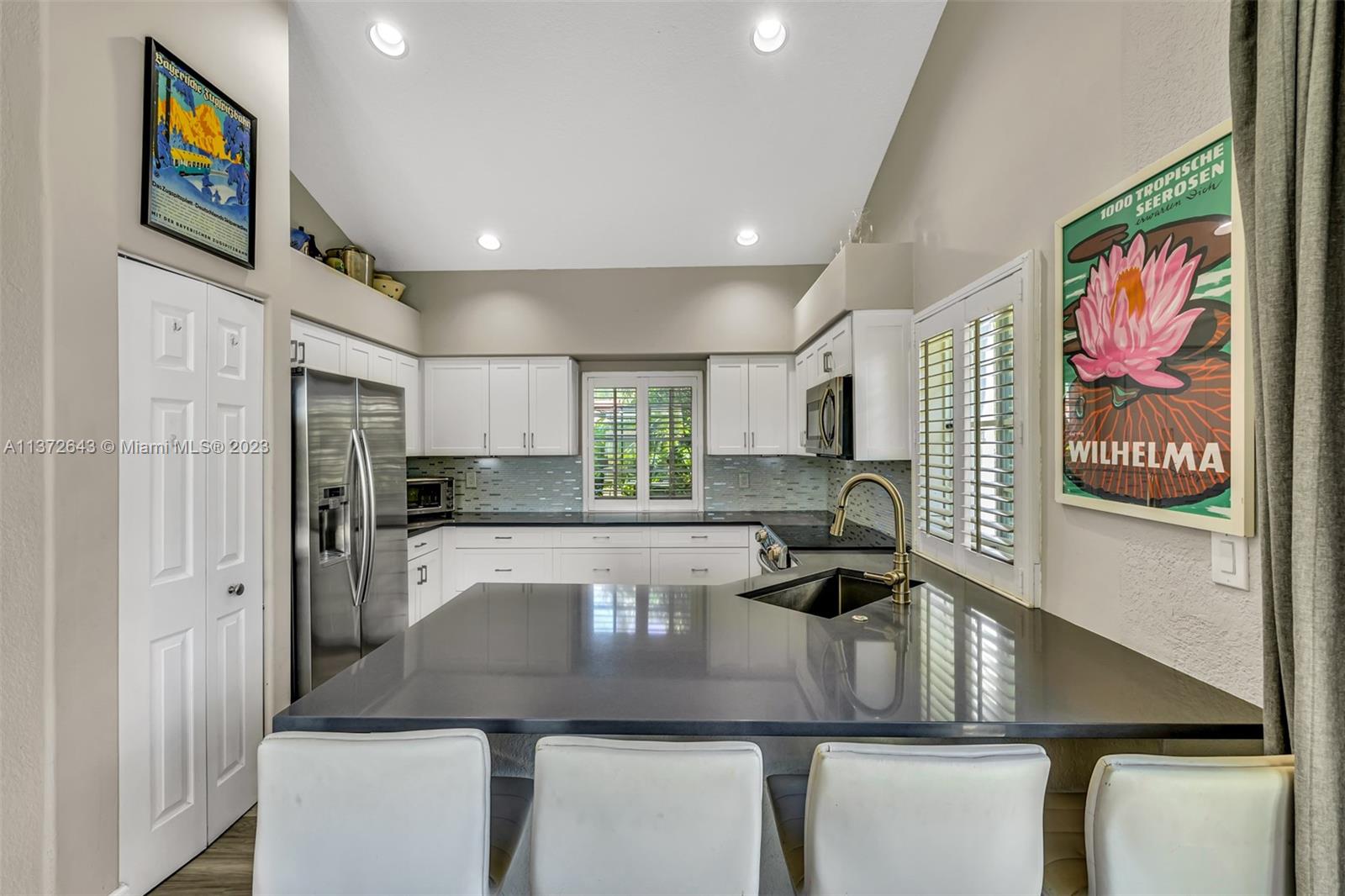 This distinctly cozy home welcomes you with a sizable & homey environment in a beautiful setting. Offering an excellent layout with high ceilings & wrap-around sliding patio doors in the lower level, incorporating light & the outdoors. New lower level flooring, formal dining with access to courtyard, comfortable kitchen w/ beautiful cabinetry, quartz counters & plenty of storage options. Primary suite w/ ample closet space. The large en-suite bathroom also serves as cabana bath. Upstairs features real hardwood flooring, 3 Br's + bath. Updated A/C & electric panel, garage door & accordion shutters. Relax in the privacy of your screened lanai & heated pool/spa w gorgeous views. Laguna Springs is a hidden gem of just 106 homes, ideally situated, steps from schools, parks & places of worship.