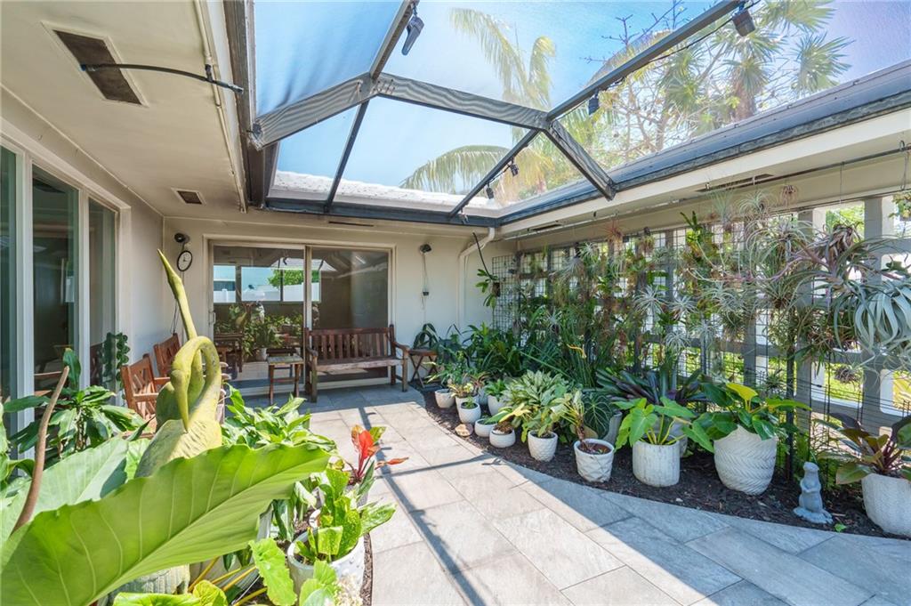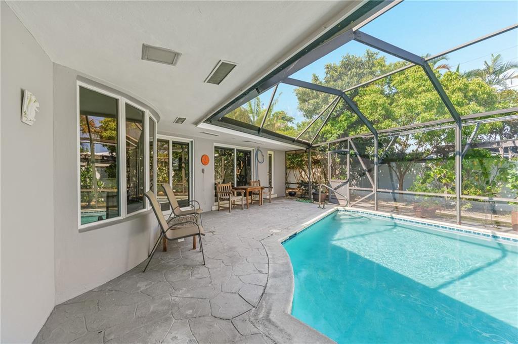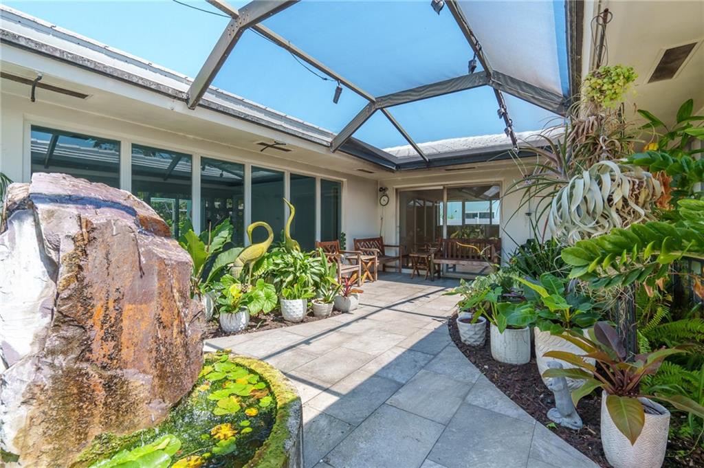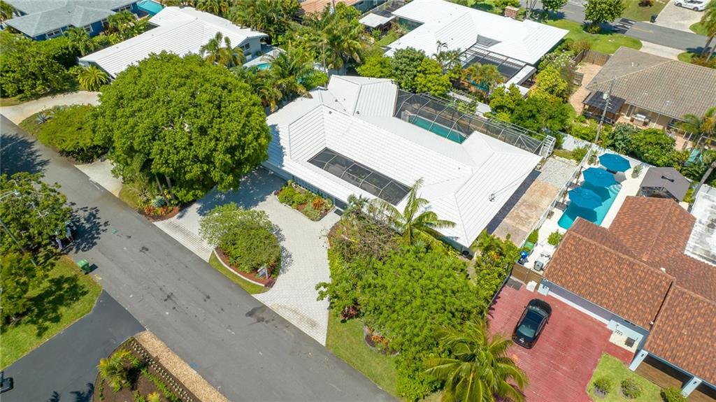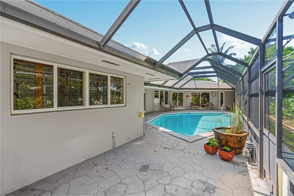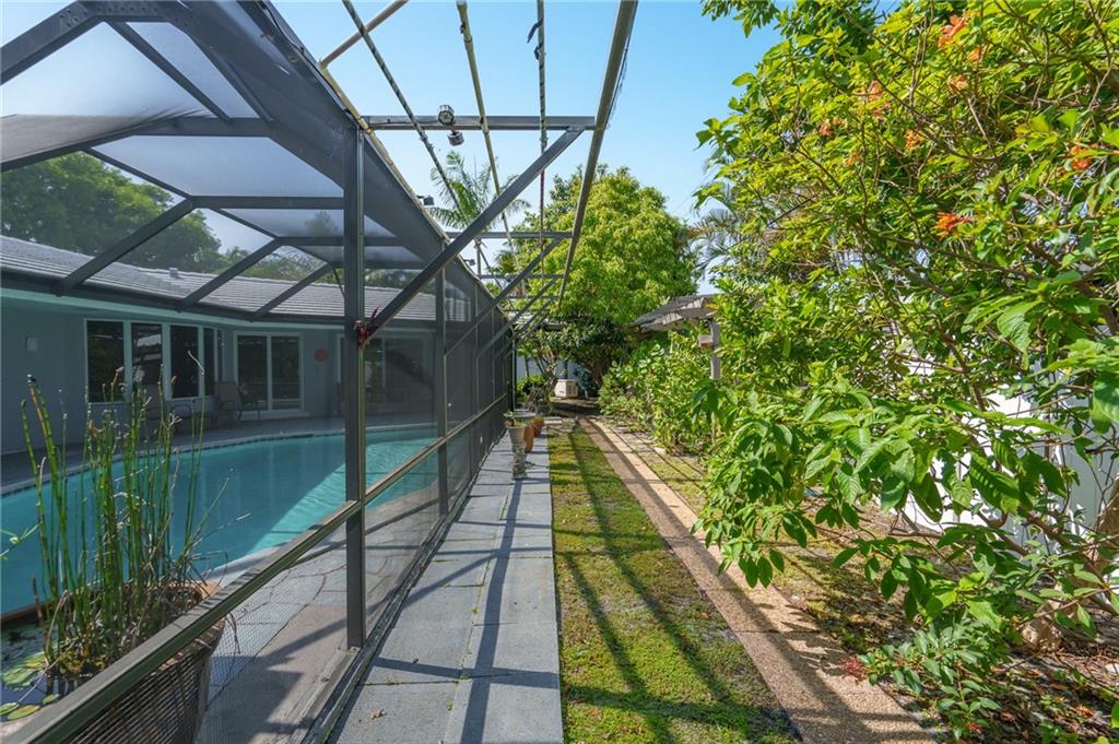 Unique lines in this mid century home offer a fine compliment to both the indoor and outdoor space. Enter the house through a double door courtyard into a well established garden complete with water features and koi pond. The large courtyard windows offer a view into the home, though the house to the backyard pool area. A second double door entry leads you into the home. The kitchen is surrounded by the "round room", a unique feature to this floorplan as well as a garden room. The split bedroom floor plan is a three bedroom, two and a half bath, a large great room, living and dining area. Newer roof, AC and water heater. Full house generator, natural gas, impact windows and doors. The area is walkable to restaurants and 1.5 miles to Lauderdale by the Sea. Property offered AS-IS.
