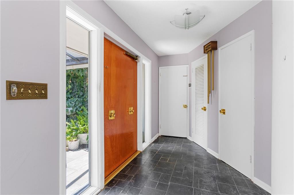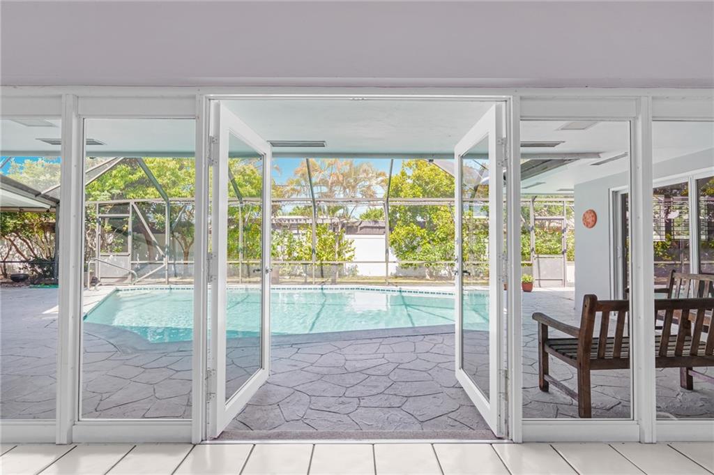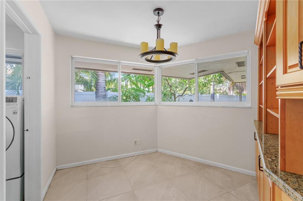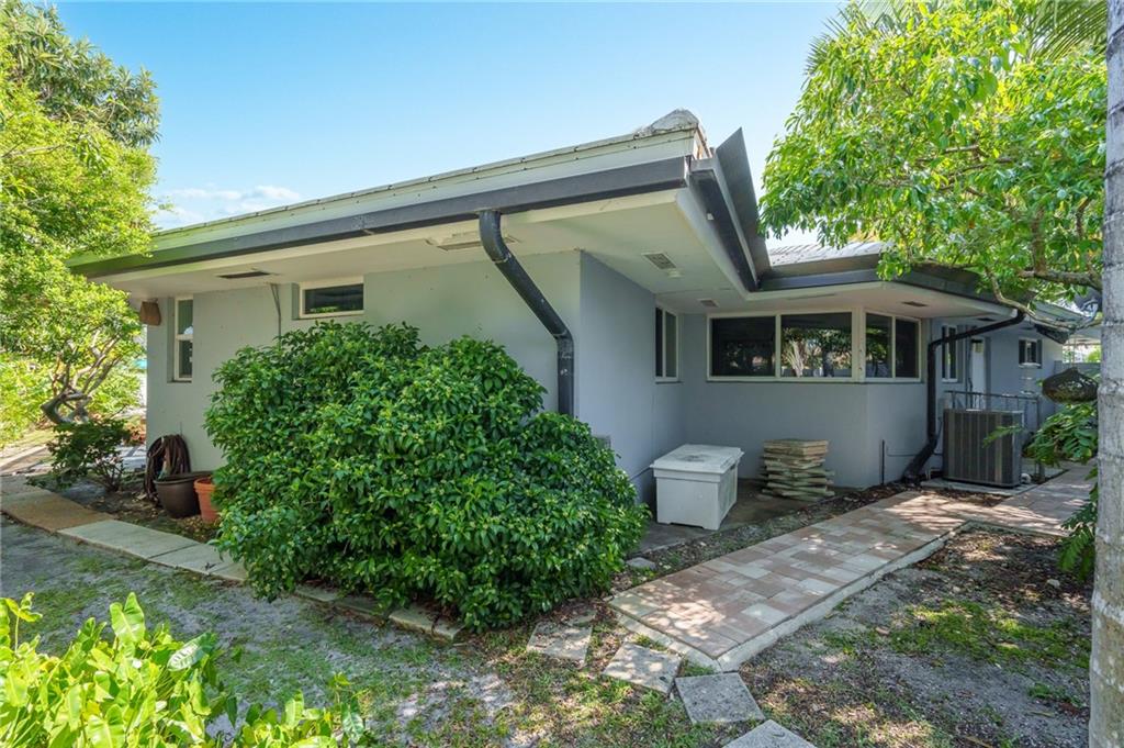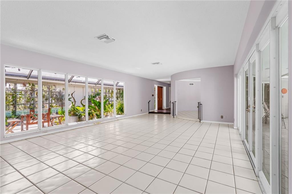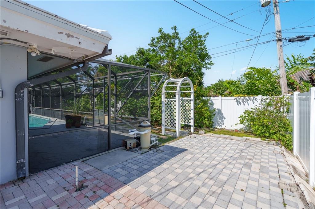 Unique lines in this mid century home offer a fine compliment to both the indoor and outdoor space. Enter the house through a double door courtyard into a well established garden complete with water features and koi pond. The large courtyard windows offer a view into the home, though the house to the backyard pool area. A second double door entry leads you into the home. The kitchen is surrounded by the "round room", a unique feature to this floorplan as well as a garden room. The split bedroom floor plan is a three bedroom, two and a half bath, a large great room, living and dining area. Newer roof, AC and water heater. Full house generator, natural gas, impact windows and doors. The area is walkable to restaurants and 1.5 miles to Lauderdale by the Sea. Property offered AS-IS.