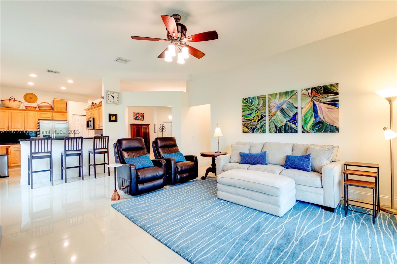 Beautilful, meticulously well maintained 4 Bedroom, 2 Bathroom one story Single Family home with 2 Car garage with just under 2,000 Sqft under air. This home has a split floor plan with primary suite on one side and other 3 bedrooms and a bathroom on the other side of the home. This home is very light and bright with high ceilings, high quality 24" X 24" porcelain tiles through out the main living areas and bedrooms. This home also has a very spacious screened in patio with custom sun shades that overlooks the lake/preserve so there is lot of privacy and great space to relax and/or to entertain your guests. This home is located in a Guard Gated Community, Savanna. The HOA also includes Club house, resort style community pool, kids pool/play area and a mini golf area.