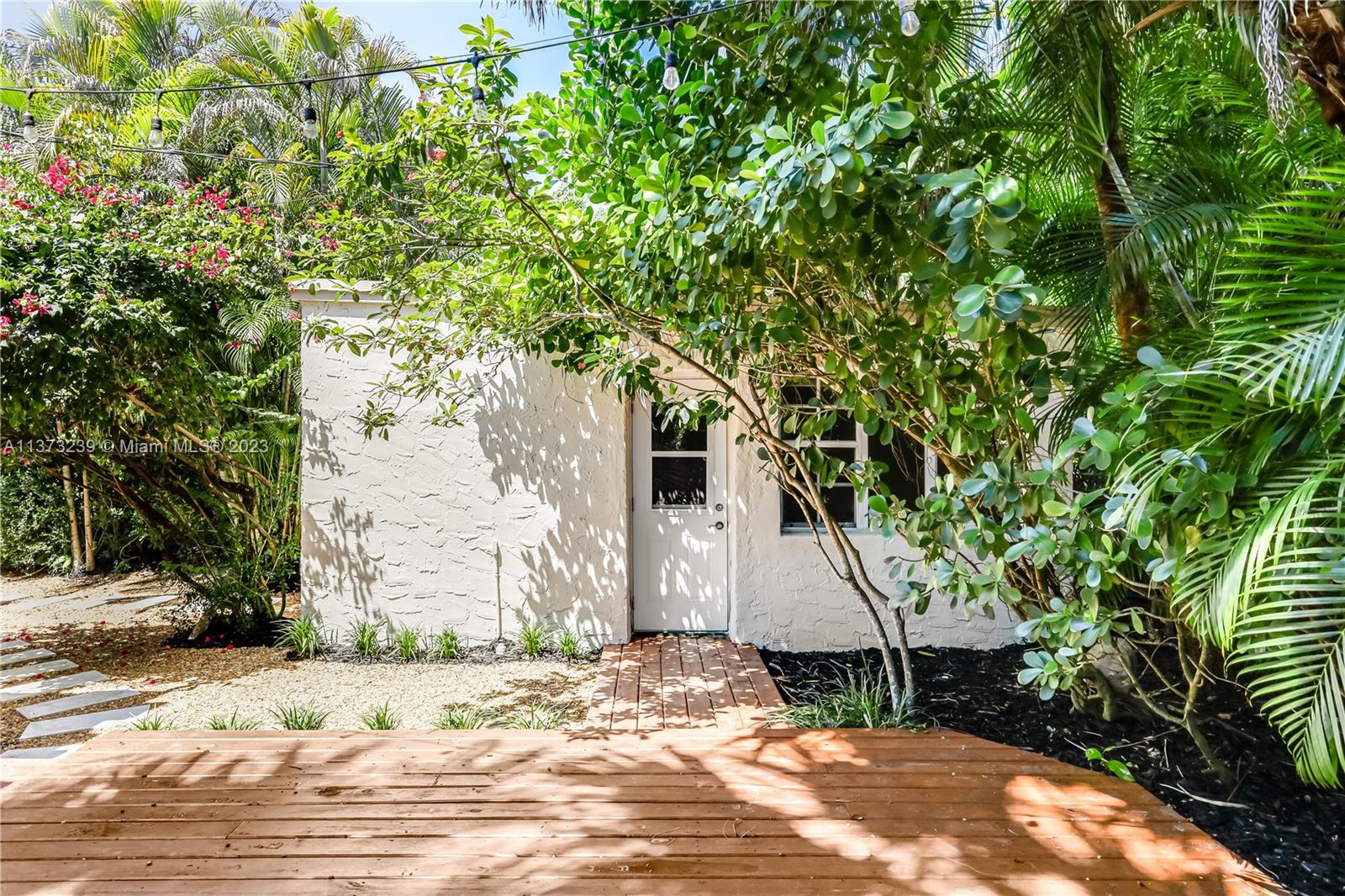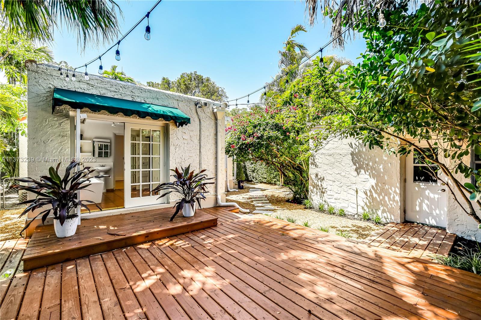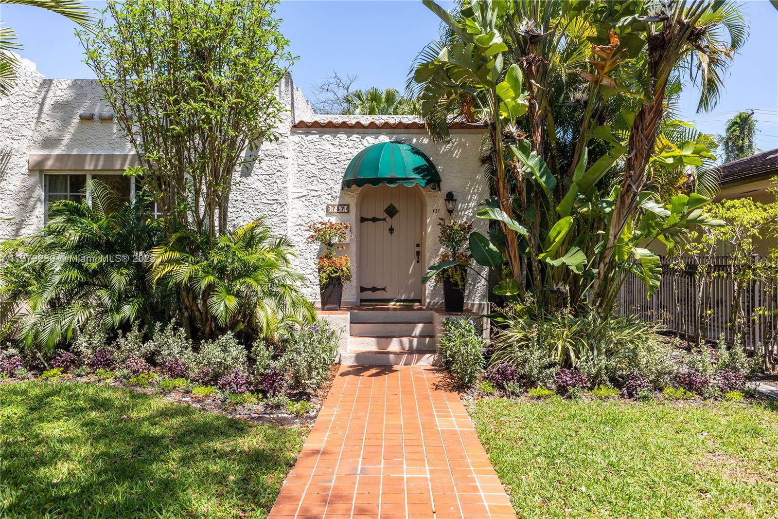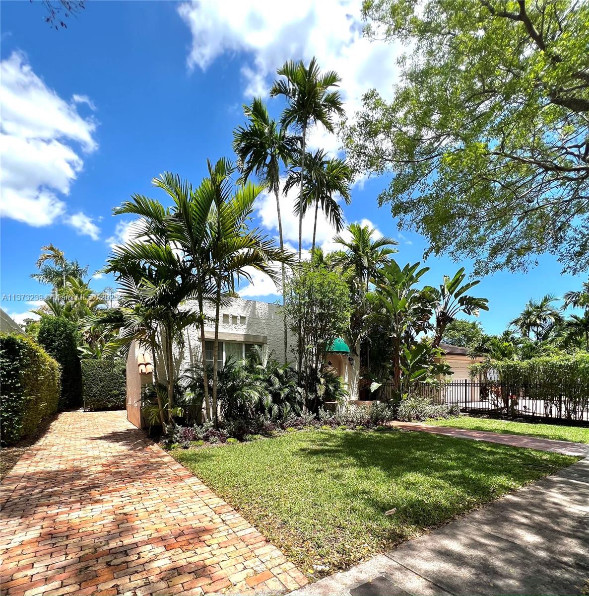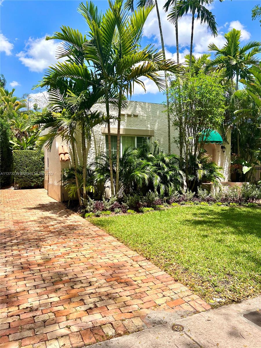 Mediterranean style two bedroom with two full baths; 1783 sq. ft. Original historic touches include the 1920's front door, high ceilings, arches, narrow plank wood floors, and a decorative coral rock fireplace & mantel. The customized architecture features a formal living room and dining room. A wide galley kitchen with a breakfast nook. The outside features a separate cottage with electricity, a new deck with a French door accessed from the master bedroom suite, tropical landscaping, and a multi-colored brick driveway. A perfect bungalow style in Coral Gable's historic district.