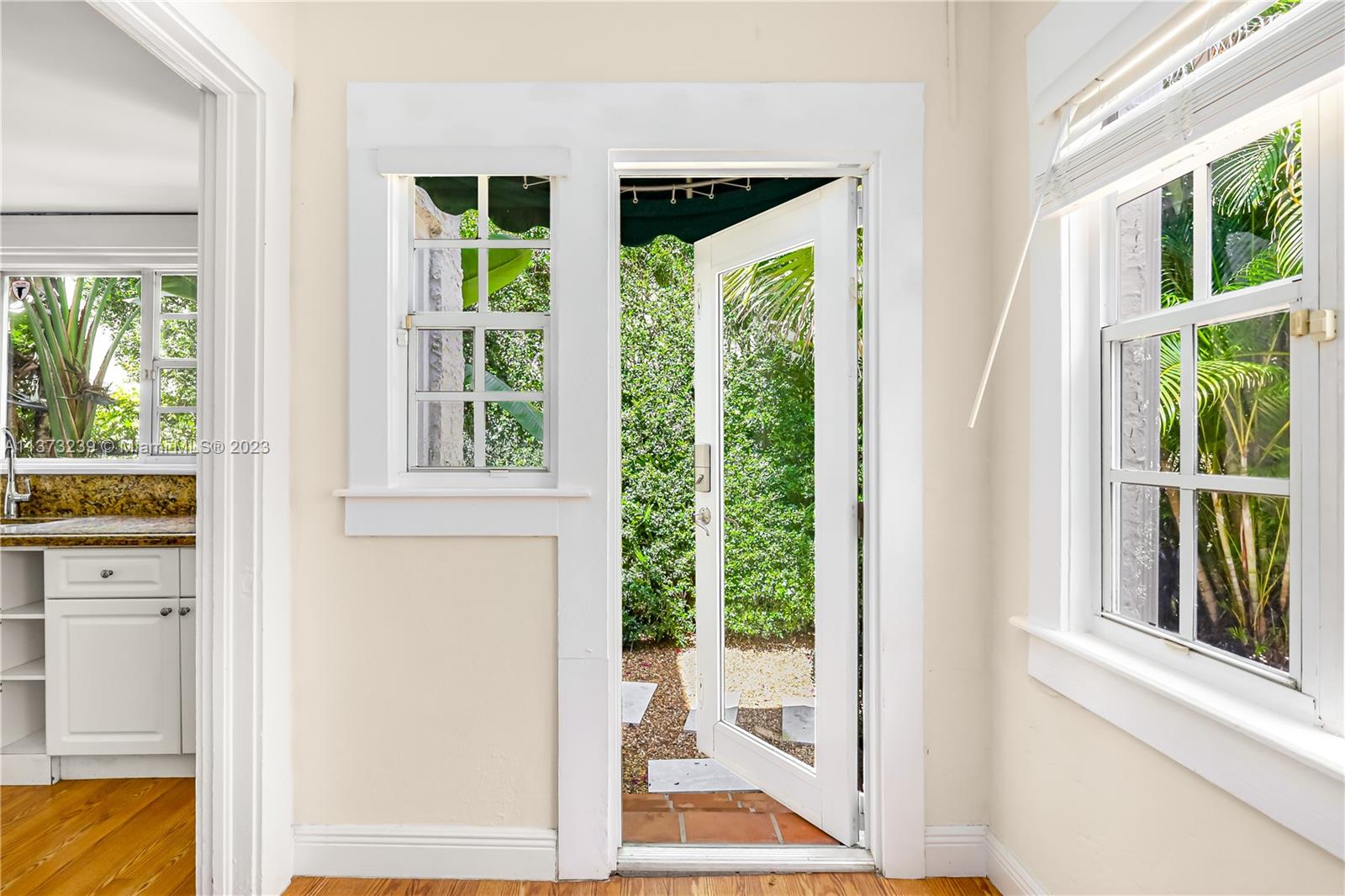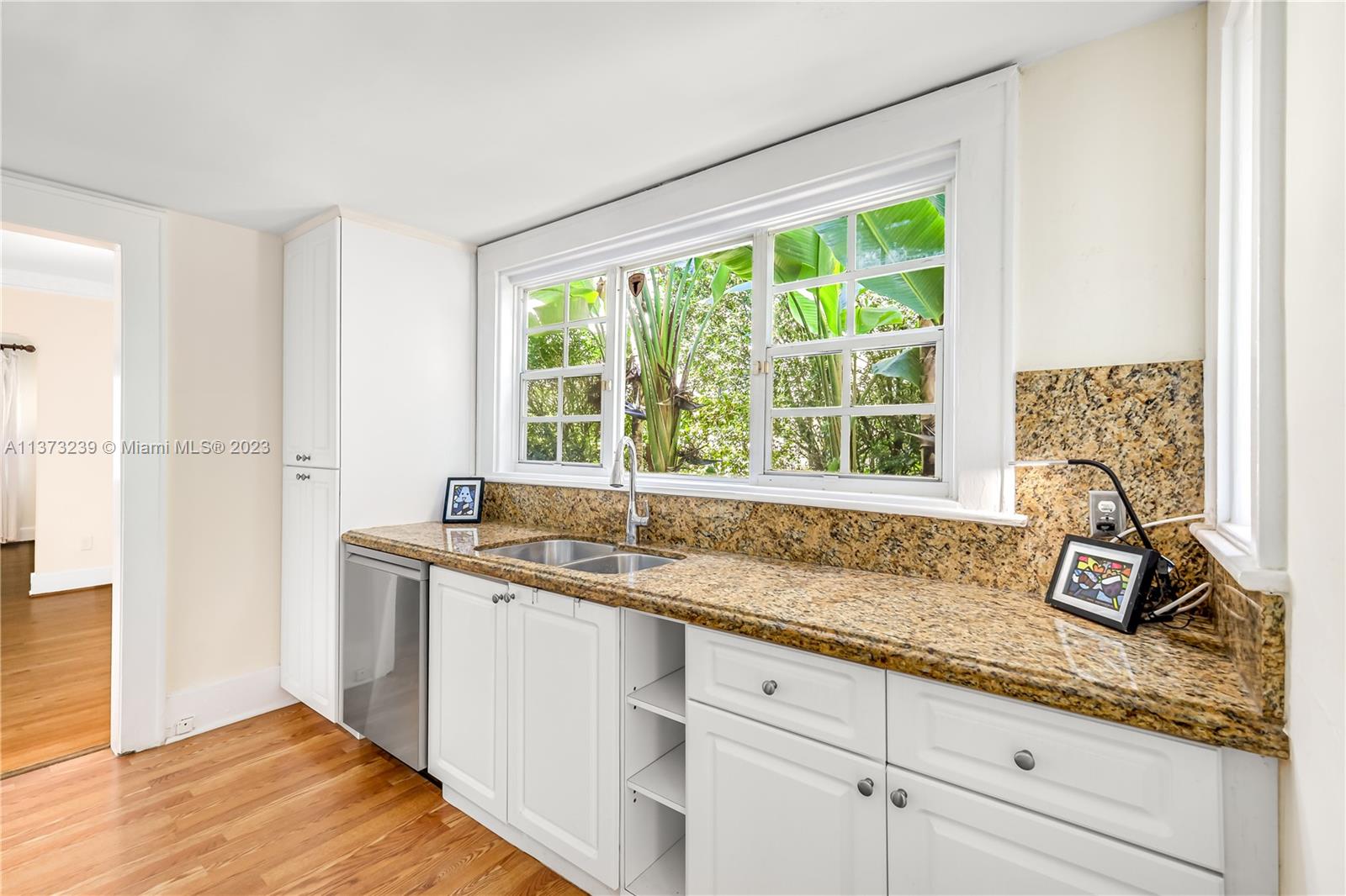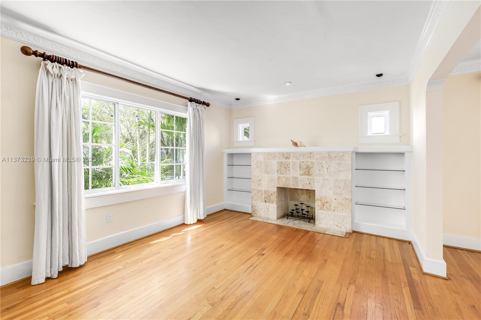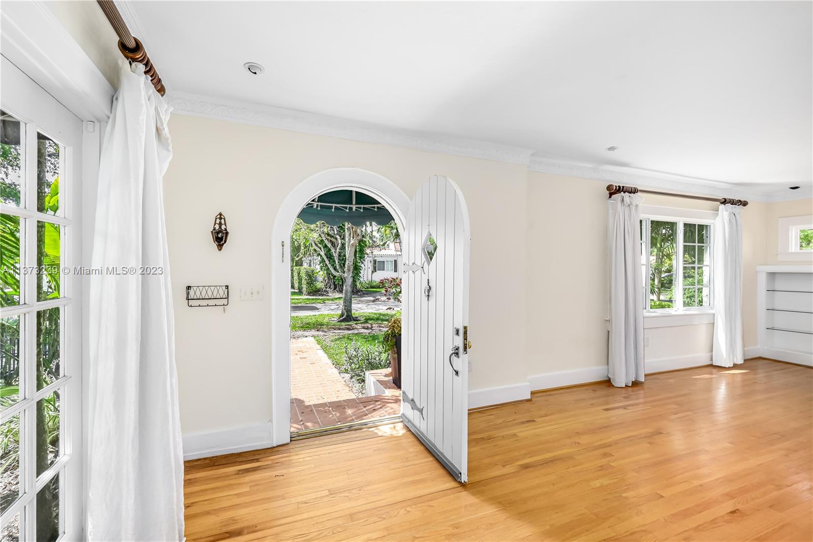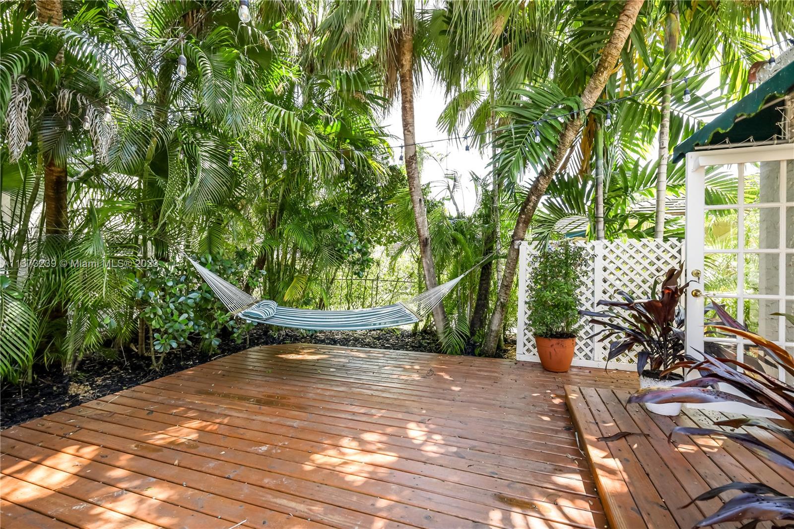 Mediterranean style two bedroom with two full baths; 1783 sq. ft. Original historic touches include the 1920's front door, high ceilings, arches, narrow plank wood floors, and a decorative coral rock fireplace & mantel. The customized architecture features a formal living room and dining room. A wide galley kitchen with a breakfast nook. The outside features a separate cottage with electricity, a new deck with a French door accessed from the master bedroom suite, tropical landscaping, and a multi-colored brick driveway. A perfect bungalow style in Coral Gable's historic district.