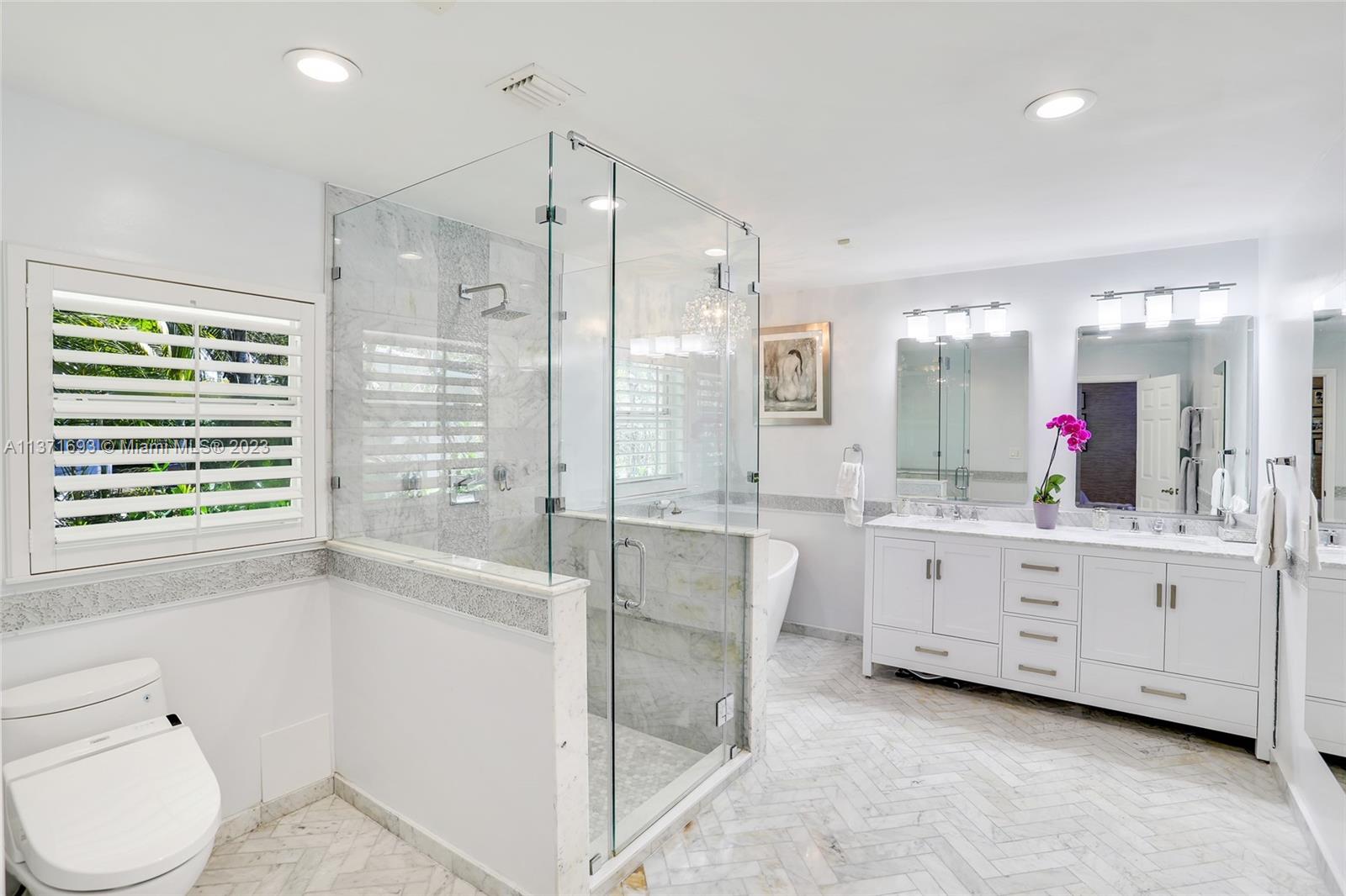 Fabulous opportunity! South Gables Gem! Stunning Hampton transitional style home on beautiful and sought-after street! Completed renovated with finest finishes and exquisite details throughout. Brand new roof, AC, tankless water heater, impact glass and doors. Stunning custom gourmet kitchen with top of line appliances. Lavish master suite with spa-like sumptuous bath! Formal living and dining rooms. Wonderful floor plan with large kitchen open to spacious & versatile familyrm. Split 5th bdrm maid quarter. Beautifully refined and tastefully updated with no expense spared. Large roofed and screened patio and pool for easy outdoor entertaining! Excellent & close-in location . Easy commune and within short distance to all A+ public & private schools! Much more!See Broker remark for showings.
