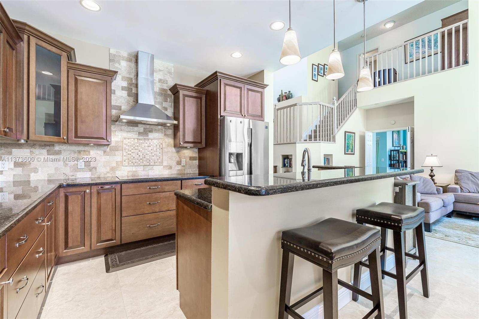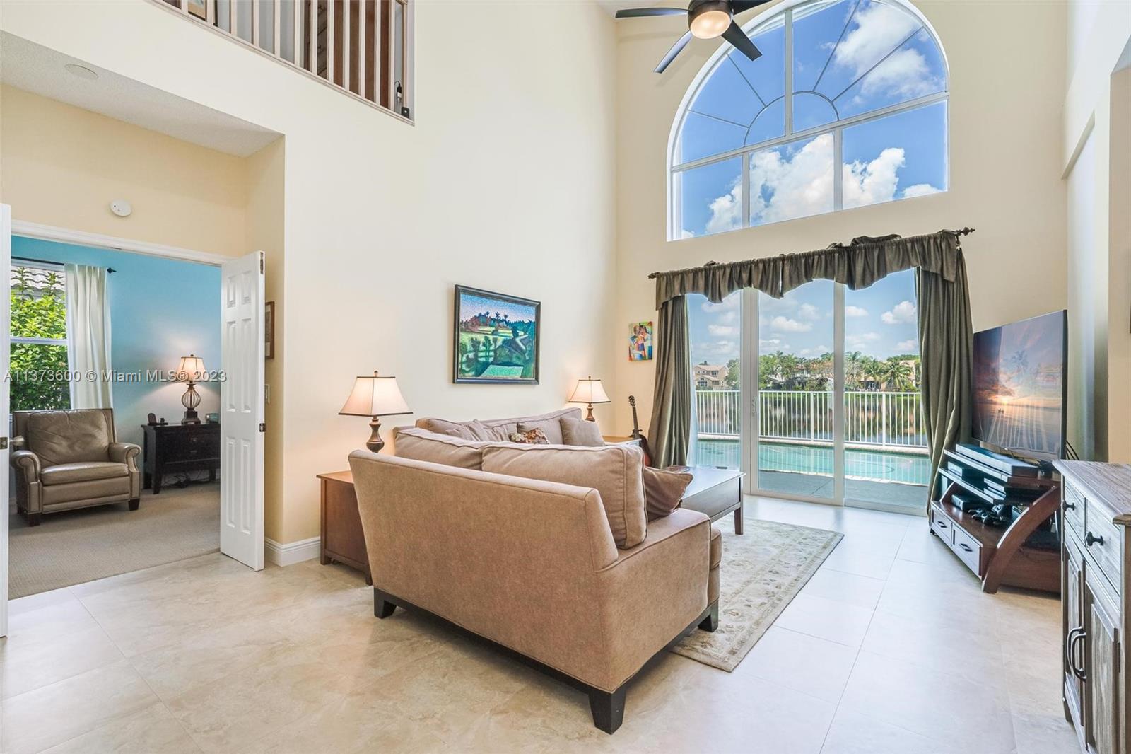 Truly beautiful BIG home with primary suite on first floor. Live the South Florida lifestyle with sparkling pool & breathtaking, breezy lake views. Family Rm sits off of GORGEOUS chef's dream kitchen with stainless package, granite & wood cabinetry. Large combined dining room/living room for entertaining. Meticulously kept home with nice sized rooms, sky high ceilings & loads of natural light. 3 full baths. Fish or canoe from your own backyard. Big lot for gardening or play. 2018 tile roof. Accordion shutters & impact sliding doors offer storm protection. Friendly neighborhood with lots of Chapel Trail amenities. SOUGHT AFTER schools! Easy drive to most all your day to day necessities & major roads. Save money ~ irrigation comes from lake & association offers discounted cable/internet.
