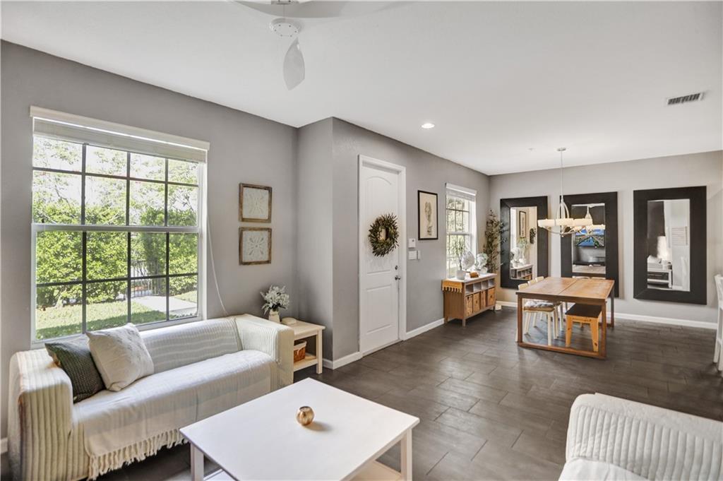 Stylish updated 3/2.5 corner Townhome with direct lake view in Orchid Grove. Truly one of a kind. One of the larger units in the complex. Hurricane Impact Windows & Doors. Bright & airy open concept floor plan. 1st floor boast 9.5 ft ceilings, Gourmet kitchen, Granite countertops, wine rack, SS appliances. Over sized living/kitchen area. Upgraded 12x24 plank tile, den and 1/2 bath. Enjoy 9 ft ceilings on the second floor. Over sized master bedroom, large closets and spa like master bathroom with soaking tub & shower. 2 nicely sized guest bedroom. Gorgeous guest bathroom with upgraded cabinet & flooring. Larger 1 car garage with epoxy floor. Oversized driveway that will accommodate 2 cars. Plenty of outdoor space to grill and entertain while enjoying full lake view. Private backyard.