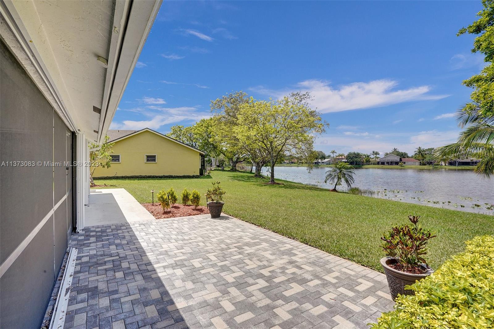 This popular Mt. Vernon model is situated on a OVERSIZED 16,000 SF CORNER LAKEFRONT LOT with plenty of ROOM FOR A POOL. IMPACT WINDOWS AND DOORS INSTALLED 2019 . Ceramic tile floors in main living area and WOOD-LOOK TILE FLOORS IN ALL BEDROOMS. Kitchen features WOOD CABINETS with GRANITE COUNTERTOPS. Master bath has DUAL SINKS and ROMAN TUB W/ SEPARATE WALK-IN SHOWER. Master bedroom has TWO SPACIOUS WALK-IN CLOSETS. Screened patio has WIDE SERENE LAKE VIEW and an EXTENDED PATIO AREA with pavers. A/C replaced 2020. Mud sink in laundry room. Close to Rose Price Park, which features a community pool, tennis courts, and club house. Excellent schools. Make this your home today!
