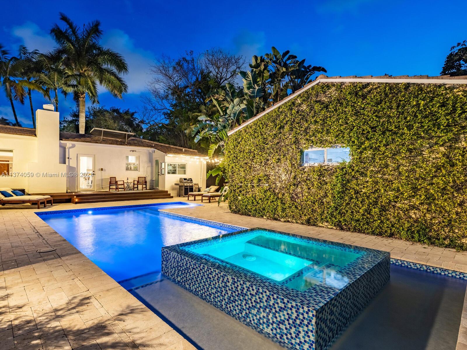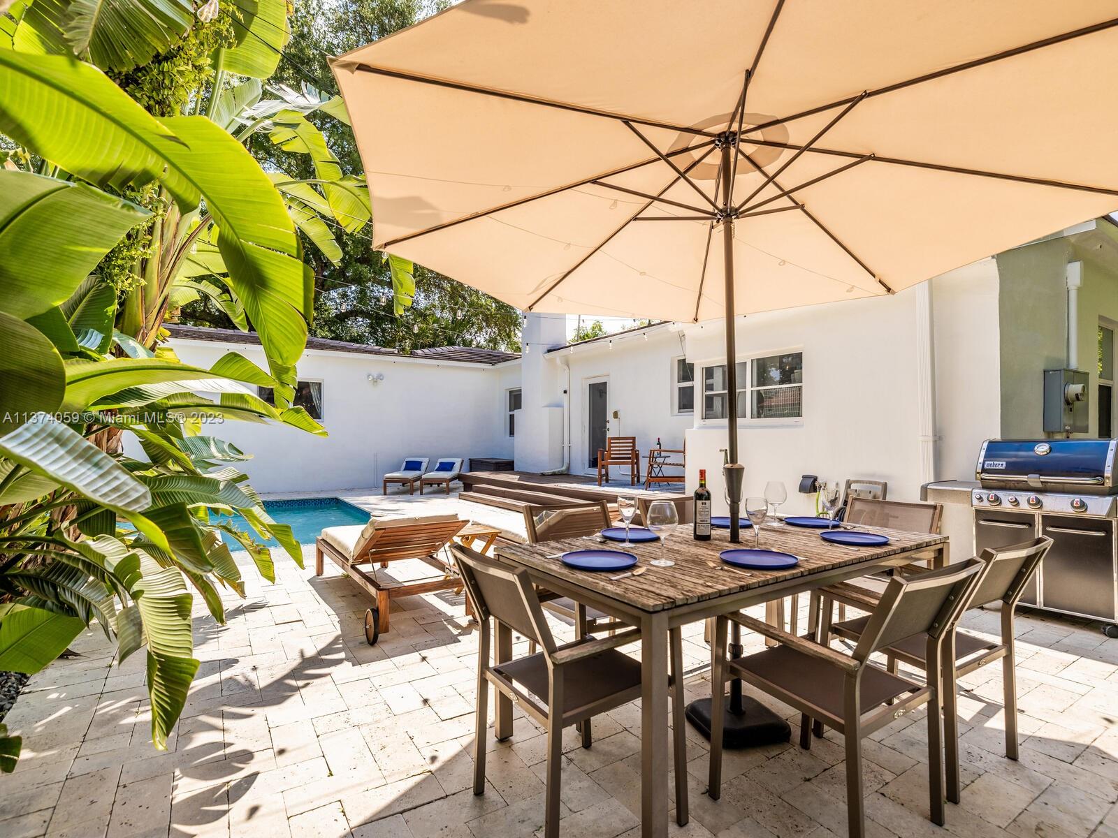 Welcome to Casa Palmera! You’ll feel like you’re in your own personal resort in this nicely-updated 4-bedroom 3-bath Miami Shores pool home. Fantastic interiors, with open-flow living, beautiful wood floors, chef’s eat-in gourmet kitchen, elegant dining with tray ceilings, laundry room, impact windows-doors, and a split bedroom plan for extra privacy, including a tucked away en-suite perfect for guests or nanny. Escape to the Tulum-inspired backyard oasis with cool sparkling pool, entertainment decks, gorgeous lush landscaping, an Instagram-ready vintage built-in BBQ wall, plus a detached huge 484 SF 2-car garage that could also be converted to a pool cabana for added enjoyment. All in a fantastic non-flood zone location, less than two blocks to Downtown Miami Shores shops and restaurants.