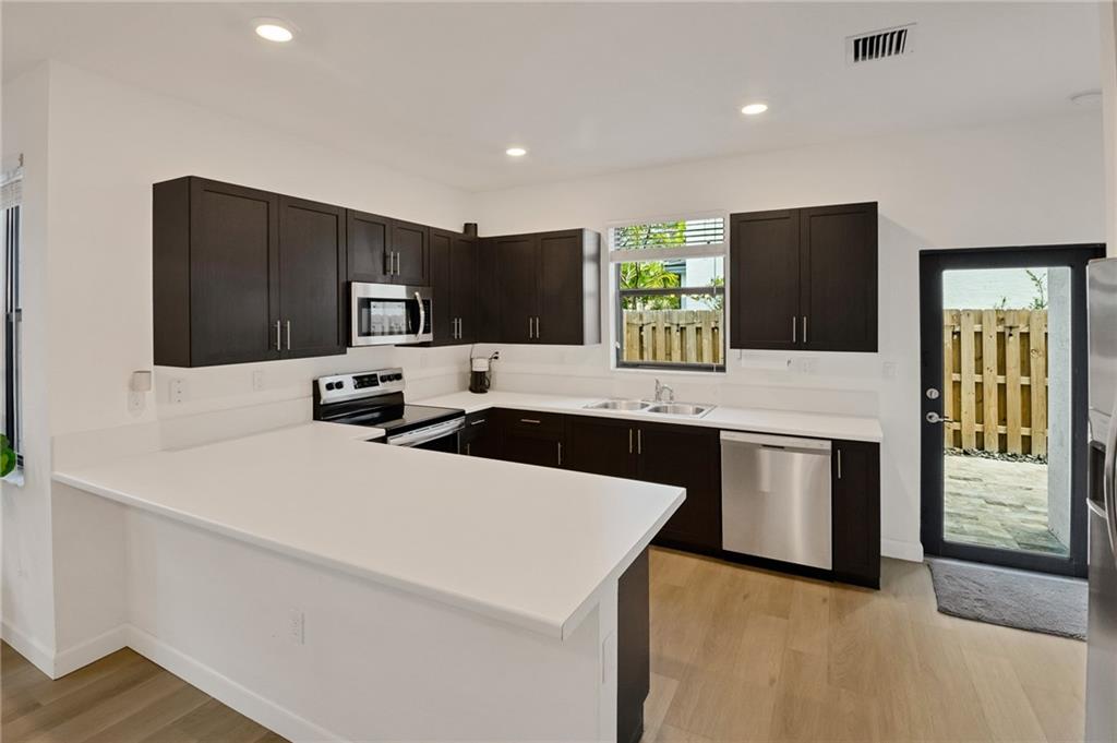 Contemporary corner unit townhome in a gated community. Built in 2021, this newer construction home features luxury vinyl flooring throughout, oversized windows, upgraded fixtures & Kitchen w/ stainless appl & countertop bar seating. Ground floor Living area w/access to the lg paver Patio w/privacy barrier. Upstairs laundry, huge Master suite & 2 guest BR. 1 car Garage w/ 1 car Carport. Grassed private yard maintained by the HOA. The Edge on 20th is a community of new two-story townhomes, providing a low-maintenance & simple lifestyle. Conveniently located near Downtown Fort Lauderdale & Las Olas Blvd, homeowners have access to all that the area has to offer, from unique shopping experiences & innovative restaurants, to boutiques, art galleries & beaches, all within a 10-minute drive.