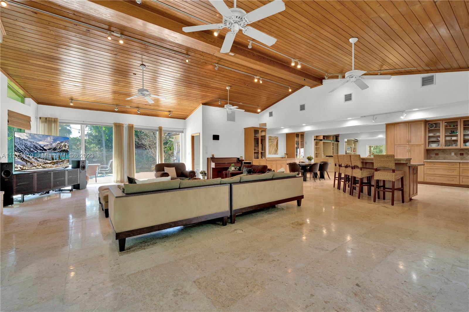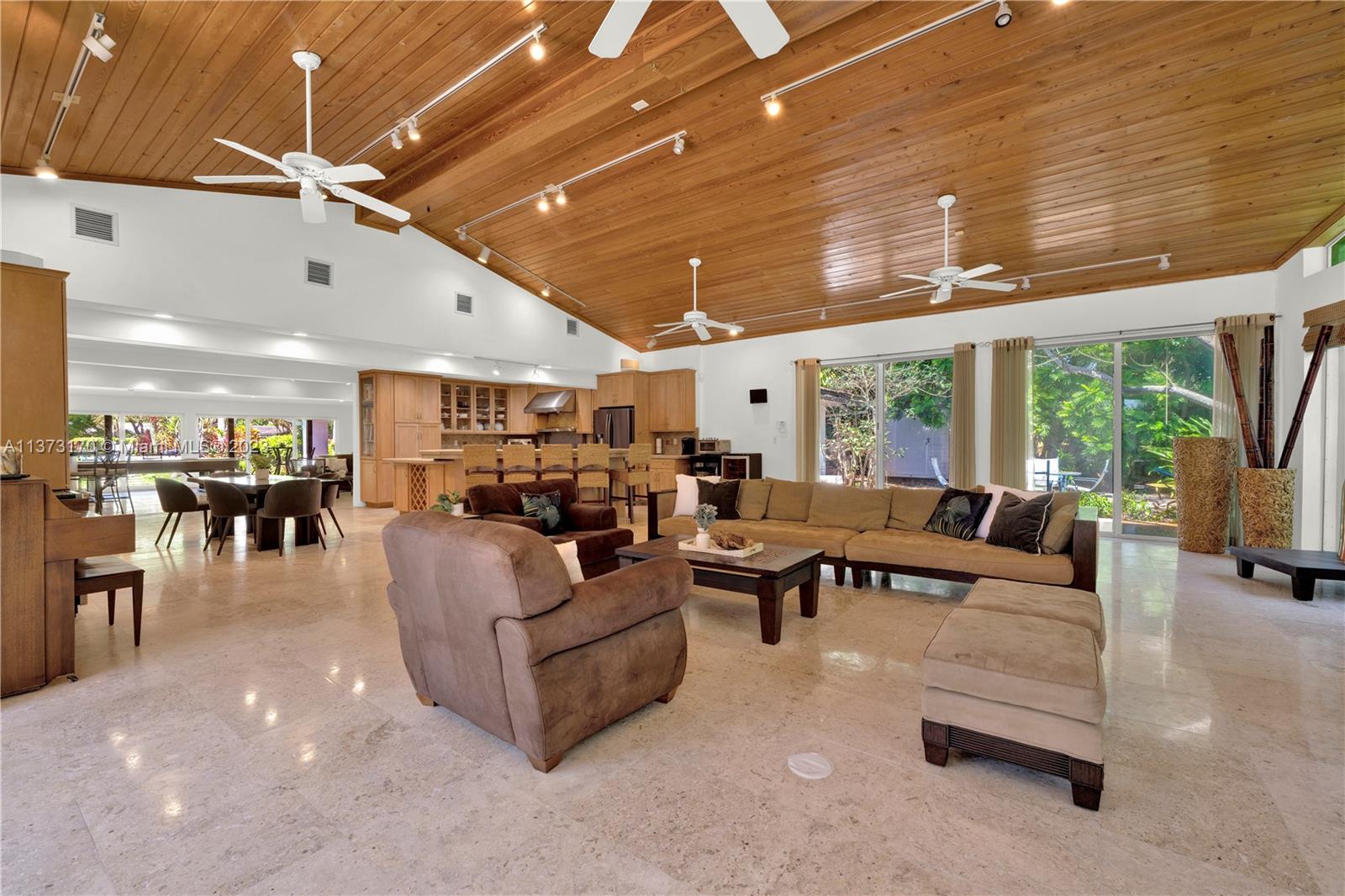 Coconut Grove staycation home vibes in Pinecrest! Enter through the gates to your tranquil, private street-to-street acre oasis. This stunning 4 bed/4.5 bath plus office is surrounded by lush landscaping on perfectly manicured grounds. The large owners suite is split for privacy, while the chef’s kitchen opens to oversized dining/family room. Plentiful windows and sliding doors allow in natural light to the indoor/outdoor open floor plan all leading to an oversized pool/patio perfect for enjoying South Florida living and entertaining. Bonus 4 car garage w/ ample space to store/park a boat and other toys. Hop on bordering paths steps away from parks and top-rated private, and public schools. Who is ready to call this fantastic oasis/house and neighborhood in The Village of Pinecrest, home?