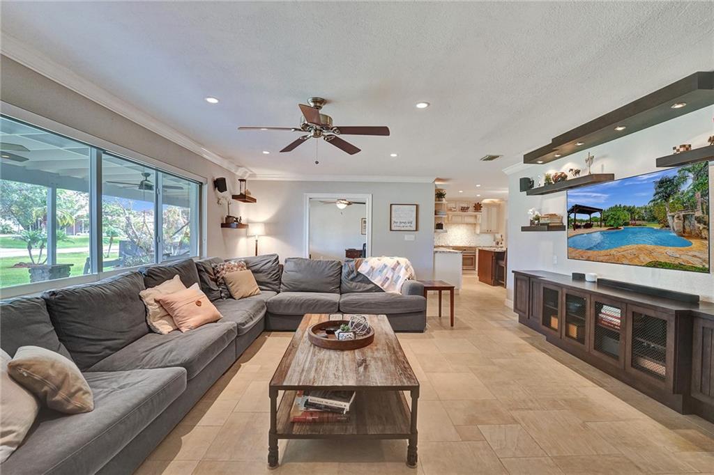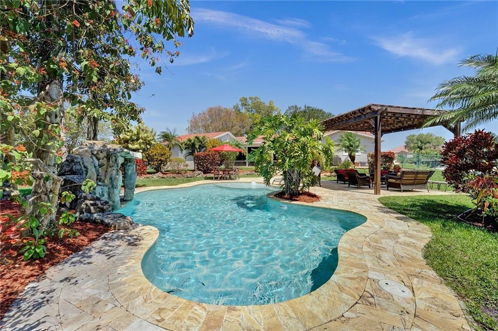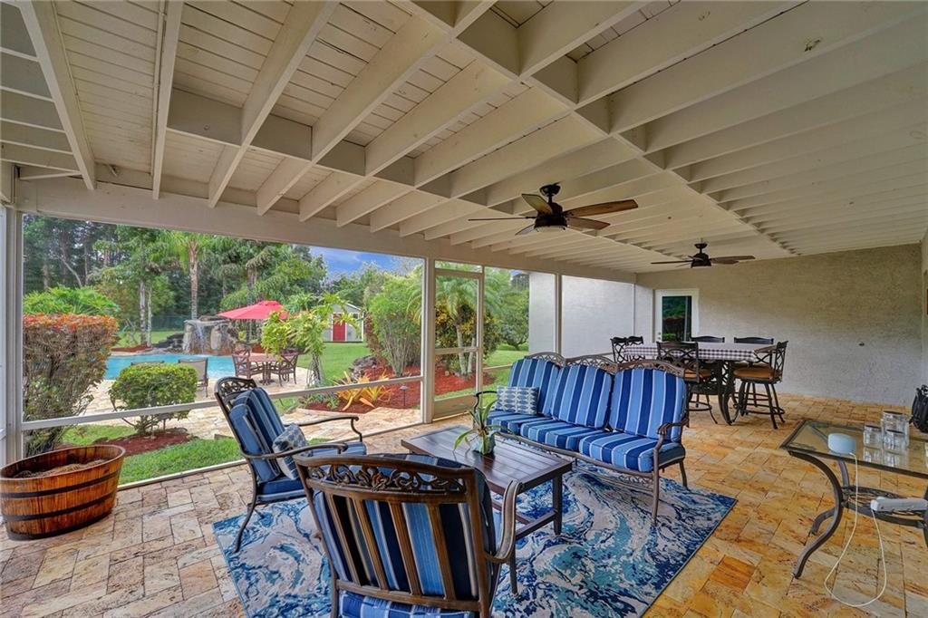 Nestled in SW Ranches, this home of 4 bed 2 bath offers an unrivaled living experience that blends indoor & outdoor living. With an exquisite pool with gazebo & waterfall, the resort-style backyard spans over 2,000 sf of Travertine, providing the perfect ambiance for relaxation & entertainment. Sellers have made this home the ultimate gathering place with an extended front porch & a huge screened back patio, an inviting atmosphere that is both luxurious & comfortable. Step inside to see a custom kitchen with a large island for creating culinary delights, remodeled baths, living, family, & multi-purpose rooms provide ample space for all your needs. This home also features impacts, 2 car garage, 280ft deep well, hurricane-rated shed, & highly-rated schools, making it the epitome of living.