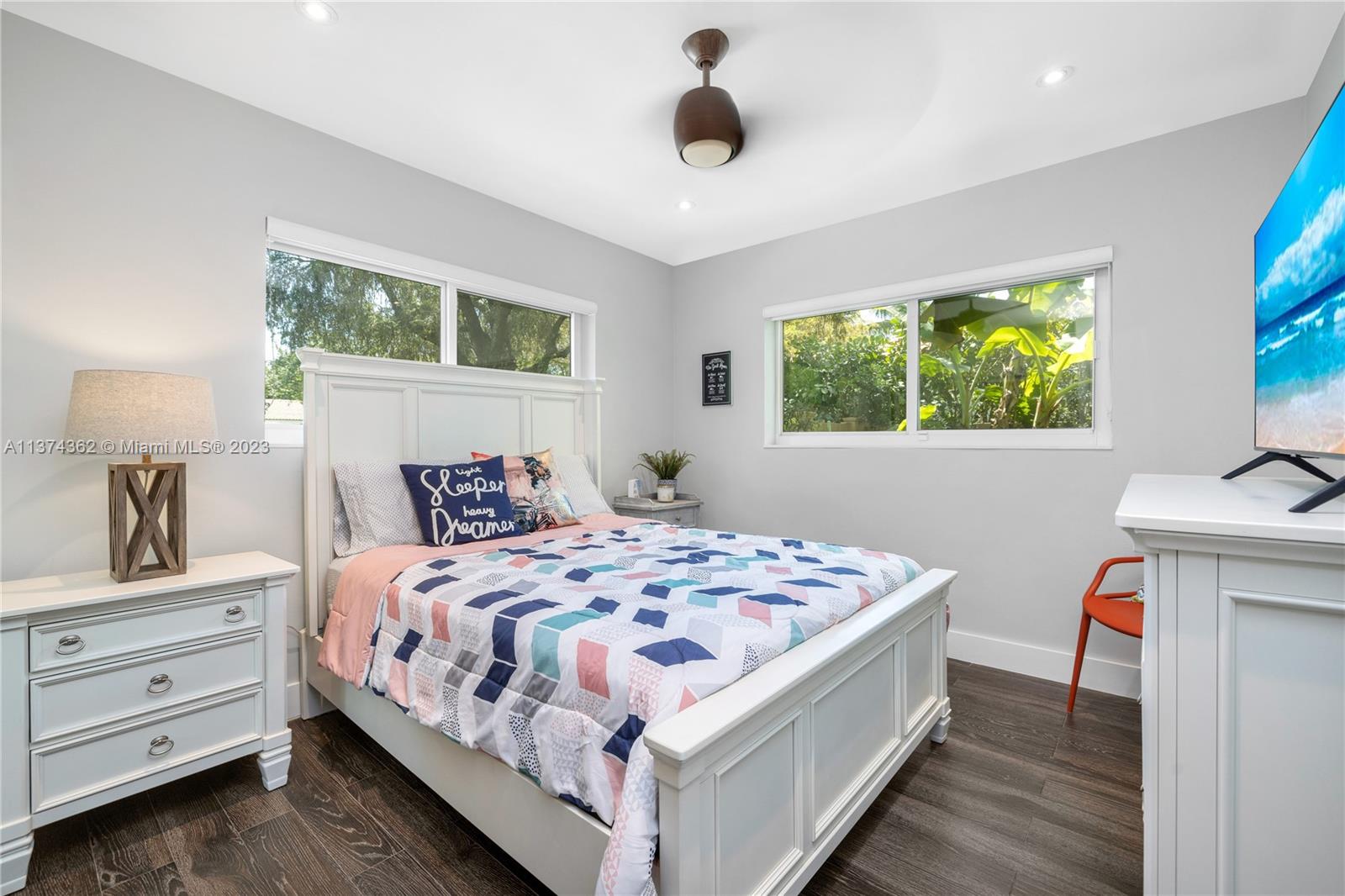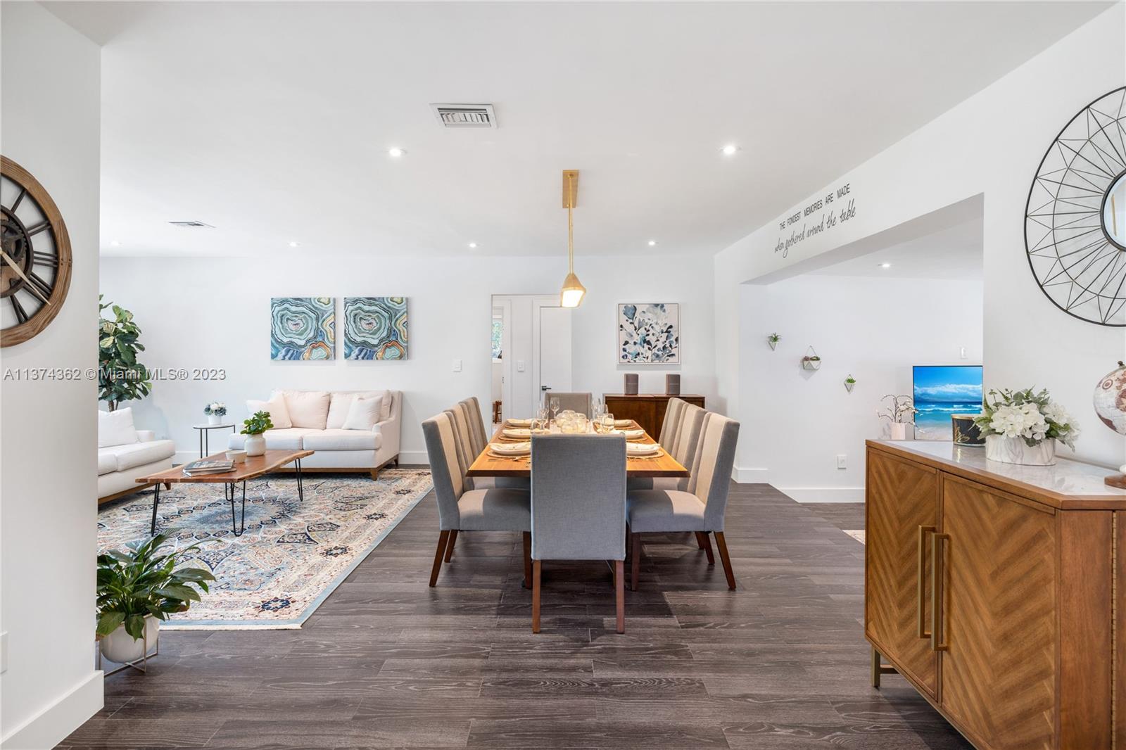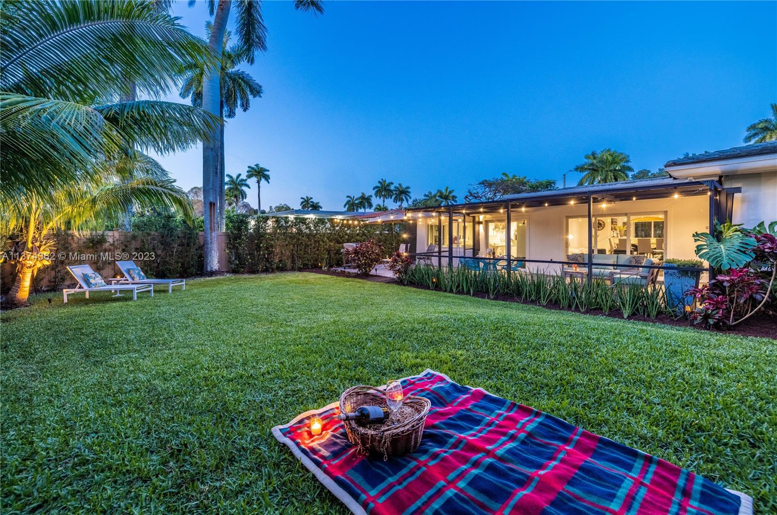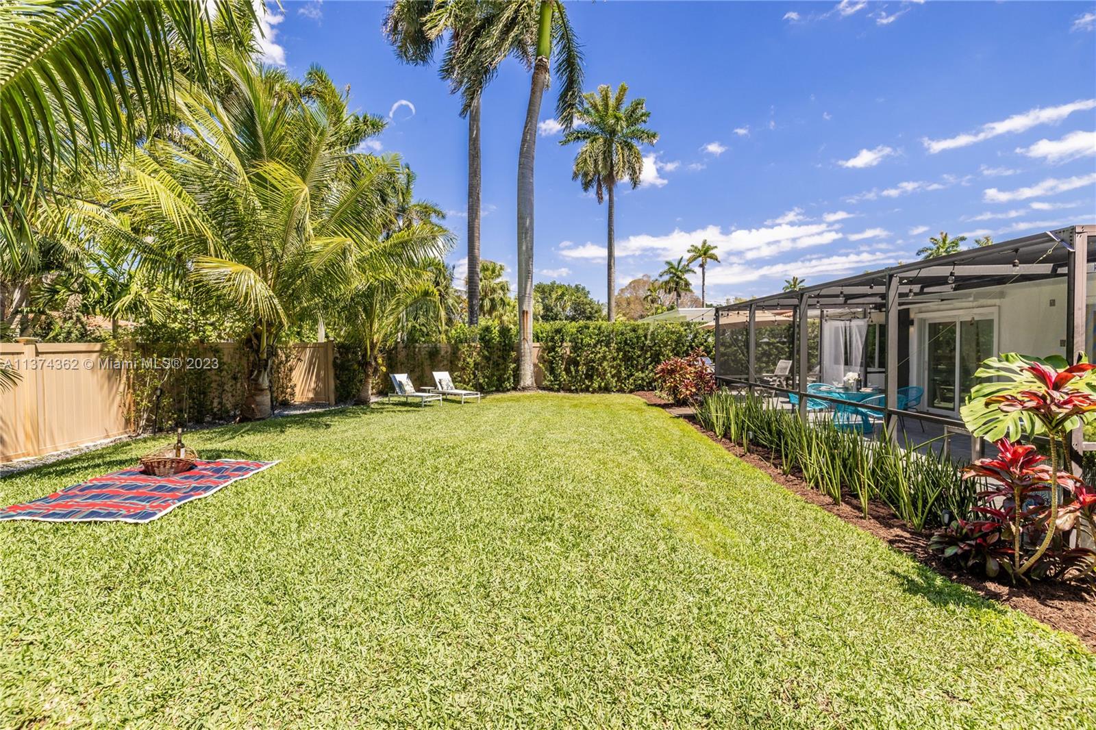 Welcome to Las Palmas! Modern luxurious finishes await you at this beautifully-updated Miami Shores Mid-Century Modern tropical oasis. Enter into light and bright wide open multiple living and dining areas, leading to the grand “live-in” kitchen with a huge eat-in island, a professional grade refrigerator, and two dishwashers for easy entertaining. Three spacious bedrooms including the main en-suite retreat, plus a bonus room perfect as den, office, home gym or 4th guest bedroom. Exit sliding doors to the rear screened porch, open BBQ patio, and lush rolling greens with room for a pool. Carefree living with newer roof, impact windows-doors, updated electric, wood tile plank floors, designer kitchen and baths, plus garage and plenty of guest parking. Come live the good life under the palms!