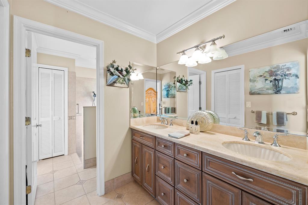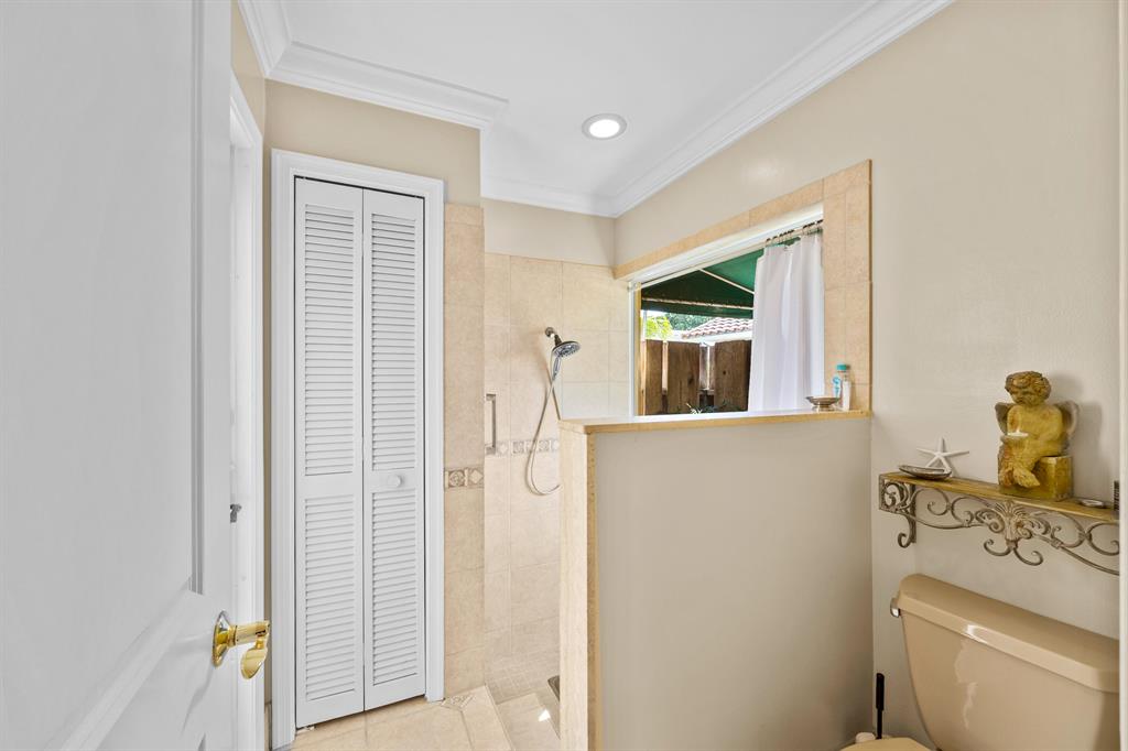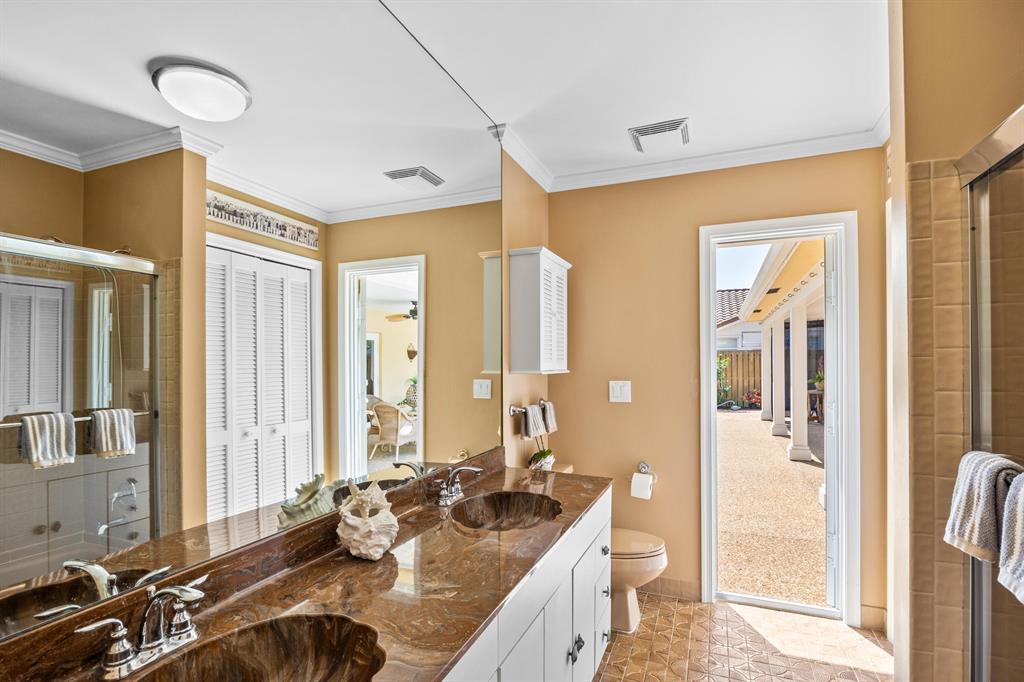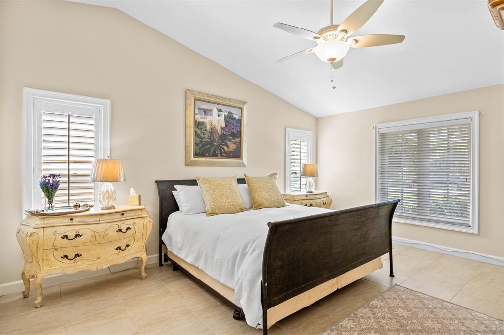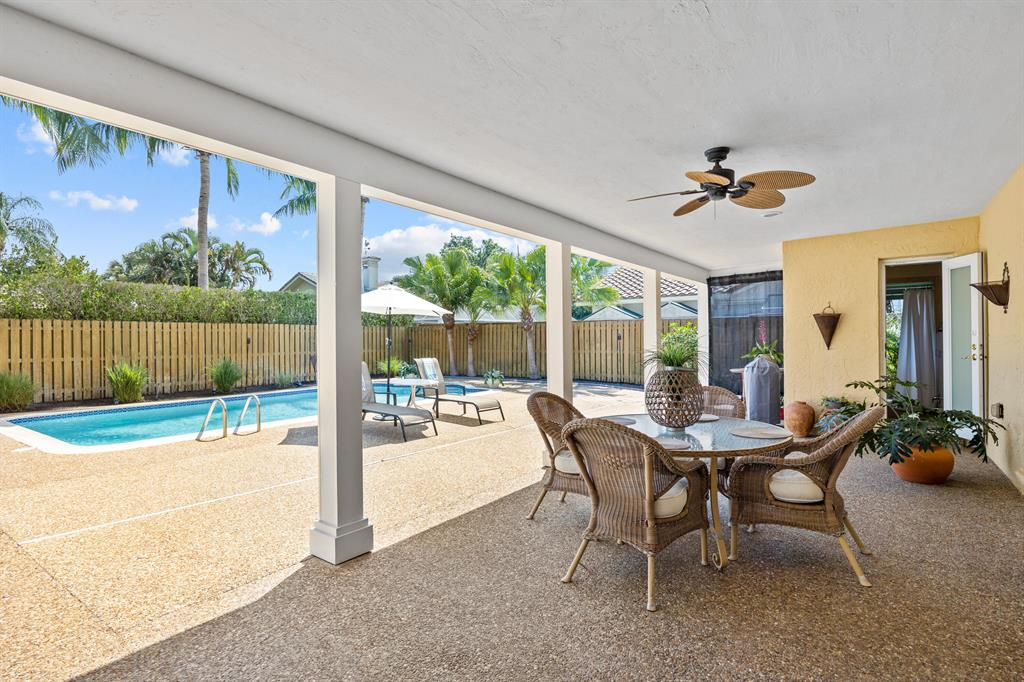 This 4-bedroom and 2-bath home is a must-see! It is beautifully maintained and conveniently located in the desirable community of Camino Lakes in East Boca Raton. This home offers a sunny, bright and spacious split floor plan. 2 cabana bath and french doors in living room and dining room access leading out to a covered patio and a large fenced in yard with a pool. Vaulted ceilings throughout the family room, dining and kitchen area. The master suite also features vaulted ceilings, beautiful trimming and molding finishes throughout. The master bath has a dual sink vanity, walk in closet and a step down shower. All bedrooms have custom wooden plantation shutters. Porcelain tile floors throughout the home. The entire house has a Culligan filtered water softener system.
