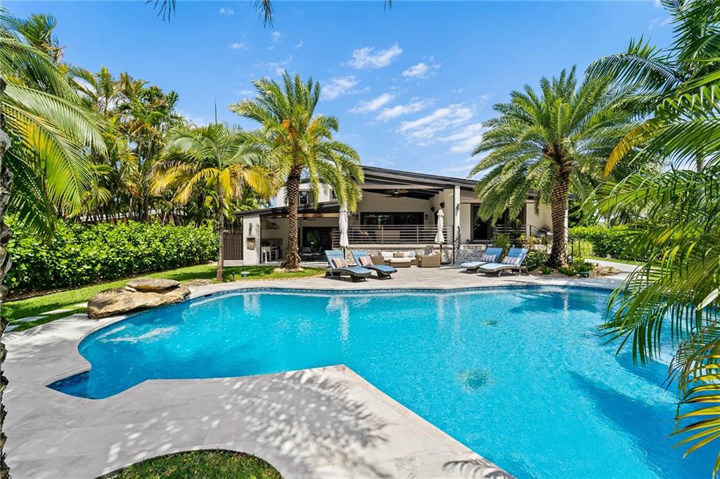 Rarely does a point lot of this magnitude & quality come to market. The quarter-acre property features 176 feet of new dockage, deep-water ocean access with no fixed bridges, and two water and electric pedestals on the dock. The heated saltwater resort pool & patio area creates an outdoor oasis for entertaining and relaxation. Outdoor features include an outdoor summer kitchen, bathroom, marble and porcelain stone throughout, fans, bose outdoor speakers, and retractable screens. In 2007 the home was gut renovated & in 2022 underwent a 600sf indoor addition to create a dreamy primary suite and 820sf covered outdoor area for true outdoor living. All construction was permitted and built with the highest quality materials and craftsmanship, with no expense spared. Not in a flood zone.