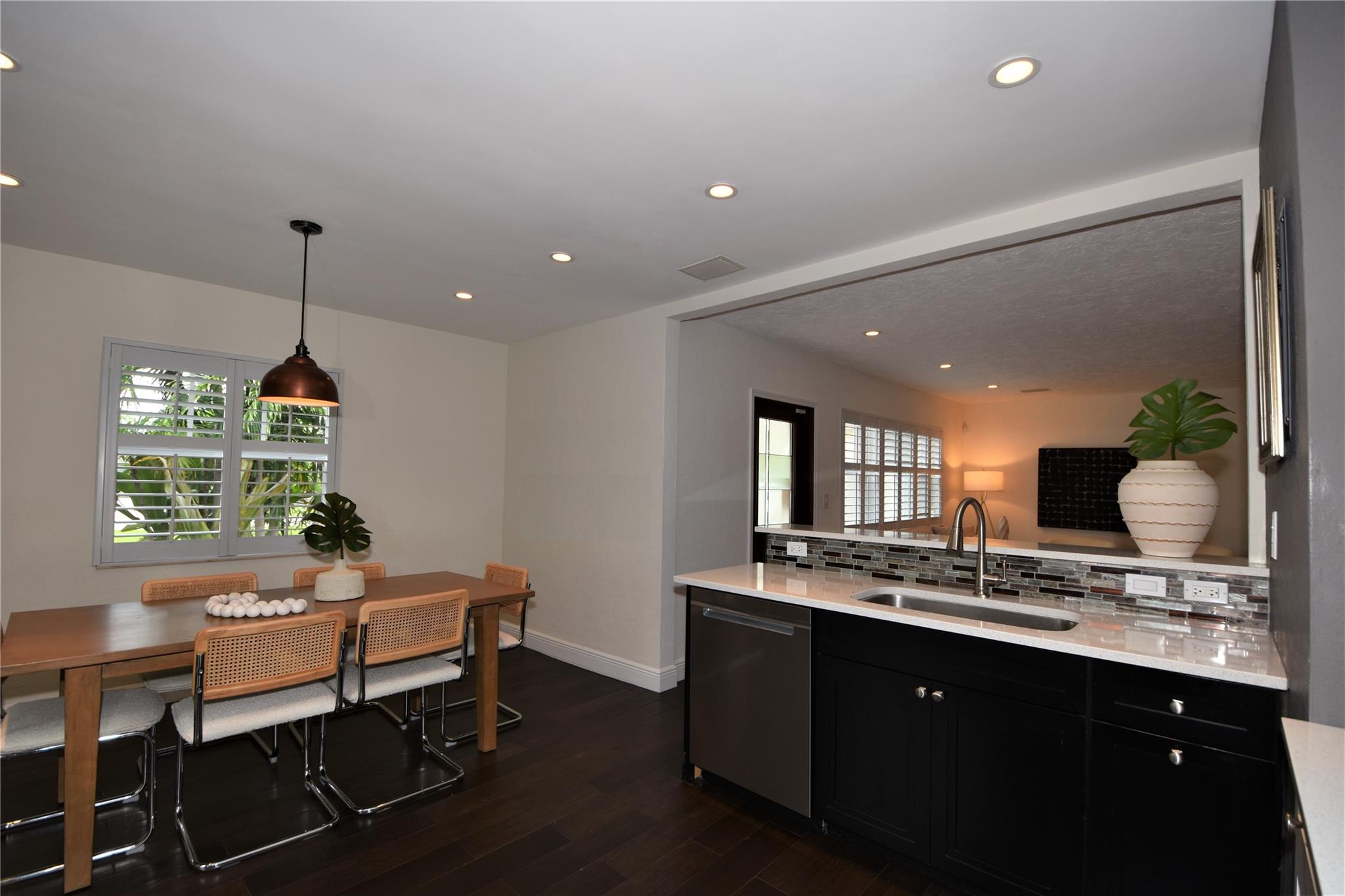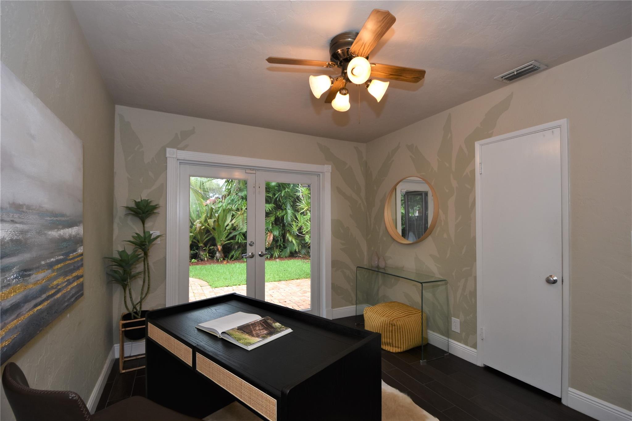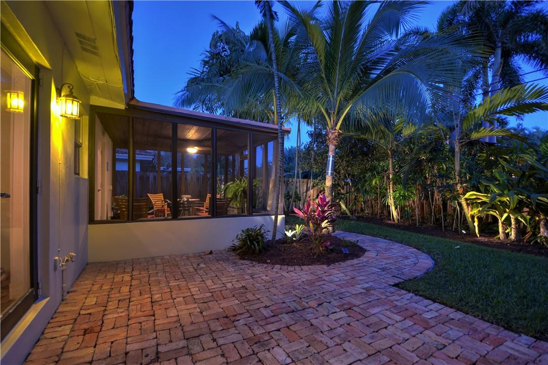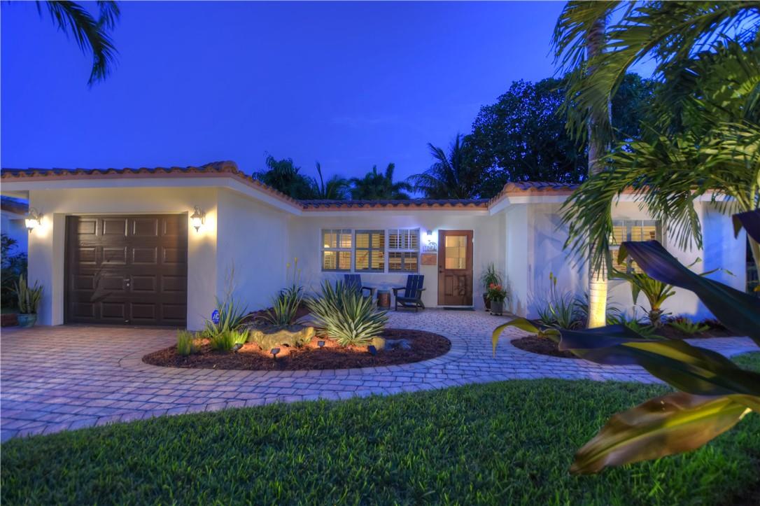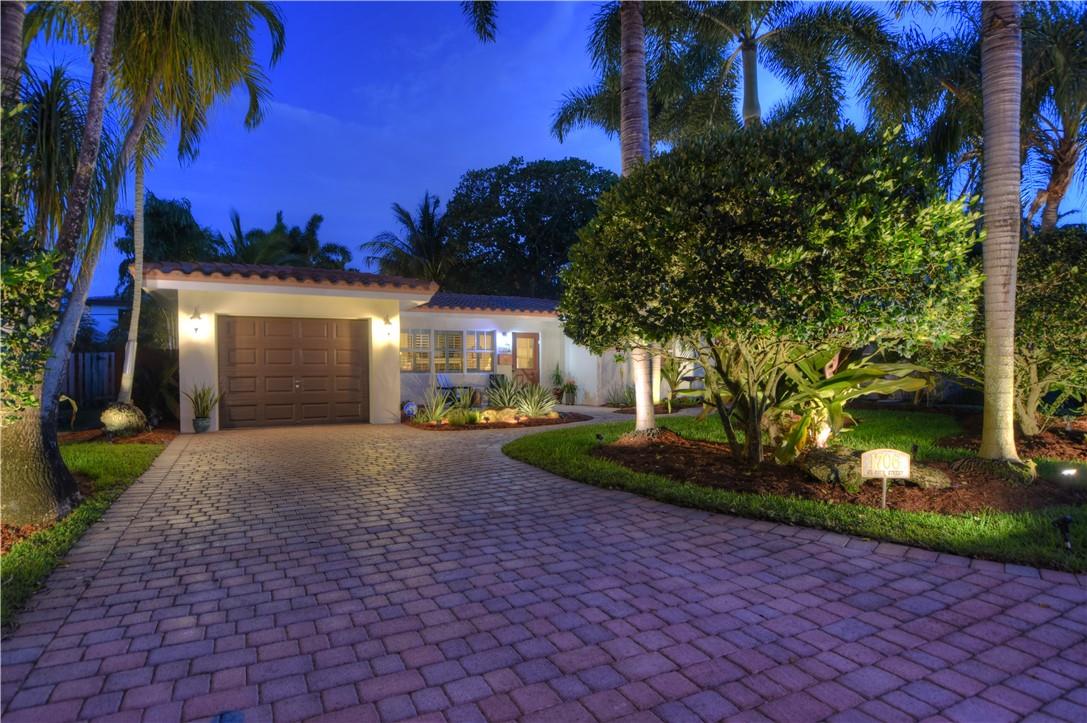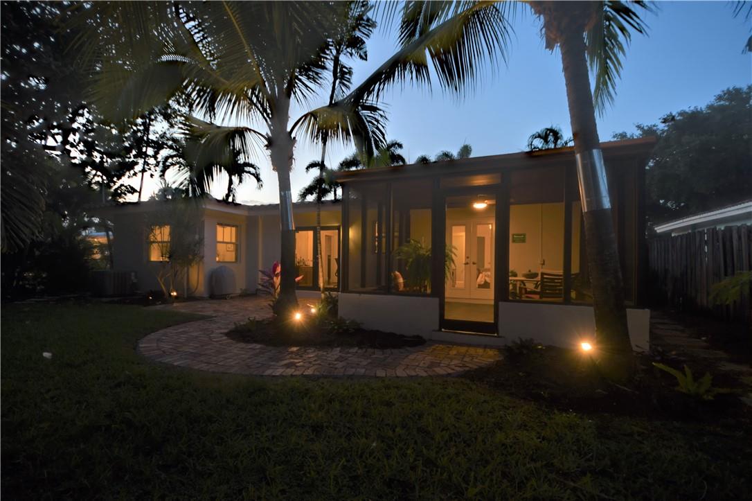 This updated home is located on a quiet, tree-lined street in beautiful Poinsettia Heights just blocks from the action of Wilton Manors, fabulous restaurants and aquatic fun on the river. Both the interior & exterior of the home is tastefully designed! This home features an open floor plan w/ a spacious kitchen overlooking the dining and living area w/ a decorative vintage fireplace. The kitchen features Martha Stewart cabinets, stainless steel appliances and quartz countertops. This home is nestled among fruit & native Florida trees, professionally landscaped & beautifully lit at night. The primary bedroom has French doors to a wonderful screened patio in the lush tropical backyard. The home also features a tankless water heater, newer appliances, & HVAC system. Pool plans are available.