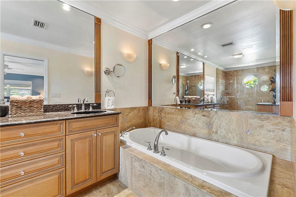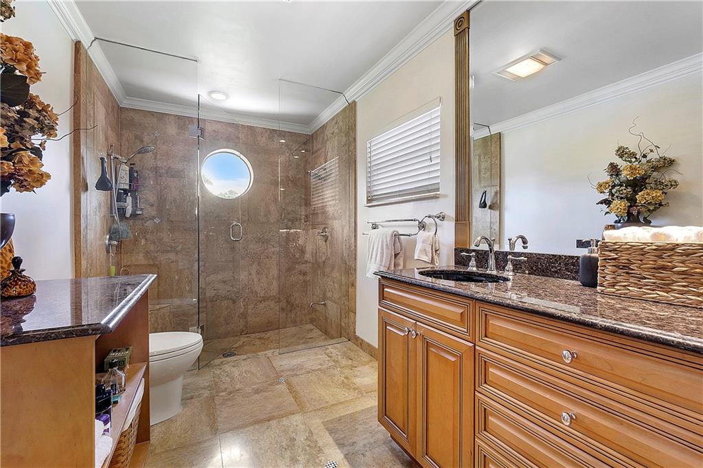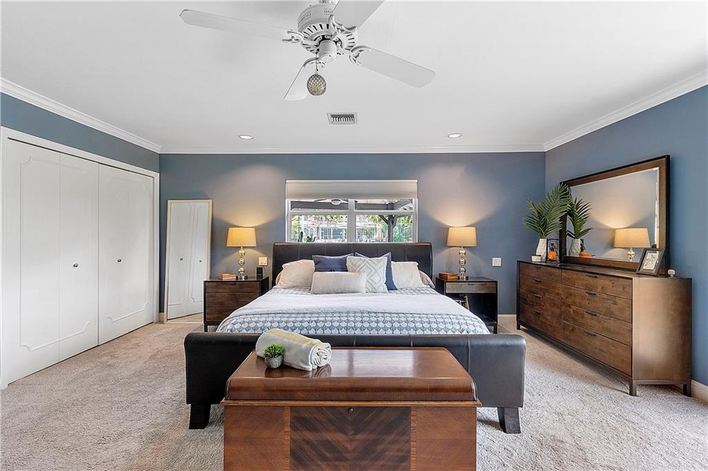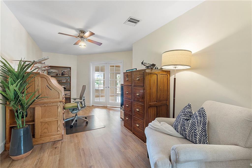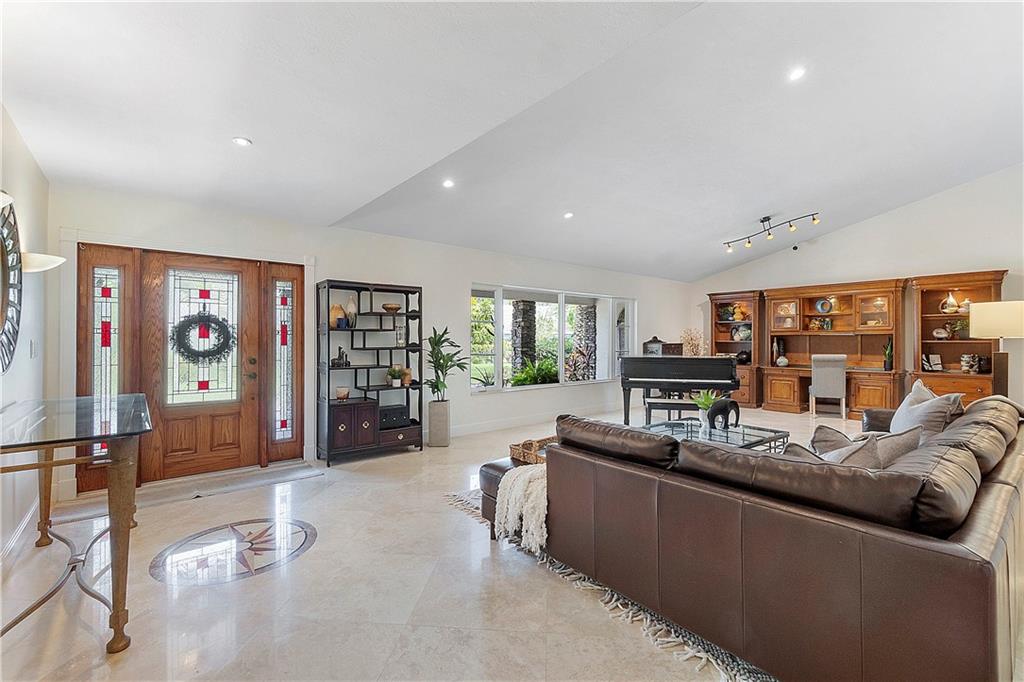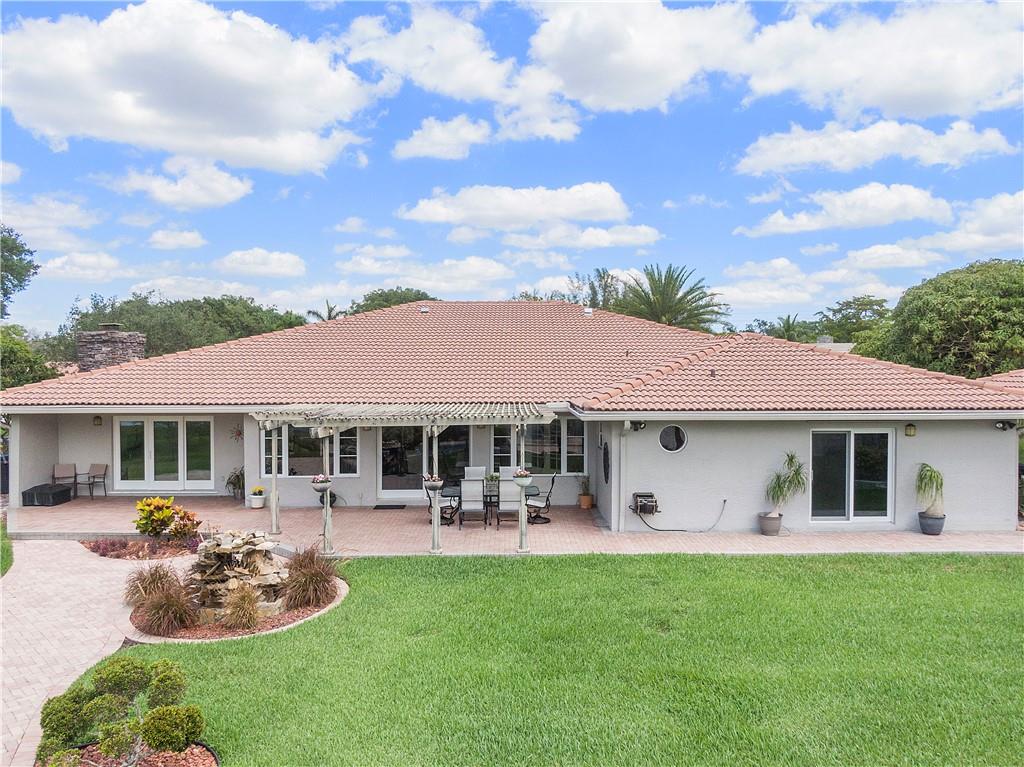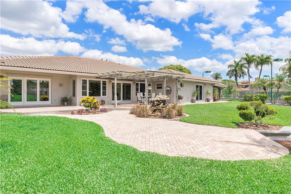 Waterfront estate sits on 1.5 Acres in no HOA community- private tennis court! Impact windows & hip roof for optimal insurance savings, gourmet kitchen with adjoining Sunroom, & an office that can serve as a den or 5th bedroom. Remaining bedrooms stacked away from common areas- with 2 guestrooms, positioned at the front of the home, and sharing a Jack & Jill bathroom. Cabana bathroom leads out to a shaded gazebo, fruit trees, & private tennis court; it flanks a 3rd guestroom. The primary bedroom offers water views & ample closets. The primary bathroom boast a double vanity, large shower, & separate soaking tub. The backyard is fenced, allowing easy enjoyment of the manicured grounds. Whether kayaking the lake, lounging poolside, or hosting sunset parties this property is sure to "Wow!"