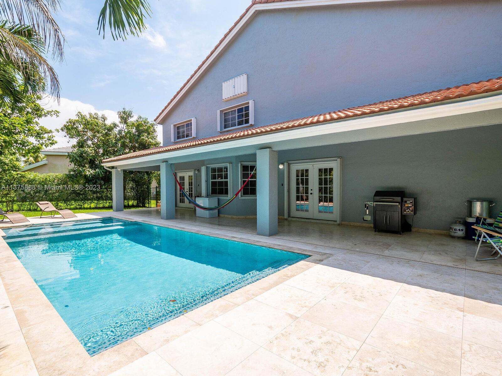 Single family 4br/3ba in Pembroke Pines, FL. 20’ high ceilings. New wood laminated floors, Remodeled Kitchen with majestic quartz island and new SS Appliances. The master bedroom is upstairs, featuring a very spacious totally remodeled bath with both shower and tub, it also has a cozy lounge/Bar area with new cabinets and quartz countertop with access to an inside balcony overlooking the foyer. Upstairs also twin bedrooms which share a full bathroom, with a double vanity and a separate toilet area. 3 car garage with high quality cabinets all around it, with quartz countertops an plenty of space for storage. The laundry area has plenty of cabinets including quartz countertop. Newer Roof with concrete tile. Accordion Hurricane Shutters. Patio with newer pool and many mango and avocado tree