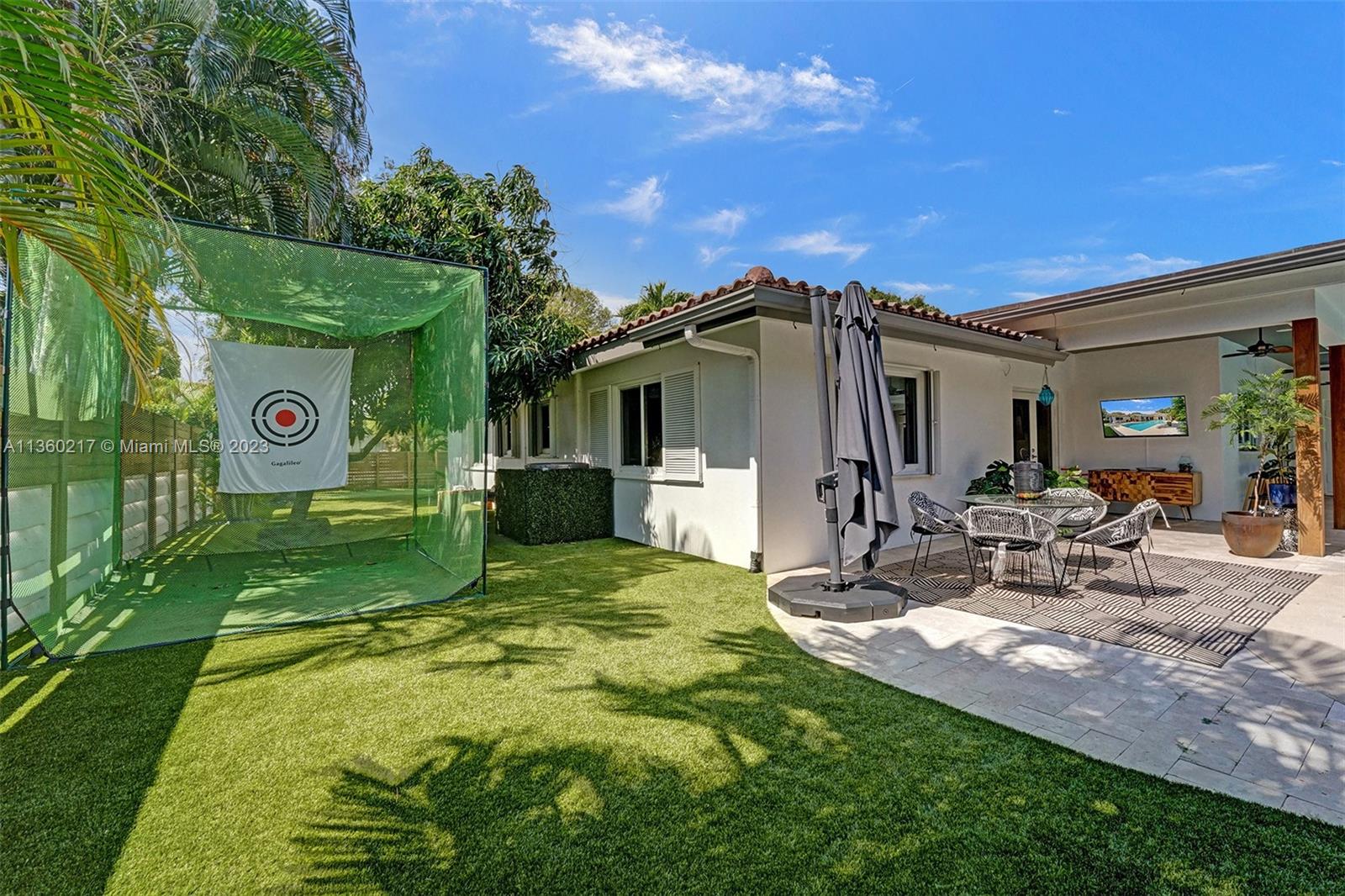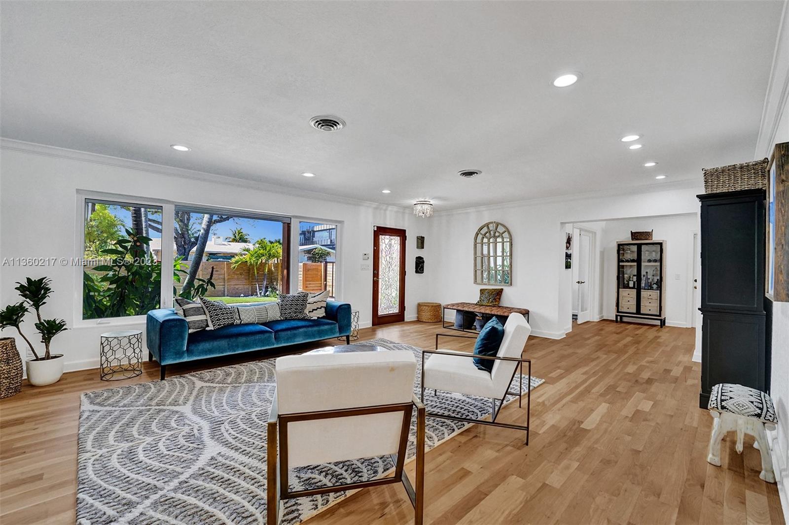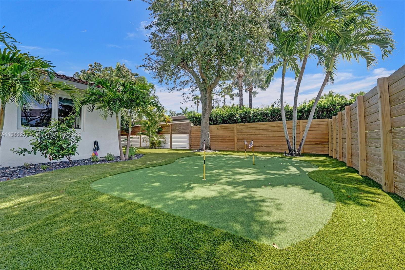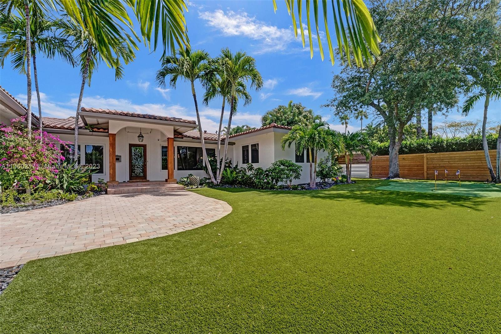 A pristinely located estate w/large private paradise wraps entire property. Interior boasts refinished white oak wood floors and recessed lighting throughout. Chef’s kitchen w/slow-close Italian cabinets, quartzite counters, JennAir appliances + bar. Family room w/travertine marble gas fireplace! Master bed w/pool access, walk-in + en suite w/steam shower + expansive vanity. 2 large guest bedrooms, 4th bed is office! Massive bonus playroom/den w/volume ceiling. 2 new HVACs, new electric panel (’21), whole-house generator and H2O filtration system. Tropical landscaping, heated saltwater pool, covered patio, cabana, putting green and expansive artificial turf, Impact windows & doors. Walk to Ocean, Publix, Galleria Mall, Capital Grille, Starbucks, George English Park and Birch State Park.