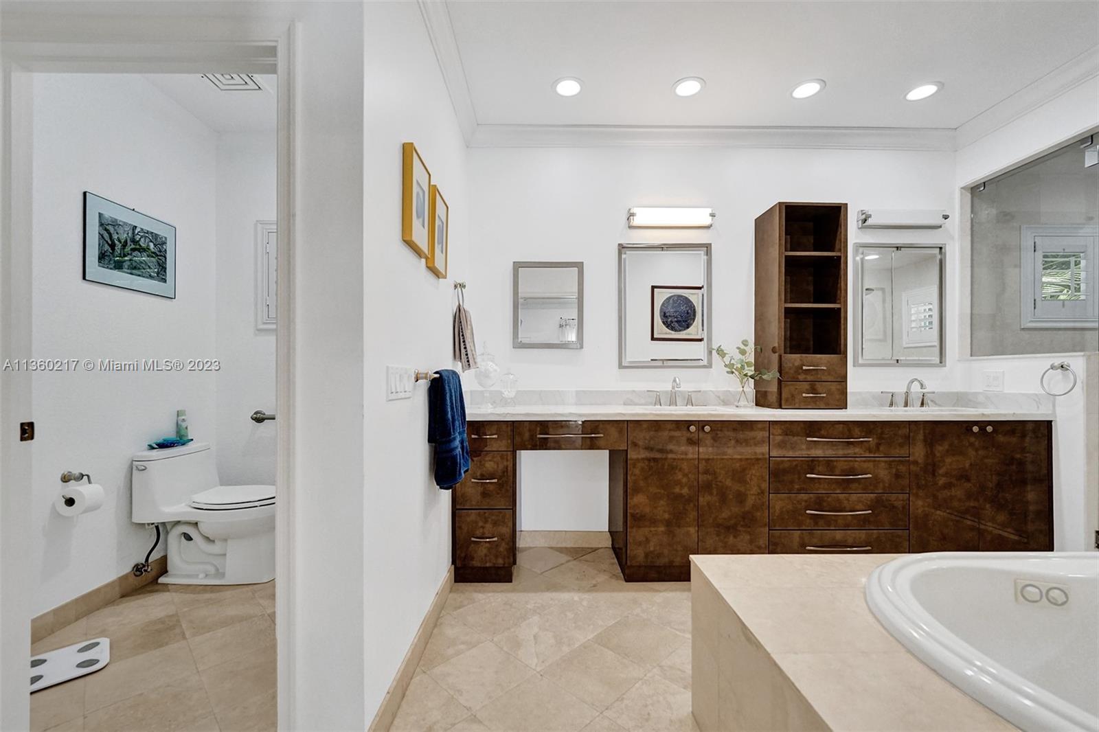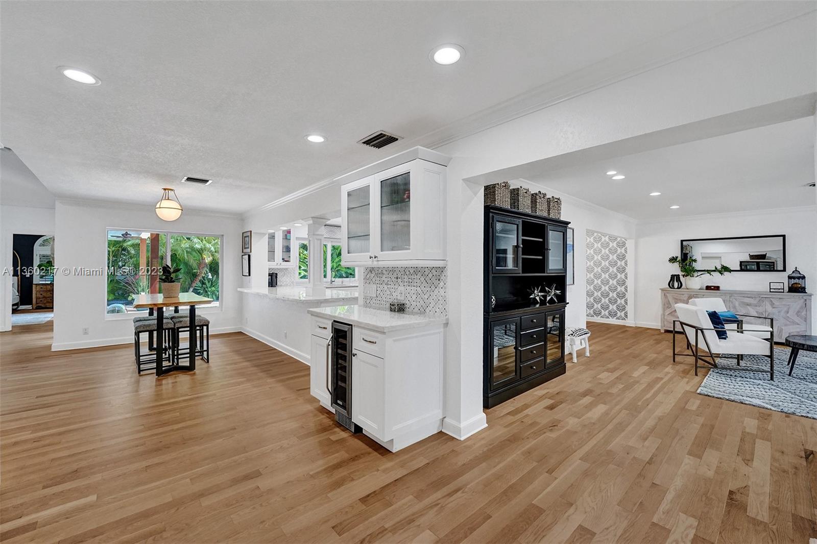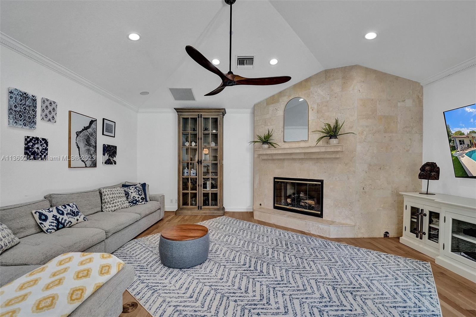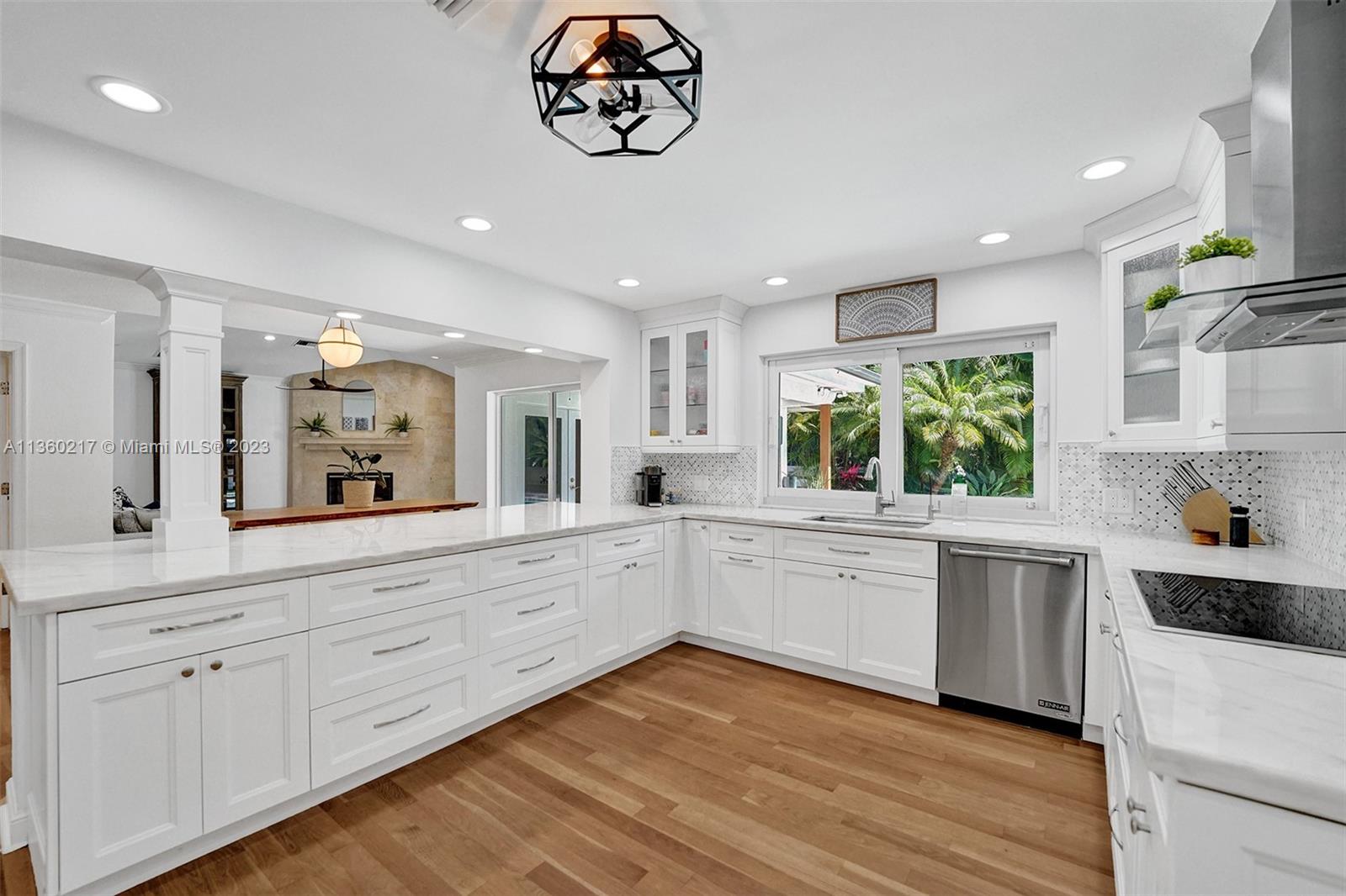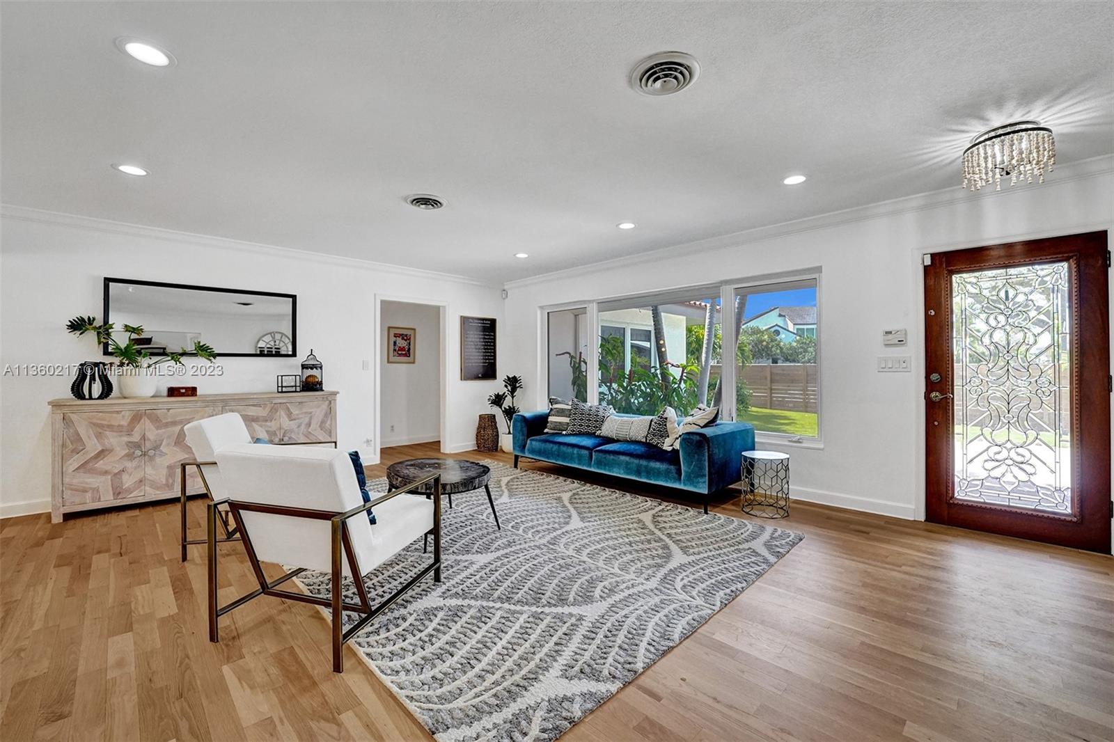 A pristinely located estate w/large private paradise wraps entire property. Interior boasts refinished white oak wood floors and recessed lighting throughout. Chef’s kitchen w/slow-close Italian cabinets, quartzite counters, JennAir appliances + bar. Family room w/travertine marble gas fireplace! Master bed w/pool access, walk-in + en suite w/steam shower + expansive vanity. 2 large guest bedrooms, 4th bed is office! Massive bonus playroom/den w/volume ceiling. 2 new HVACs, new electric panel (’21), whole-house generator and H2O filtration system. Tropical landscaping, heated saltwater pool, covered patio, cabana, putting green and expansive artificial turf, Impact windows & doors. Walk to Ocean, Publix, Galleria Mall, Capital Grille, Starbucks, George English Park and Birch State Park.