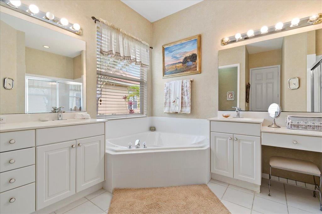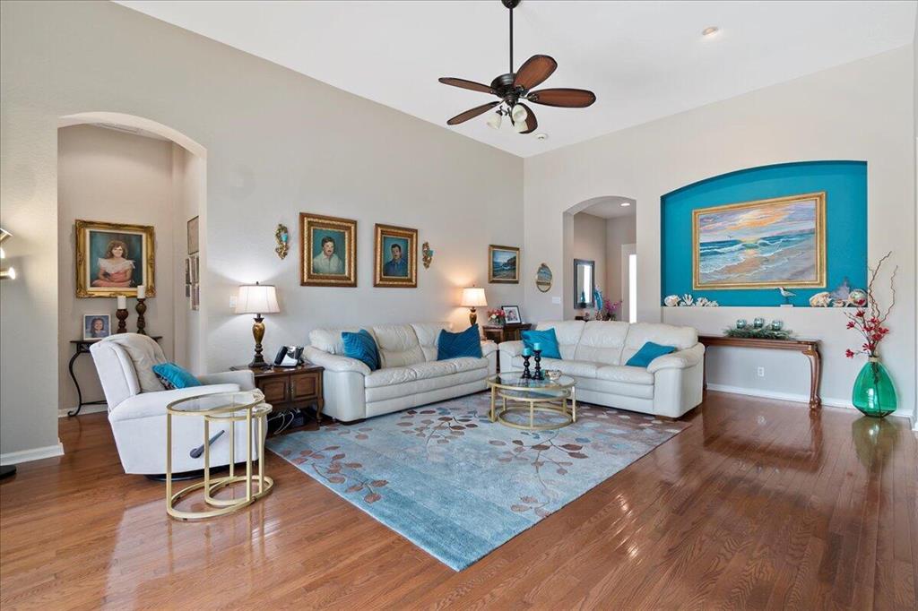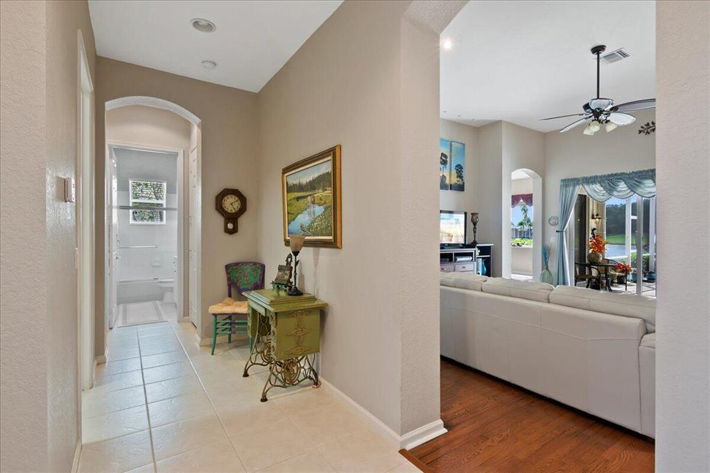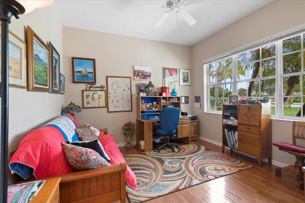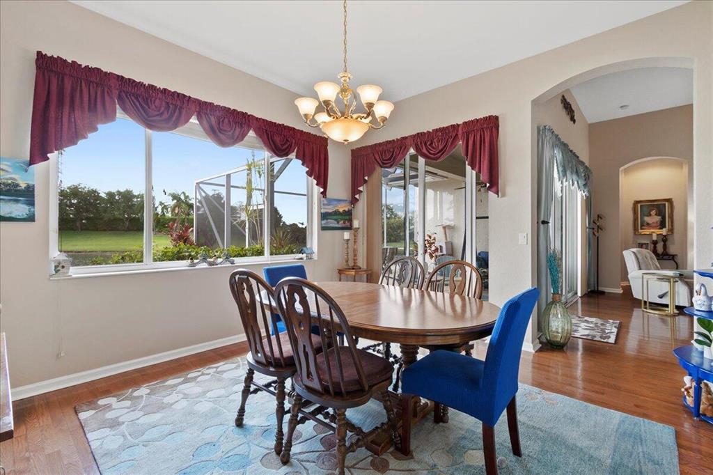 Paradise awaits ! Nestled on a quiet cul-de-sac, this charming home offers a breathtaking and private view of the lake. Insideyou'll be greeted by lovely hardwood floors that flow throughout the living room, dining room, and den.The kitchen features a pantry and a cozy dining area, and a formal dining room. The spacious master suite has a view of the lake & boasts his and her walk-in closets, dual sinks, and a luxurious garden tub. The office could easily be turned into a guest room by adding a small closet. There is also a utility room with a sink, washer, and dryer, and a garage with built-in cabinets and a workbench, providing ample storage for your needs. The screened back porch is the perfect place to relax and enjoy Florida living at it's finest . Watch he sunset from your backyard.