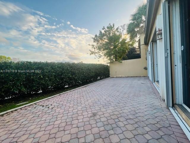Opportunity Knocks! Finally what you been waiting for... Unique opportunity to acquire a very spacious one story Villa in the prestigious community of Doral Cove with full access to the exclusive Doral Park Golf and Country Club. Quaint gated small community with only 54 homes, walking distance to A+ rated schools, malls and major highways. Open and inviting since the moment you enter this corner unit with 3 bed/2 baths and access to huge paved backyard adjacent to the Golf Court and very open concept. Garage converted can be converted back. Partially furnished and accordion shuttered all around. Master with shower and jacuzzi tub. This is a short sale and is contingent to bank approval.