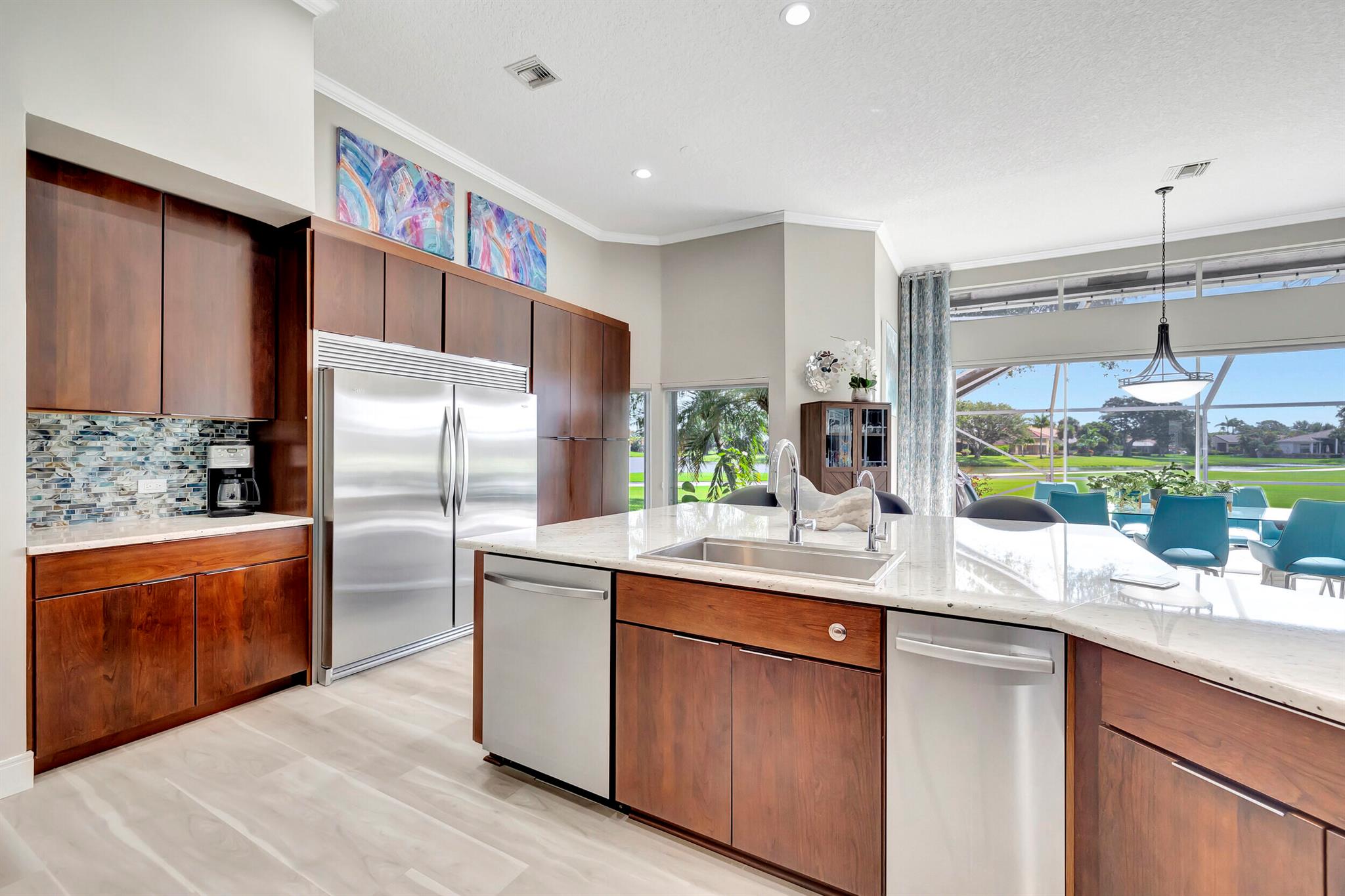 Beautifully updated 3 Bed/4 Bath home plus dedicated home office. Lovely views of the immaculately manicured golf course and TWO lakes. Perfect indoor/outdoor living aside your in-ground swimming pool. Covered lanai space for outdoor dining and even a separate enclosed patio for your guests.. Enjoy your high end chef's kitchen boasting SS appliances, tons of counter space, eat-in dining set perfectly within your open concept living and dining rooms, including a butler's pantry with storage and additional fridge. You have just found your dream home and country club lifestyle. Stonebridge CC is a mandatory membership country club.