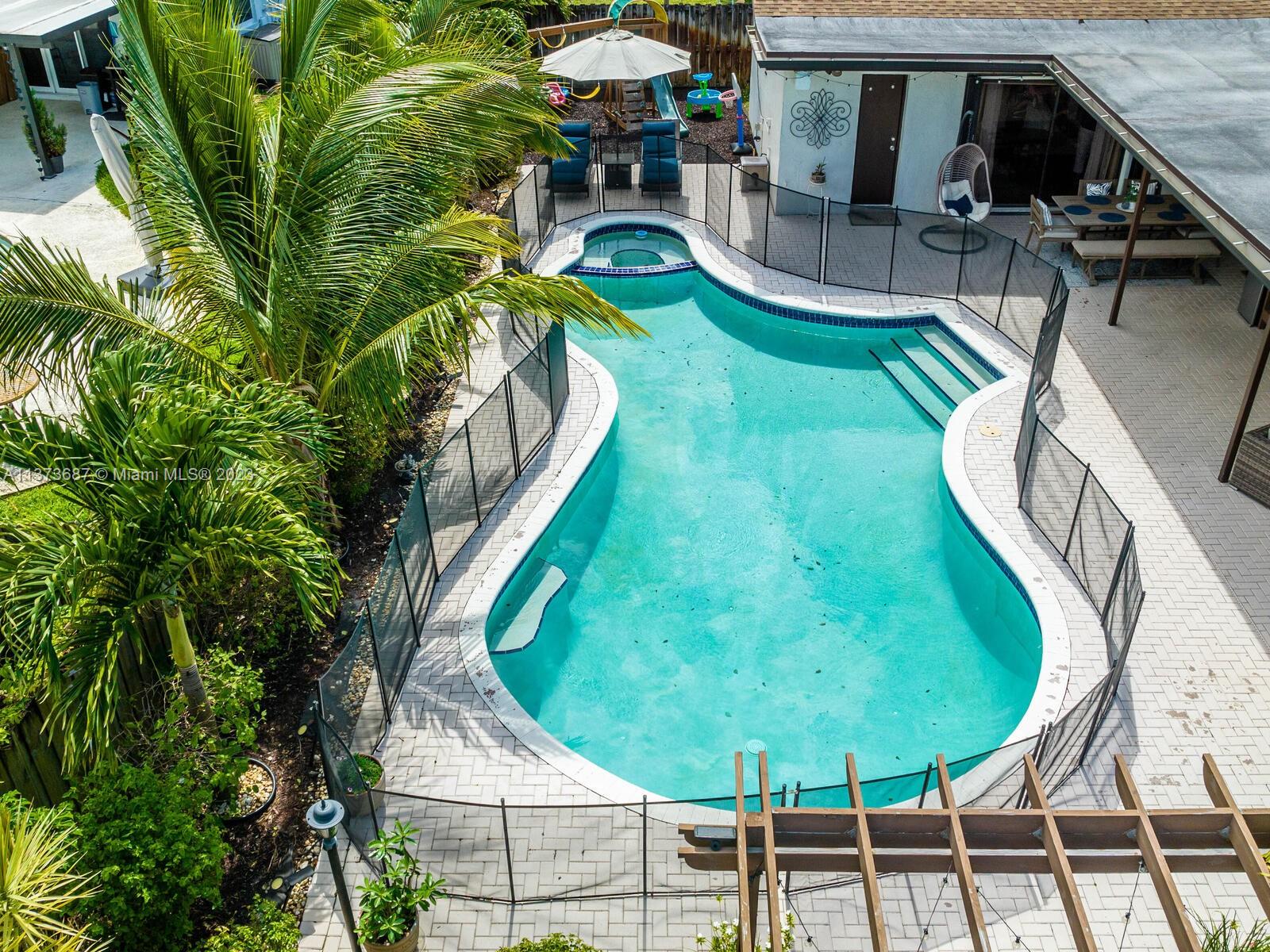 This highly sought after Pembroke Lakes Pool Home has been meticulously cared for. Impact windows in the front of the house with accordion shutters in the back & sides. Granite countertops & backsplash in the kitchen, newly remodeled bathrooms. Plenty of parking in the large circular driveway. Enjoy your oversized covered patio with family & friends. Plenty of room for fun in the pool, spa or just relaxing. Garage was converted by developer and is up to code. No HOA with close proximity to great schools This contemporary open concept gem of a home will not last. Schedule your showing today!
