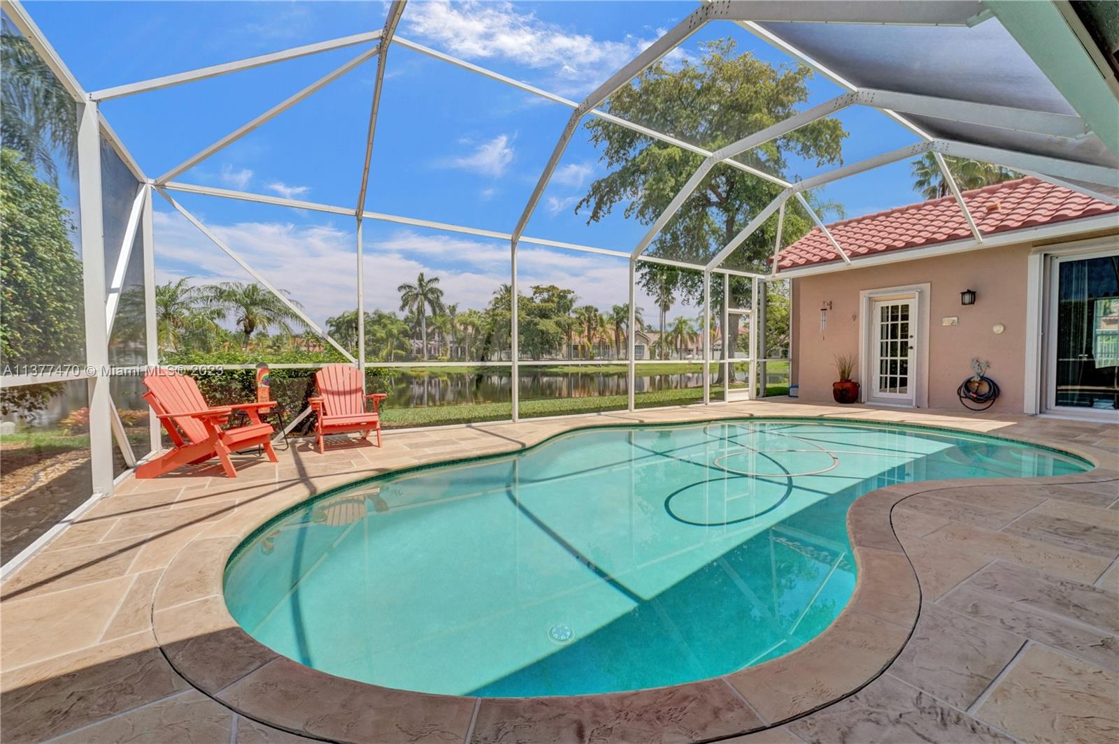Situated in the small and quaint enclave of Laguna Springs II, this home's character exudes elegance and comfort. Popular Estancia model offering a comfortable layout & room to spare, features a bright interior, high ceilings, plenty of windows and sliding doors. Lower level primary suite with ample closet space and elegant ensuite bathroom with a view. Formal dining w/access to courtyard. Charming kitchen with stone counters and plenty of storage, flexible living/work space and laundry room. Meticulously kept, key updates including cosmetic, functional and structural components. Direct views of waterfront from the screened lanai & free form heated pool. Addl features incl accordion shutters and new breaker panel. Unbeatable location, within close proximity to schools, parks and shopping.