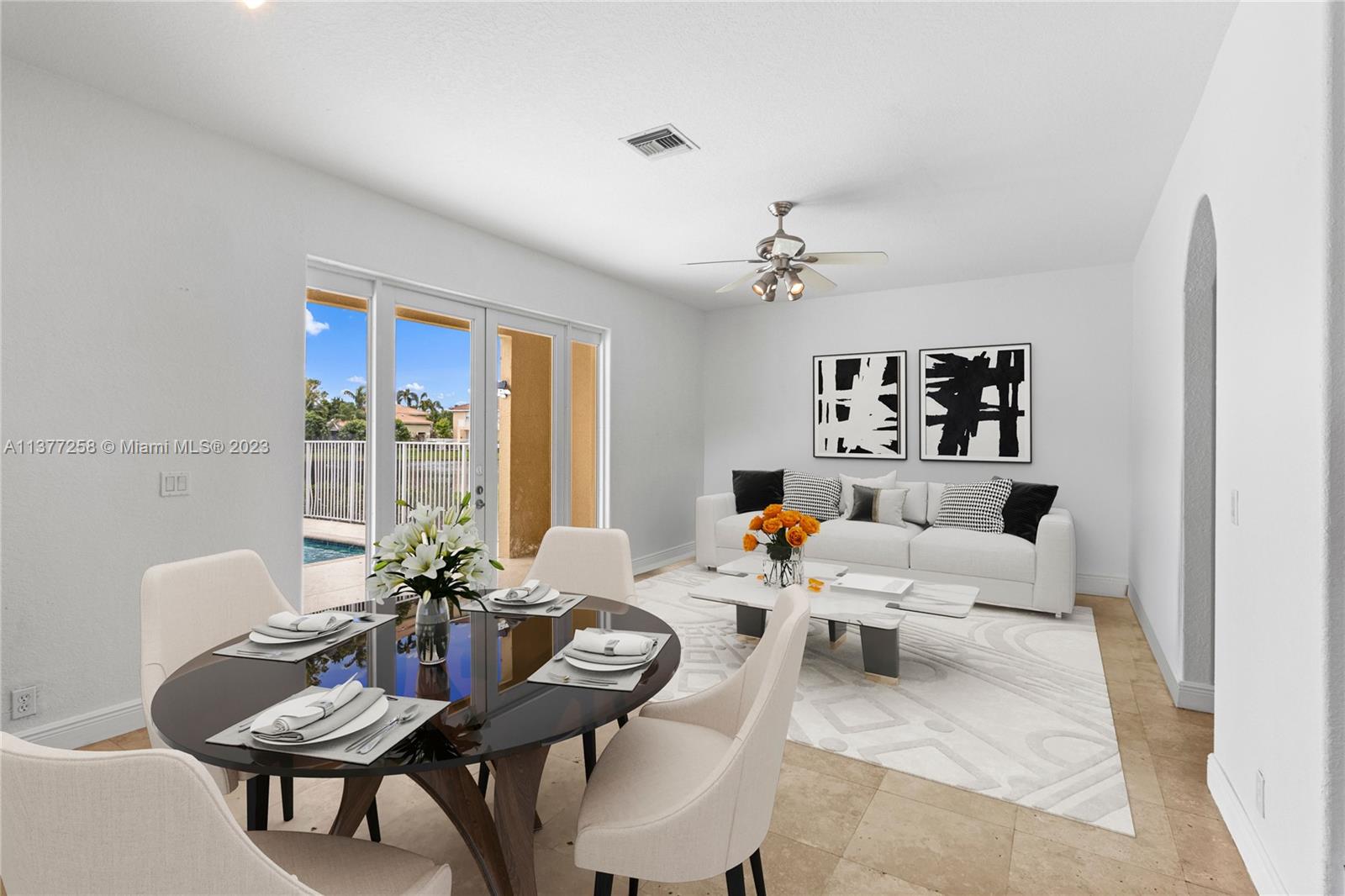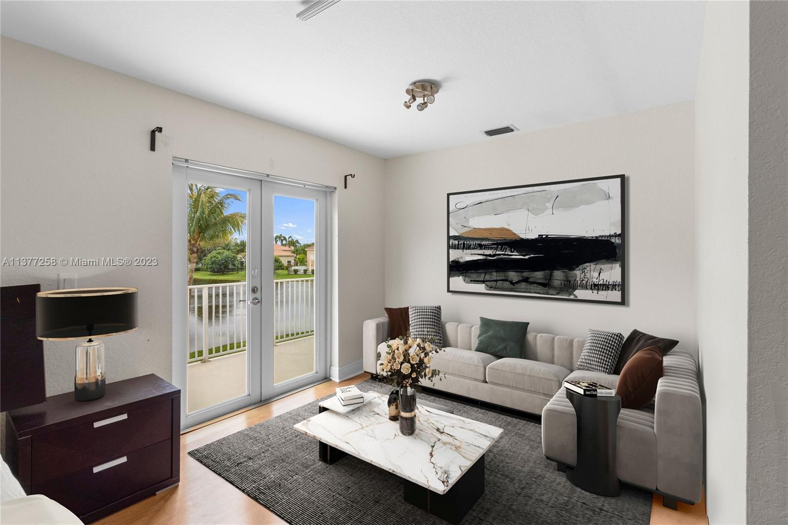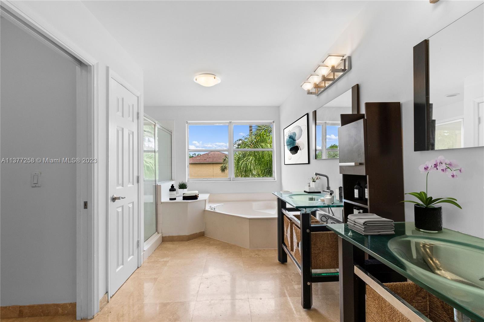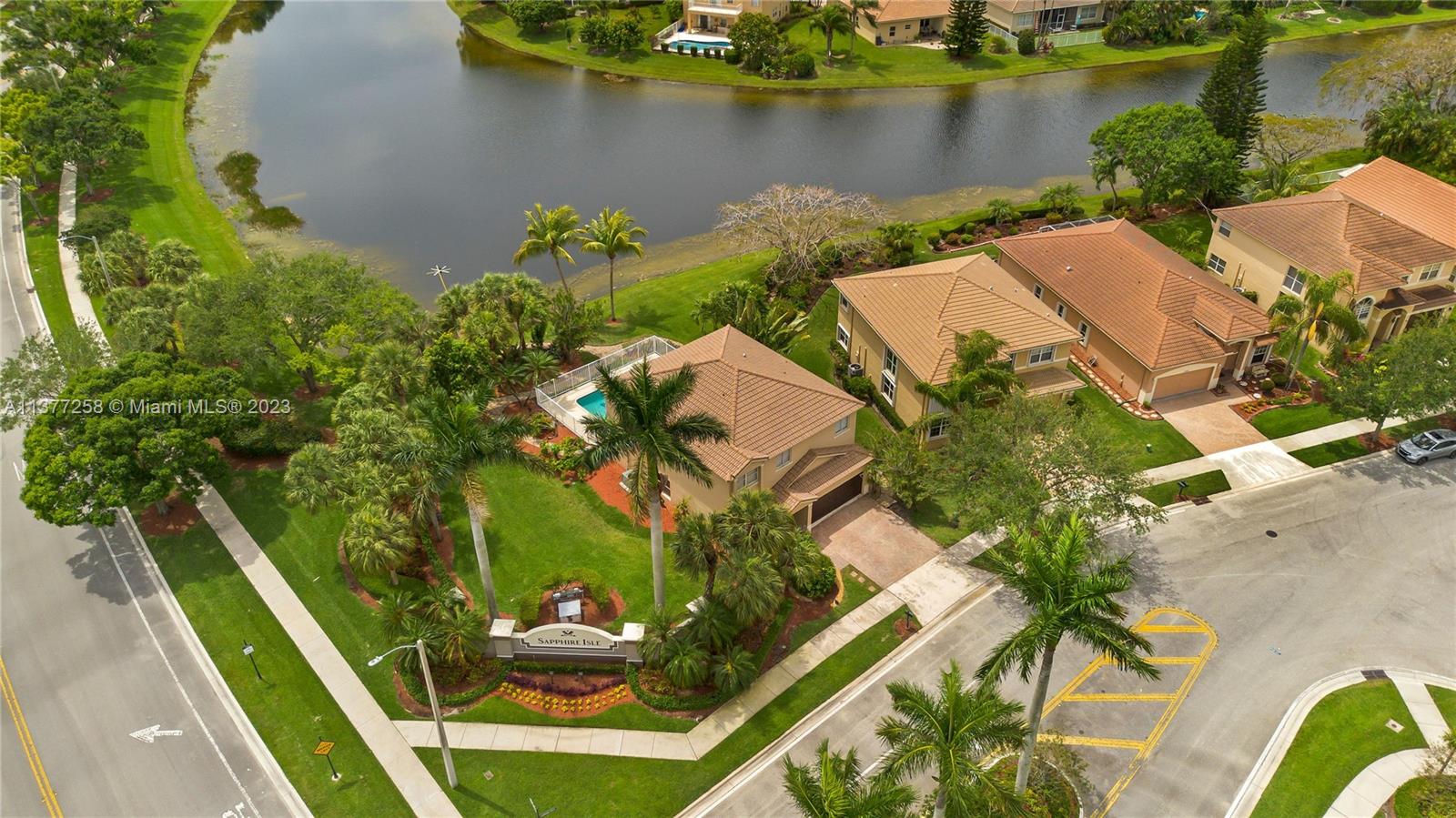 Best buy in Weston! Spectacular pool, lagoon & garden views abound from this two story 4 bedroom, 2.5 bath home located at Sapphire Isle in the Emerald Estates community. Features include updated kitchen & baths, marble floors downstairs & wood floors upstairs. Large primary suite offers sitting area, private balcony overlooking the pool and lagoon plus large walk-in closet & second closet, spacious primary bath includes dual vanities, tub & separate shower. All bedrooms are upstairs. Home is on a large fenced corner lot with meandering walk paths through lush, tropical landscaping. Community amenities include swimming pool, fitness room & playground. Outside the gates is Emerald Estates Public Park w/tennis & basketball courts, picnic pavilions & more. Furnishings are virtually staged.