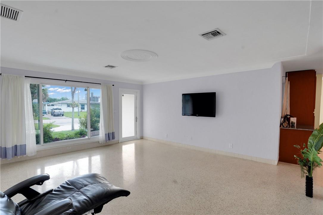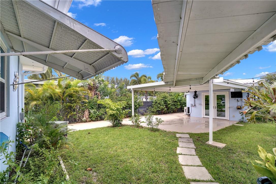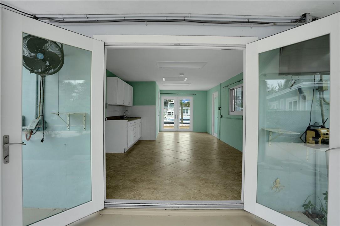 This lovely waterfront, pool home has 3-bedrooms/2 baths with circular drive and an open floor plan. Desirable Terrazzo floors compliment most of the house. There is a private master suite with 2 additional bedrooms. Active AirBnB permit for the 1-bedroom guest cottage. Covered patios for indoor/outdoor living. Heated pool with underwater pool light with multiple settings, a built in hot tub with aqua link pool automation on phone app is new in 2022. Blink camera system w remote monitoring. Sound proofing,insulation, impact windows & doors throughout in 2016. New 5 ton AC and AH ducting in 2016. New electrical permitted including mast, panel & power cable into property 2017. New washer w/warranty. New Roof in June 2023. By boat, 30 min to the ICW from new 80 ft dock one 20ft fixed bridge.