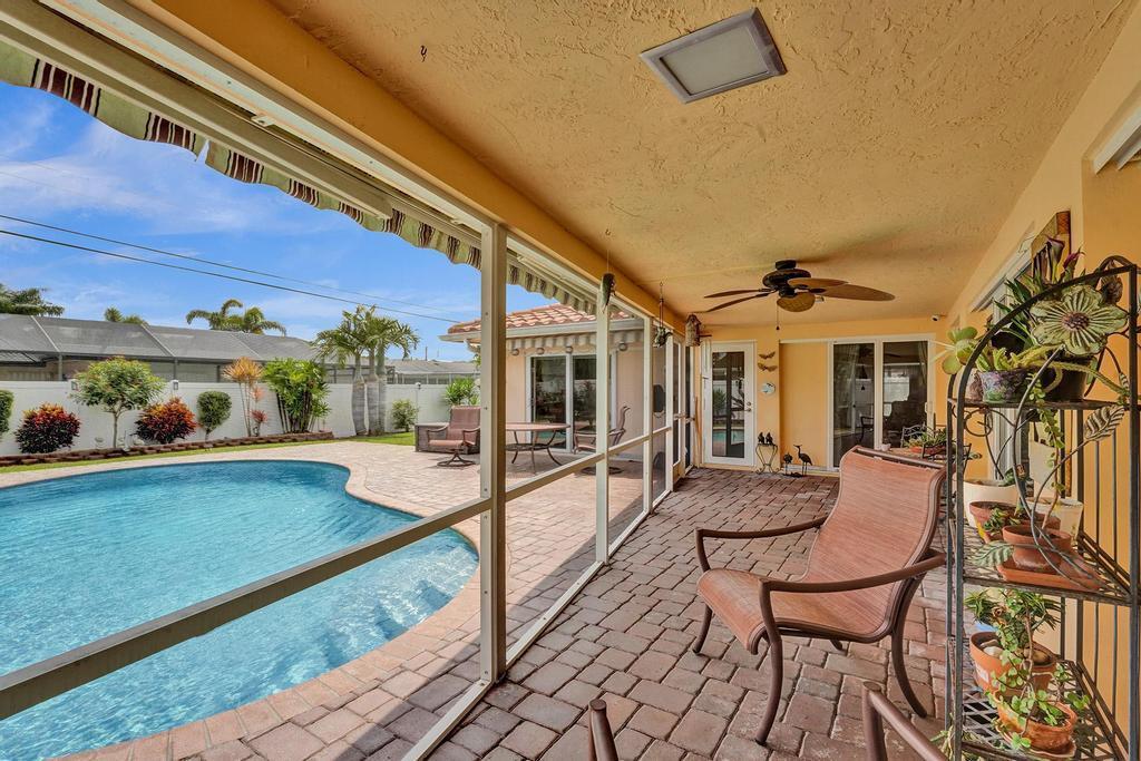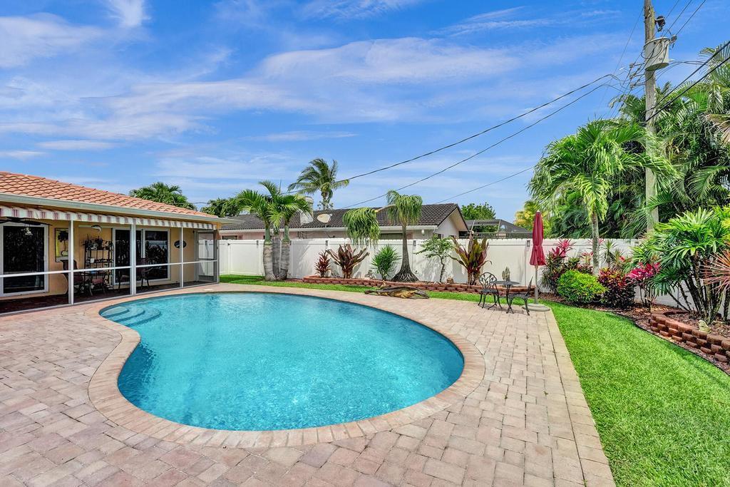 Beautifully maintained 3/2 pool home right in the heart of Boca Raton. This split floor plan shows beautifully w/ tile floors throughout and wood laminate in the bedrooms. Elegant kitchen w/granite counters & glass tile backsplash w/SS appliances. Full impact windows. Roof 2005. Meticulously maintained yard w/white PVC fencing. Package unit 2021 AC. 2008 GE Electric panel. Remodeled master bathroom & a beautiful cabana bathroom leading to large pool & spacious fenced yard. A/C'd laundry room. Large 2-car garage w/impact garage door. Screened patio with retractable awnings. Great home for entertaining. Located in a fantastic neighborhood w/ no HOA fees zoned for A-rated schools, seconds to all that Boca Raton has to offer. Pride of ownership shows at this lovingly maintained Florida home.