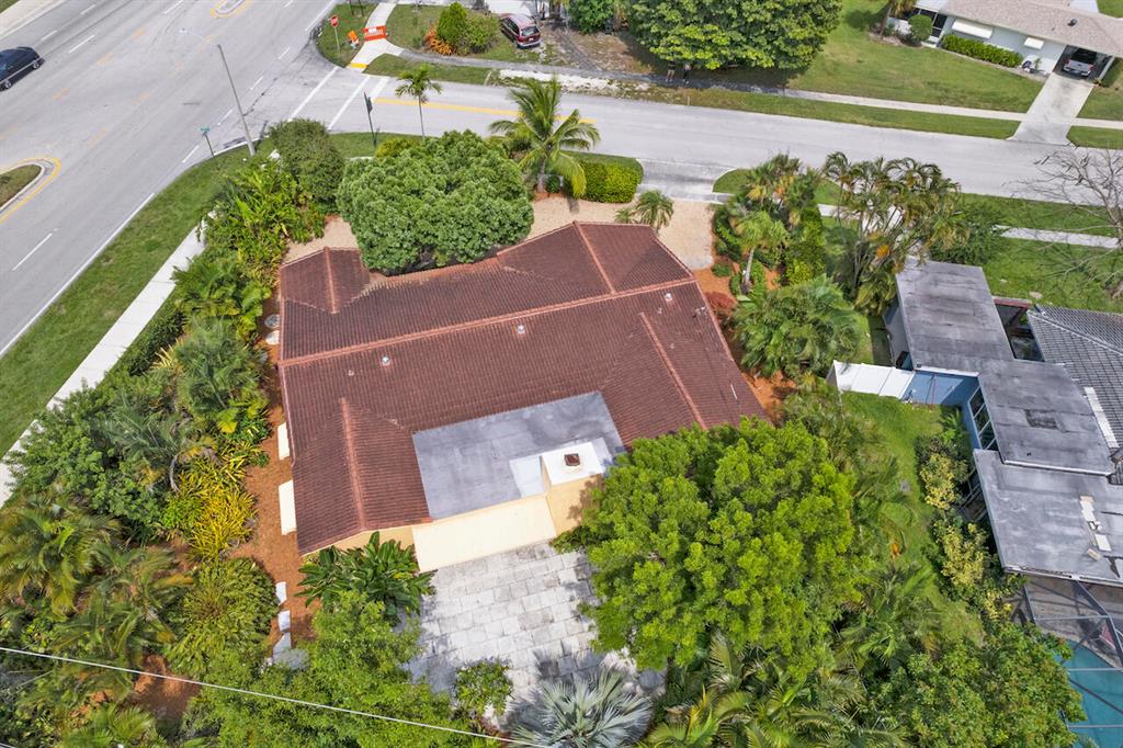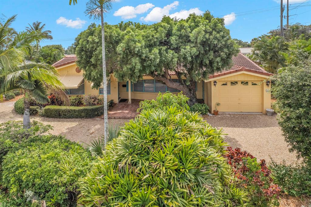 Come check out this tropical oasis of a home surrounded by lush landscaping on an oversized corner lot. Two bedroom & two bathroom with ample space to add third bedroom. Terrazzo flooring throughout that just needs a little TLC to be back to its former glory. Located in top tiered school district. Only 2 miles from the beach!! This home boasts a 1 car garage and a separate laundry room. Spacious bedrooms and bathrooms and large secondary living area with fireplace. Roof was done in 2016. Royal Oak Hills is a beautiful neighborhood close by to shops & restaurants!