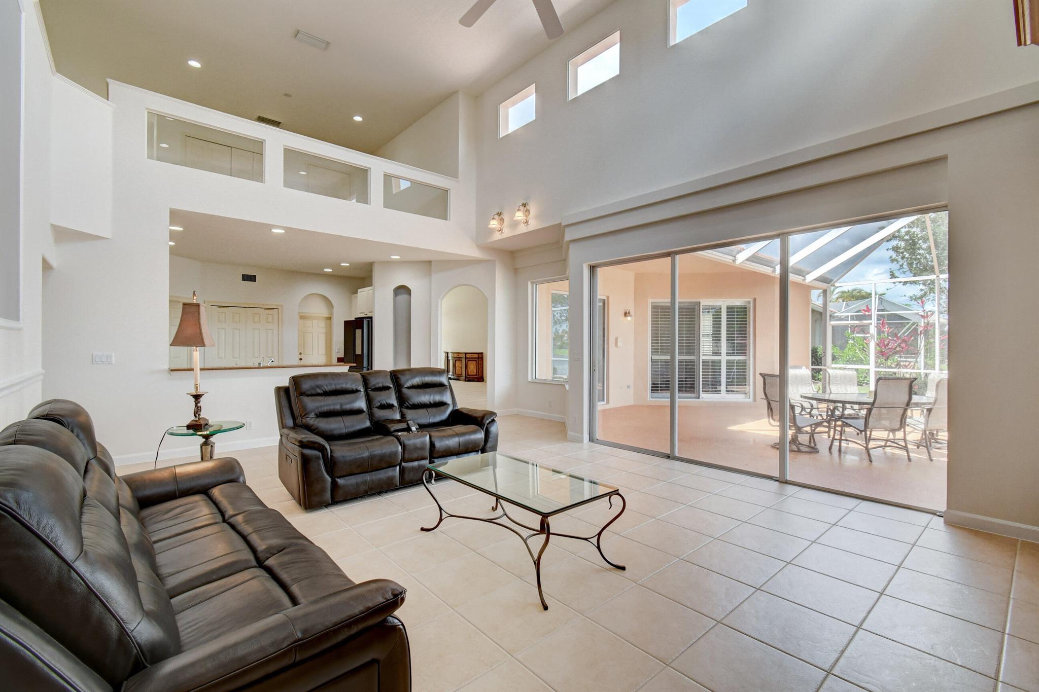 It's all about INDOOR/OUTDOOR LIVING in this spacious Key West model. Lake views are eye-catching, creating a panoramic view. You will surely be the HUB for entertainment with your massive extended 30' x 30' screen enclosure. Sliders in family room pocket into wall bringing the outdoors in. Perfect ambiance for ''Al Fresco Dining.'' Situated on a quiet cul-de-sac, home offers a beautiful streetscape. Brand new front yard sod and freshly planted front landscape bed creates a warm and inviting feel. This well thought out floorplan is so functional perfect for extended families.