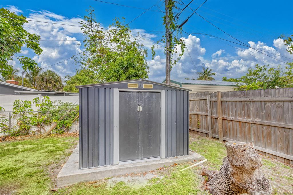Bring your toys & pets! No HOA & no restrictions! Just under 2,100 sq. ft. this huge 5 bedroom 2 bathroom is move in ready. Complete with a new 2022 roof, 2020 a/c, newer windows, 2021 electric panel, 2021 kitchen appliances and complete storm panels. The spacious kitchen has a 9'' breakfast bar and plenty of counter space. The fifth bedroom (converted garage) has a separate entrance perfect for privacy & window A/C to cool. Full size washer (new) & dryer. Enjoy the covered and screened patio in the fenced in backyard & loaded mango tree! Also includes 8x6 metal storage building on concrete pad. Freshly painted in & out! Abundant parking on the oversized driveway. The neighborhood is central to many stores and restaurants, highways, and the PBI airport. Owner is motivated!