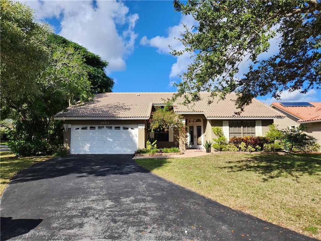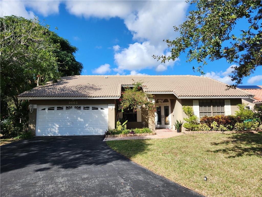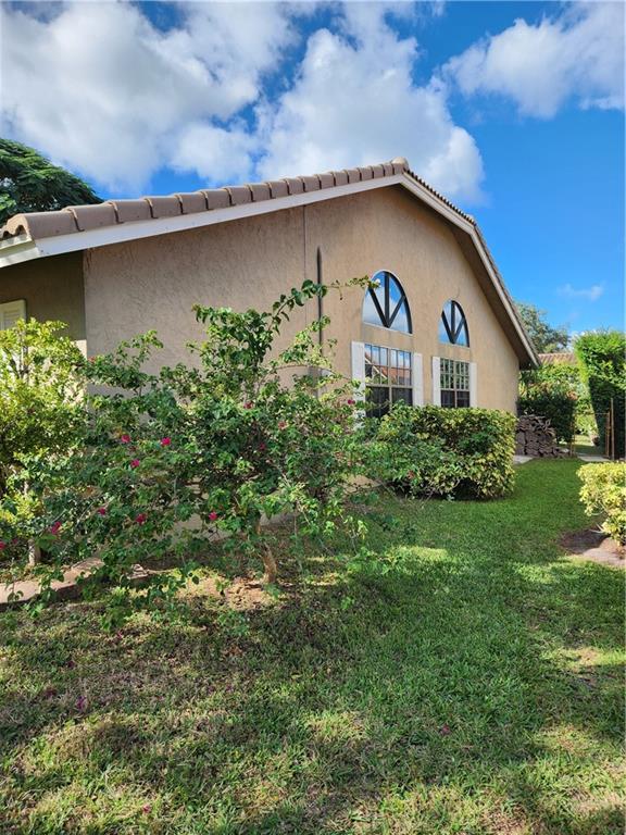This home is located in The Royal Palm Village the heart of Coral Springs. A single family home with great schools, 4 bedrooms, 2 full bathrooms, 2 car garage. Newer Roof and newer A/C. The home has been been recently painted thoughout a neutral color. The Family room wall where a mirror was removed is the only area that still needs painted. The floors are white ceramic tile. Lots of storage. separate laundry and linen closet. Master bathroom has door leading to backyard. the family room has coral fire place and beautiful french doors. The home has lots of natural Light. Corner lot with one of the largest yards in the area. The community is very well kept, and has a community pool area with small clubhouse.