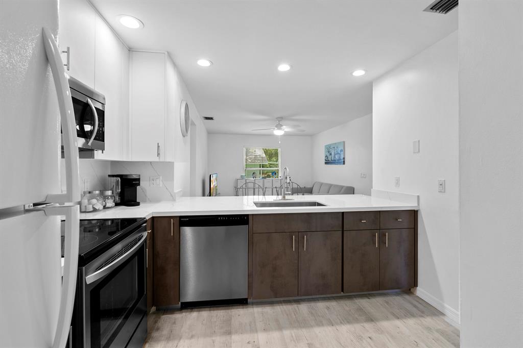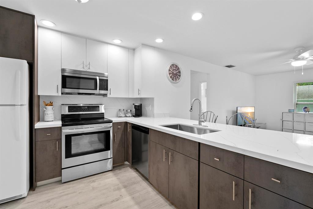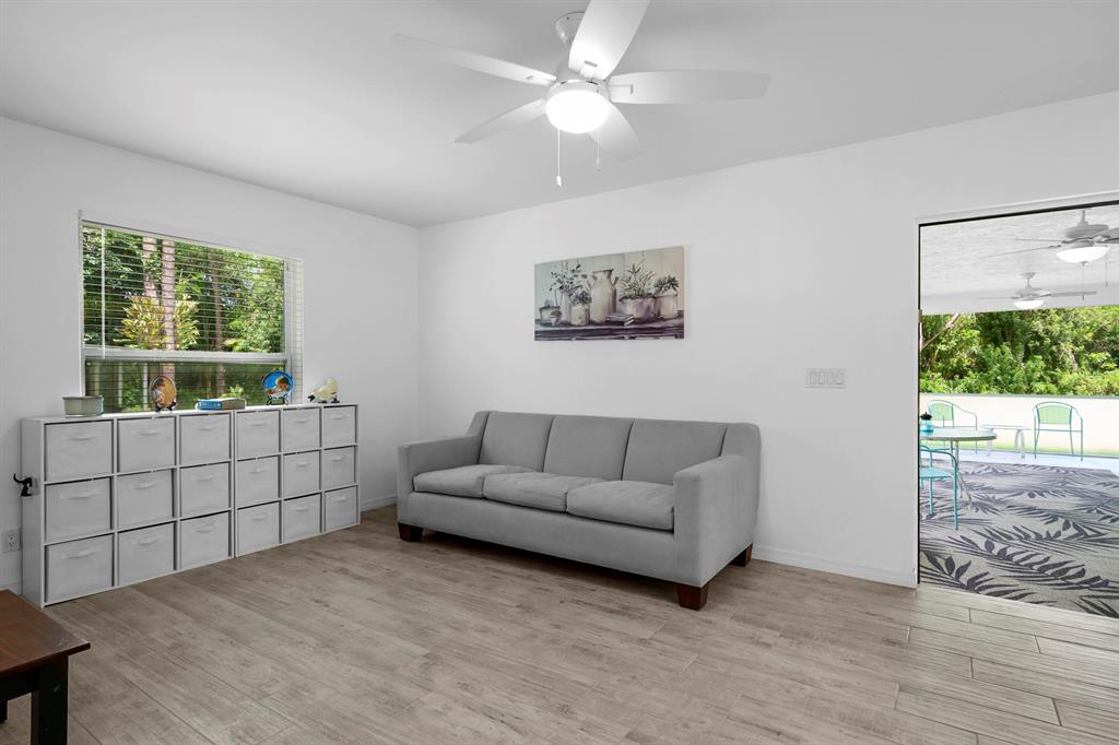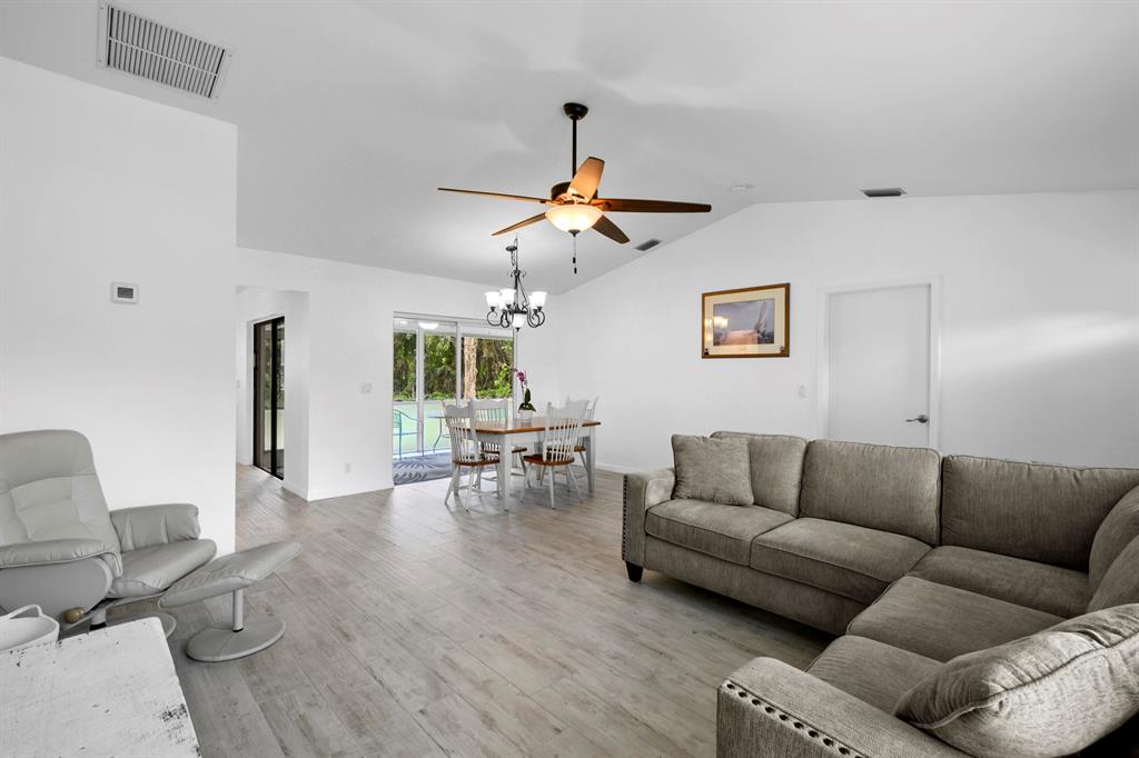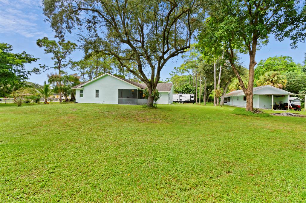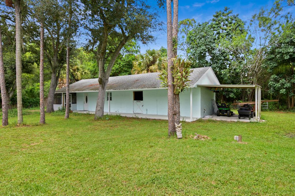 Great opportunity to own this 3 bed/2 bath with upgrades: NEW quartz kitchen countertop, NEW Kitchen cabinets , NEW stainless metal fridge and dishwasher, NEW tile flooring. 2nd bathroom was TOTALLY redone. NEW ROOF finished 09/30/22. New front door, as well as a new door going from master bathroom to the patio. Brand new screens in the enclosed patio. There is a Barn in the back of property, that currently has been remodeled to use as a guest room, with their own screened Patio. Also there is 1 stall, and an extra room which was the tack room/ storage. Can easily be converted into a NICE Guest-suite, by adding a bathroom. 2 car garage with built in cabinets, and AC, as well as a carport right outside of garage. ALSO, has an RV hookup.